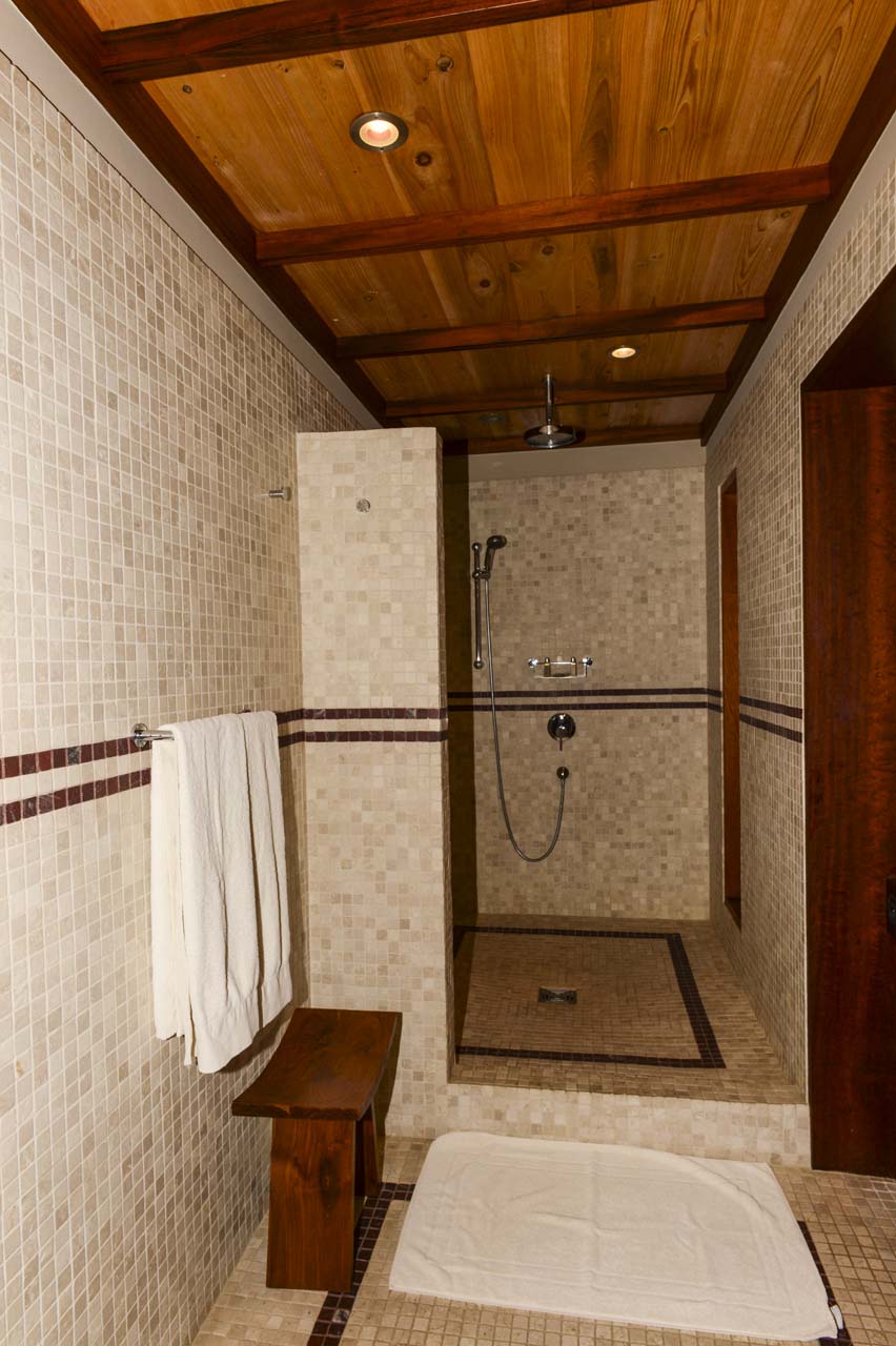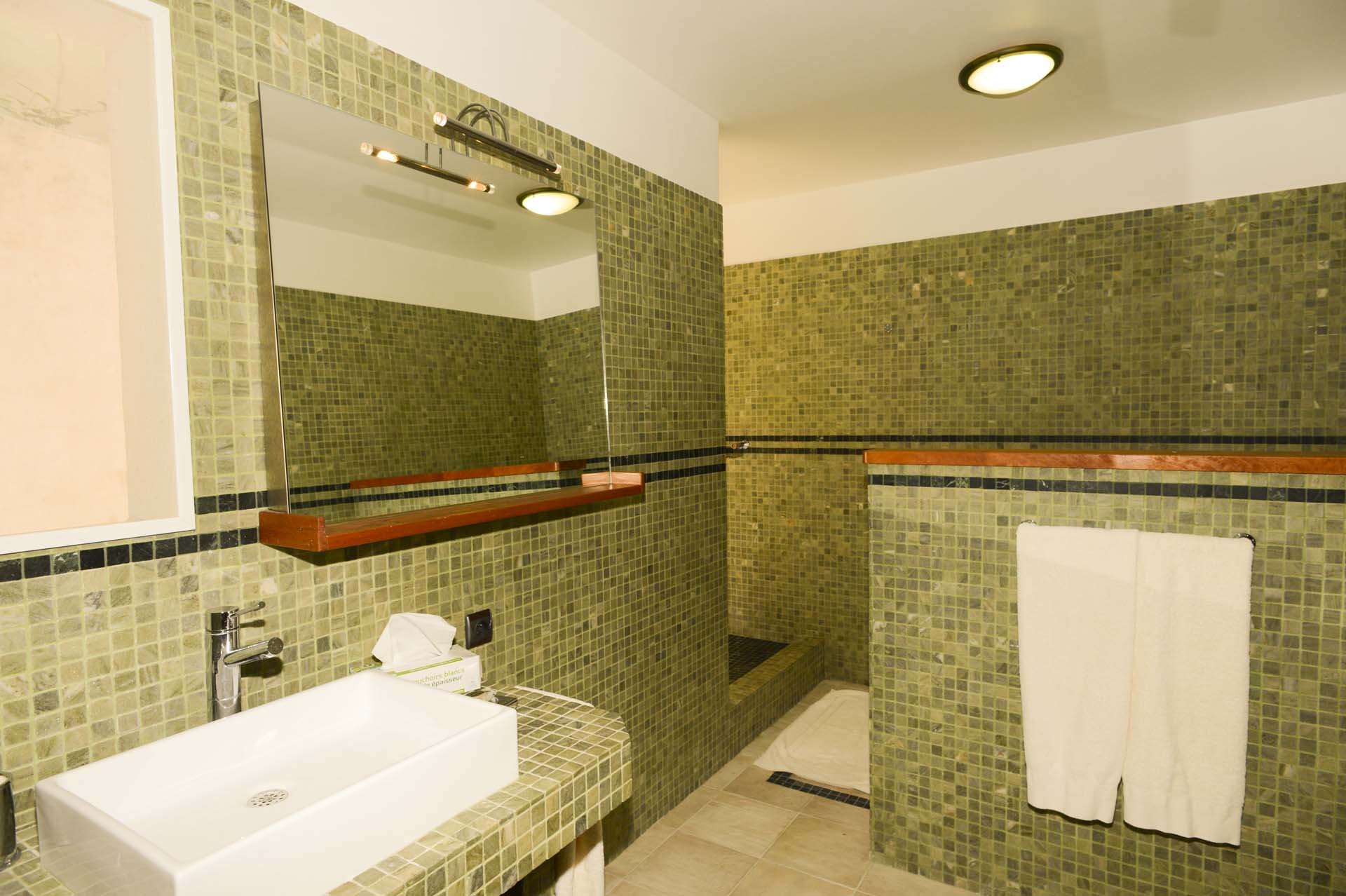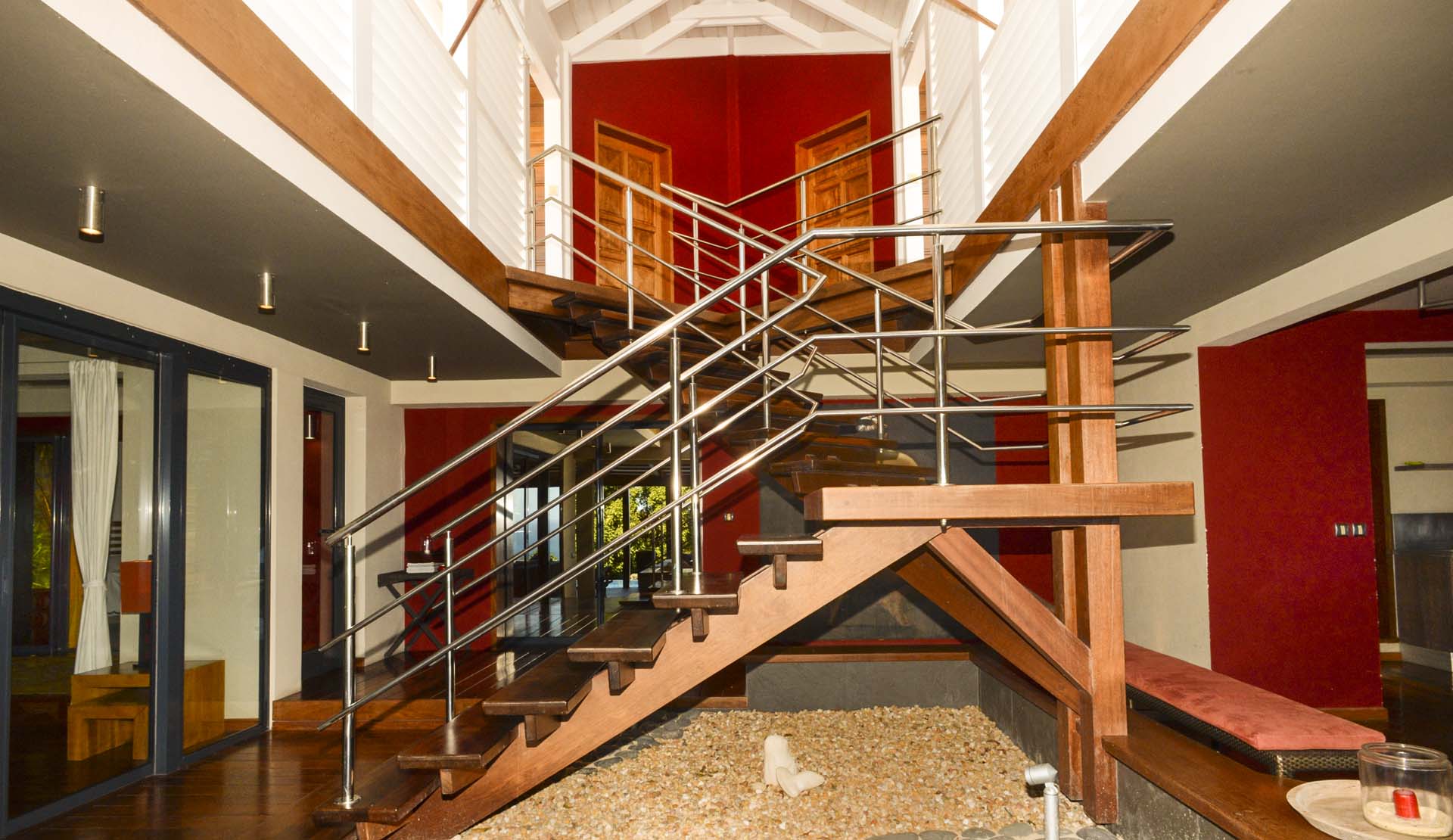 Deux des chambres sont à l’étage supérieur. Elles s’ouvrent sur deux terrasses avec chacune un solarium privé dominant l’océan.
