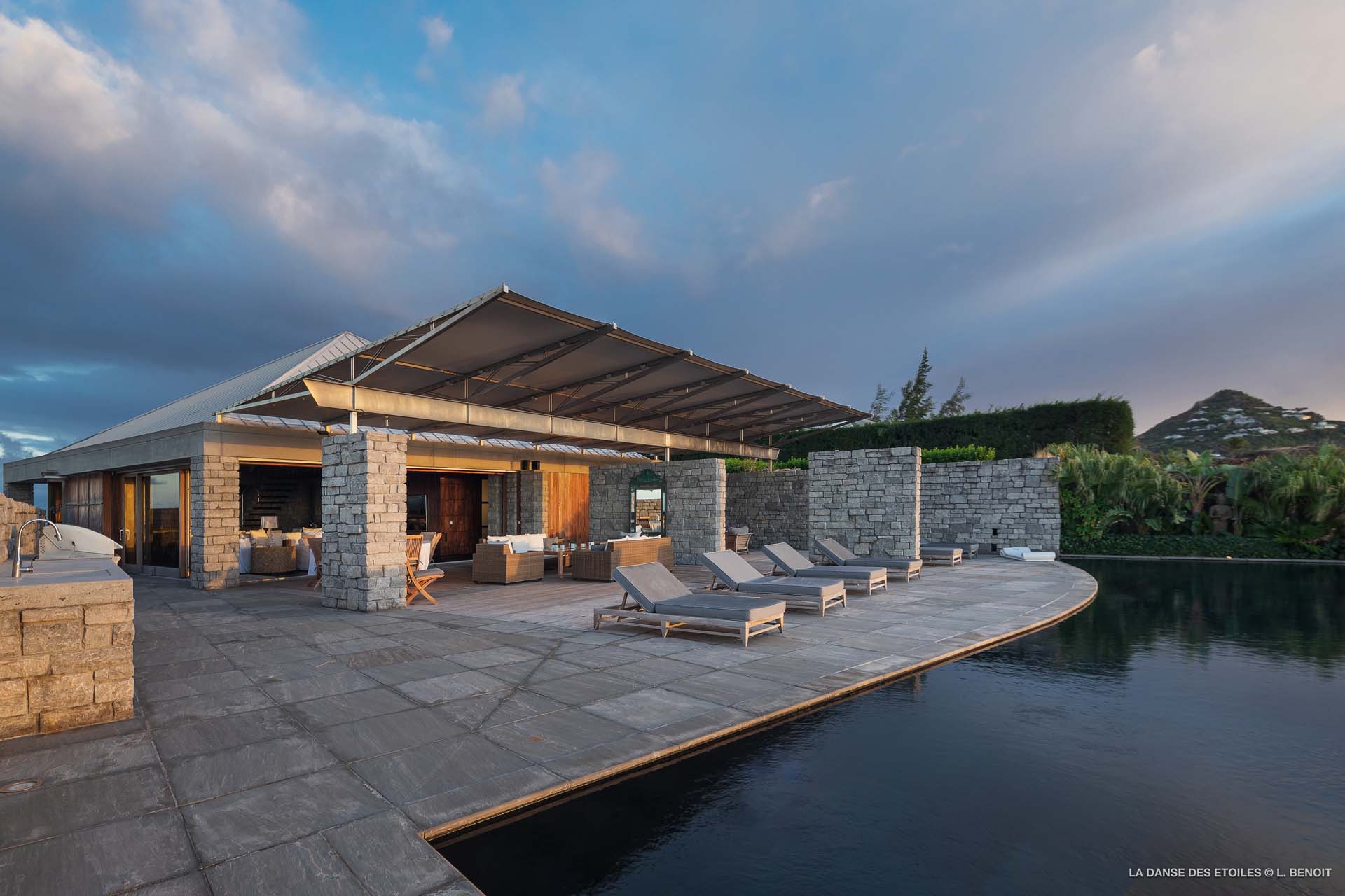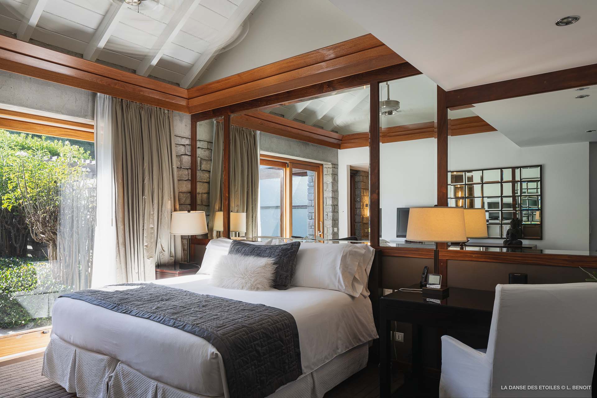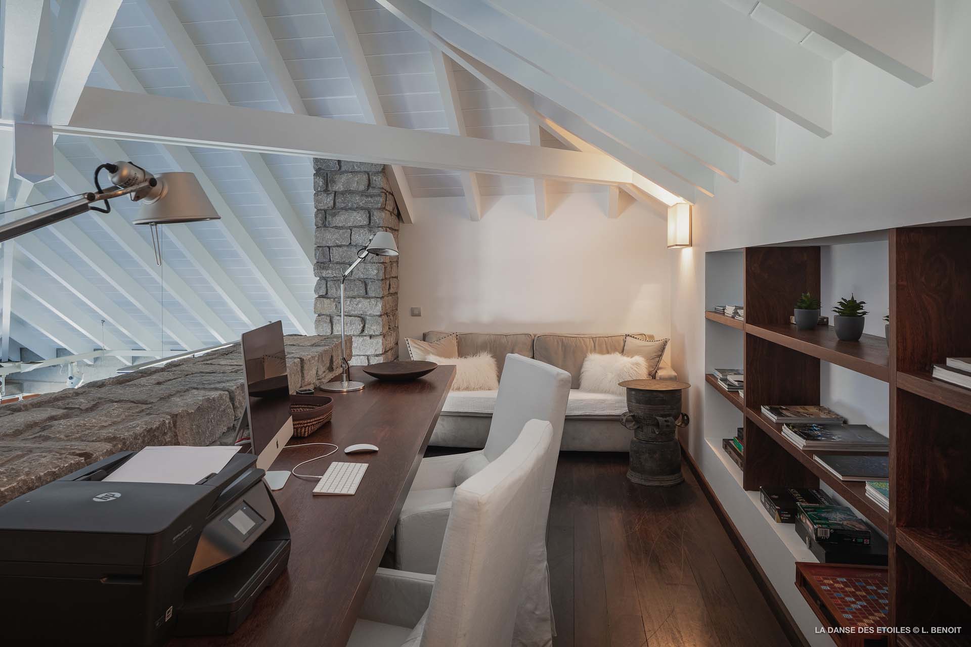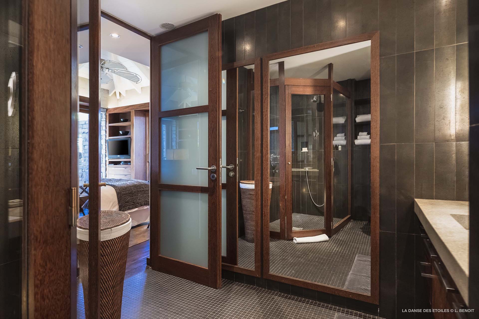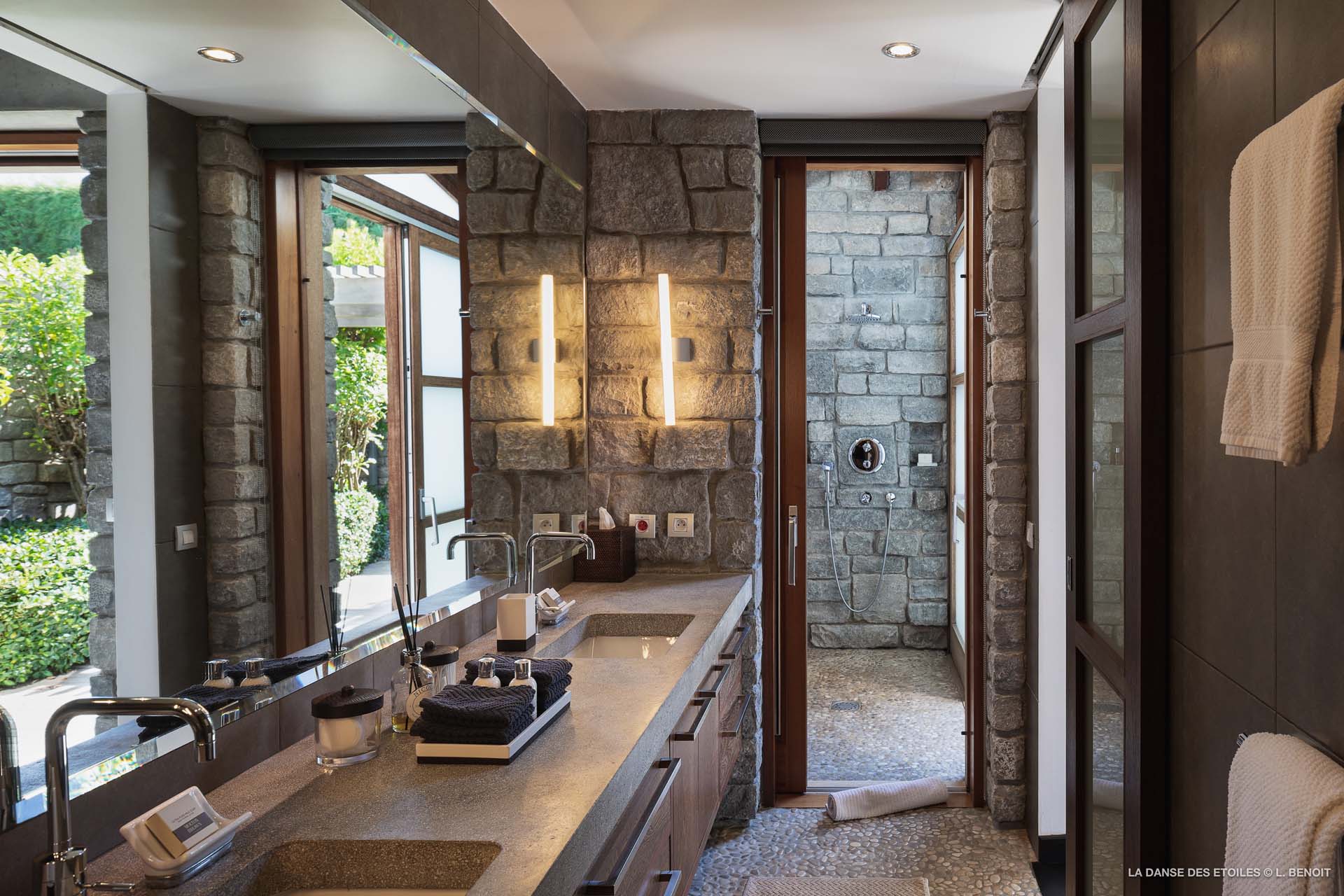 La Danse des Etoiles est une élégante villa au design inspiré des chalets suisses, son architecture de pierre et de bois lui confèrent un charme rustique et raffiné.
