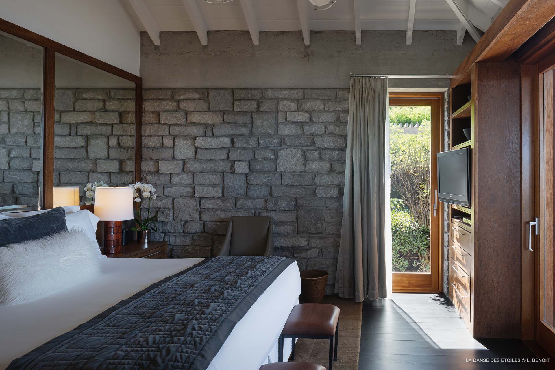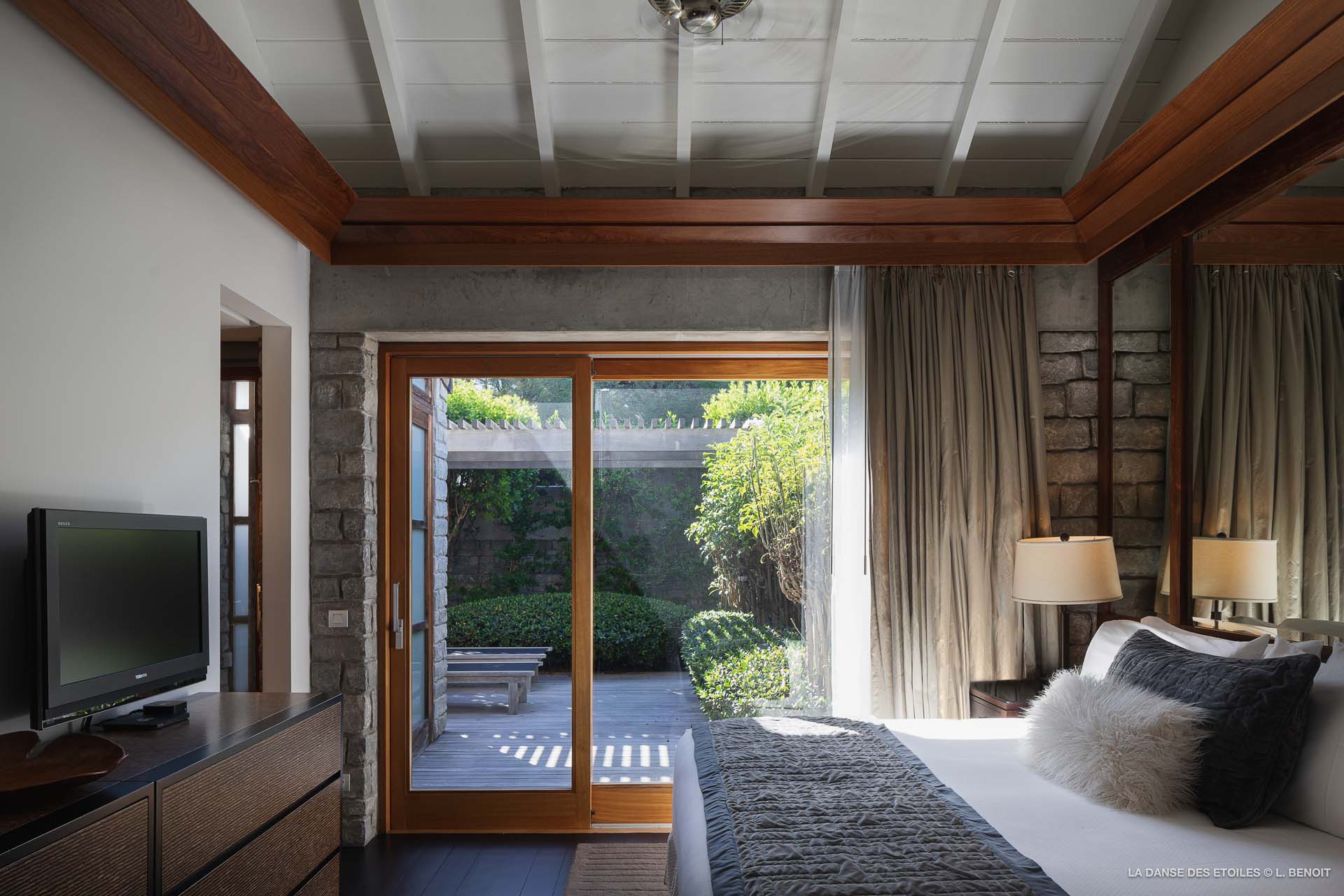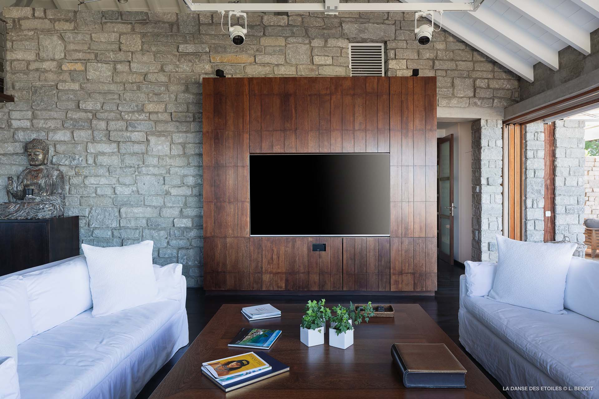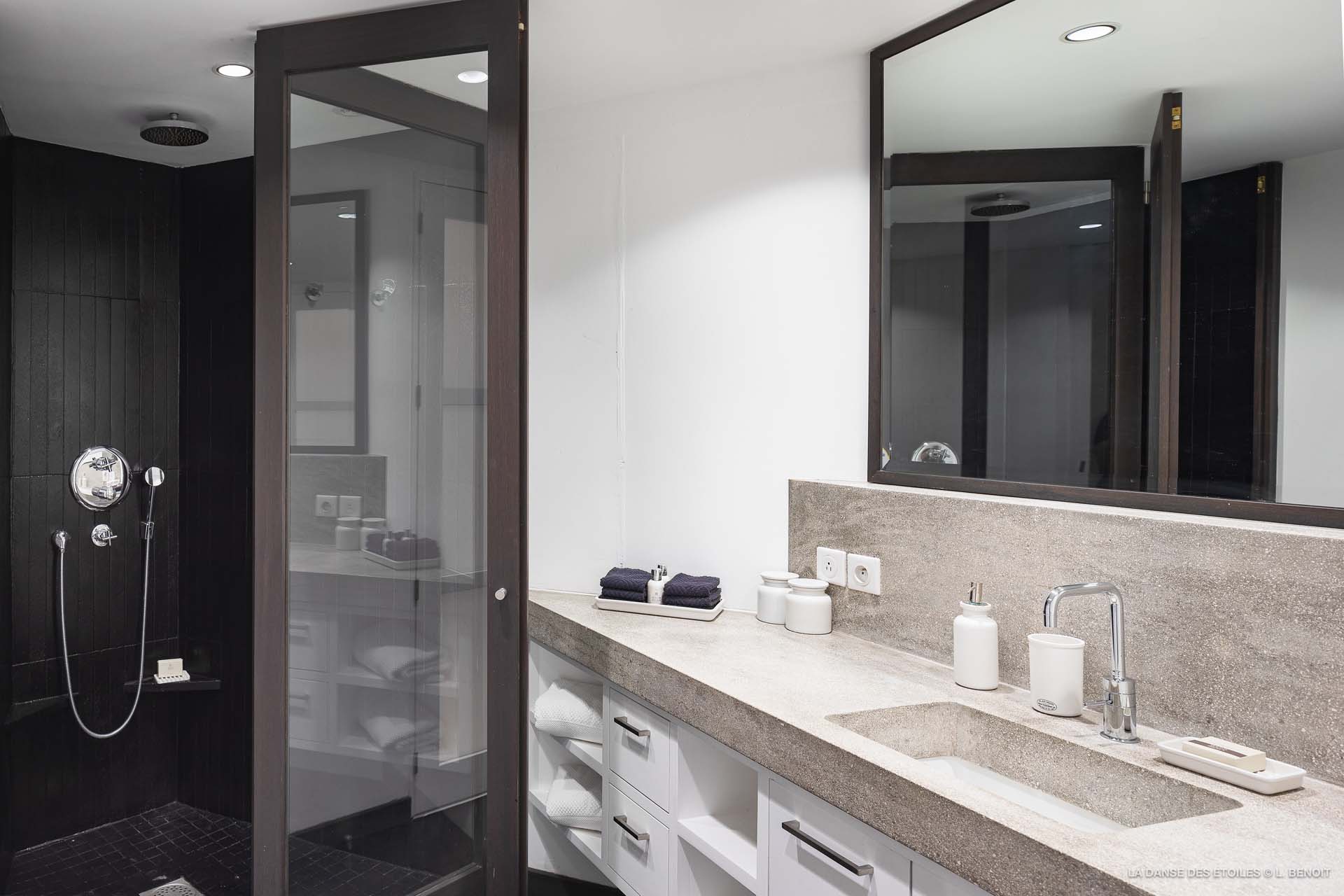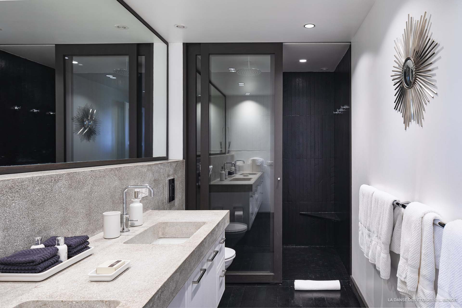 La Danse des Etoiles est une élégante villa au design inspiré des chalets suisses, son architecture de pierre et de bois lui confèrent un charme rustique et raffiné.