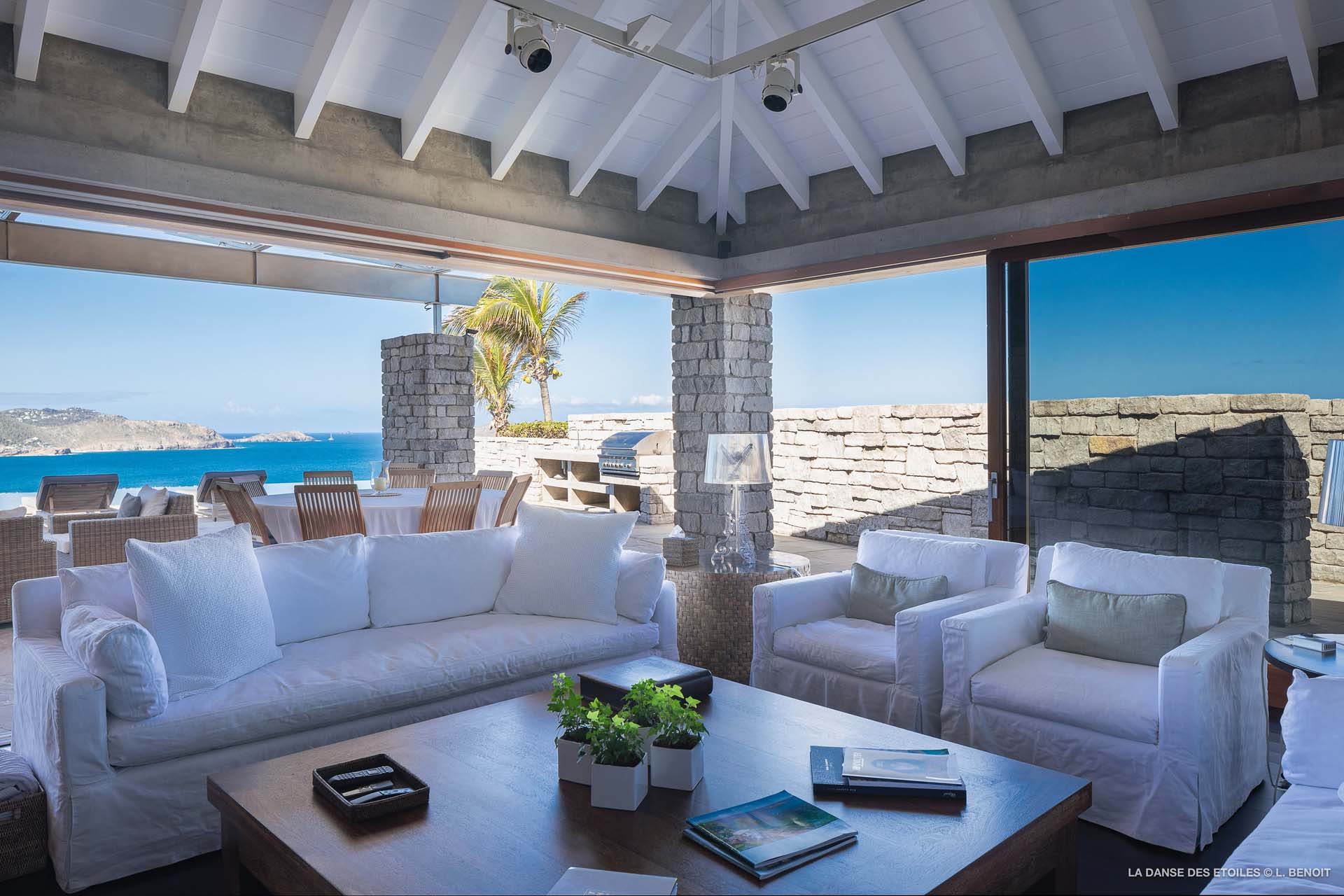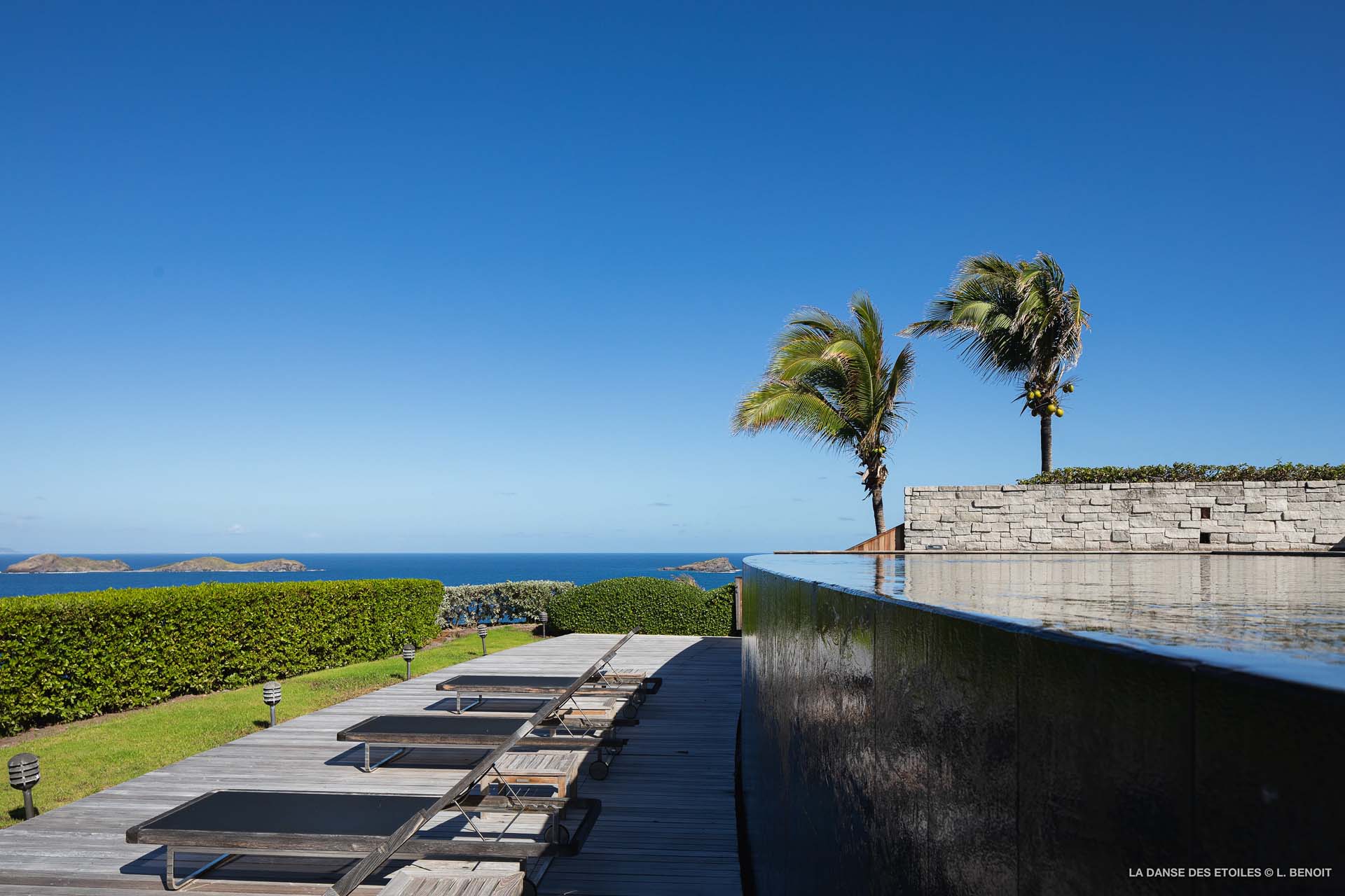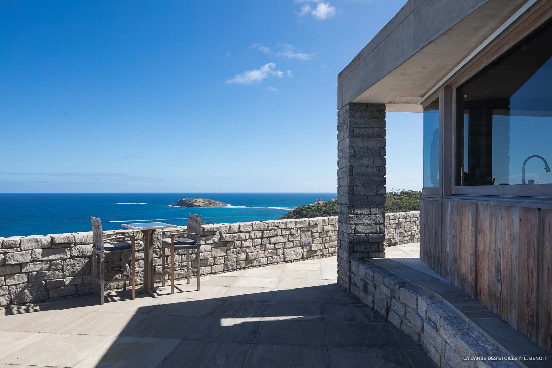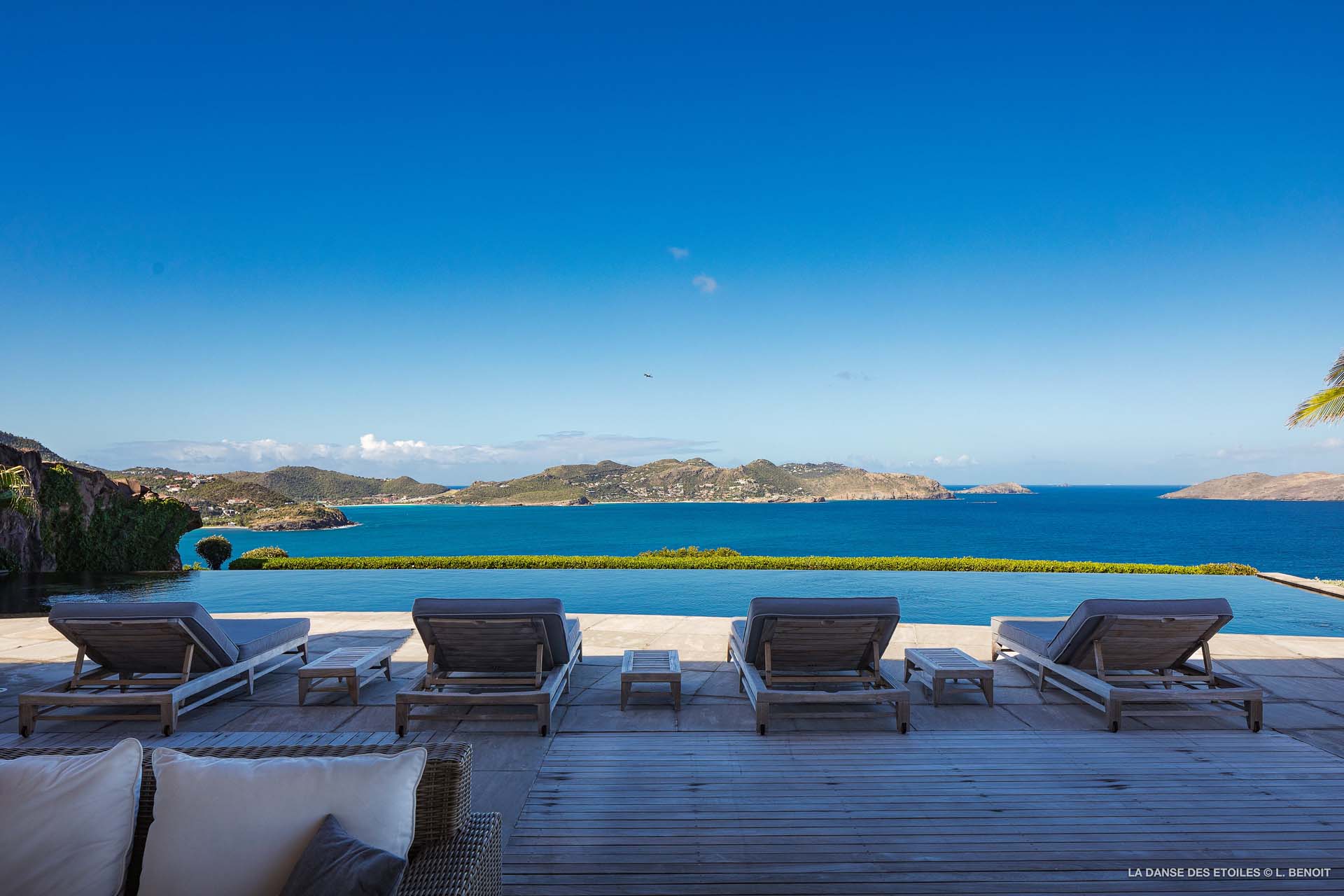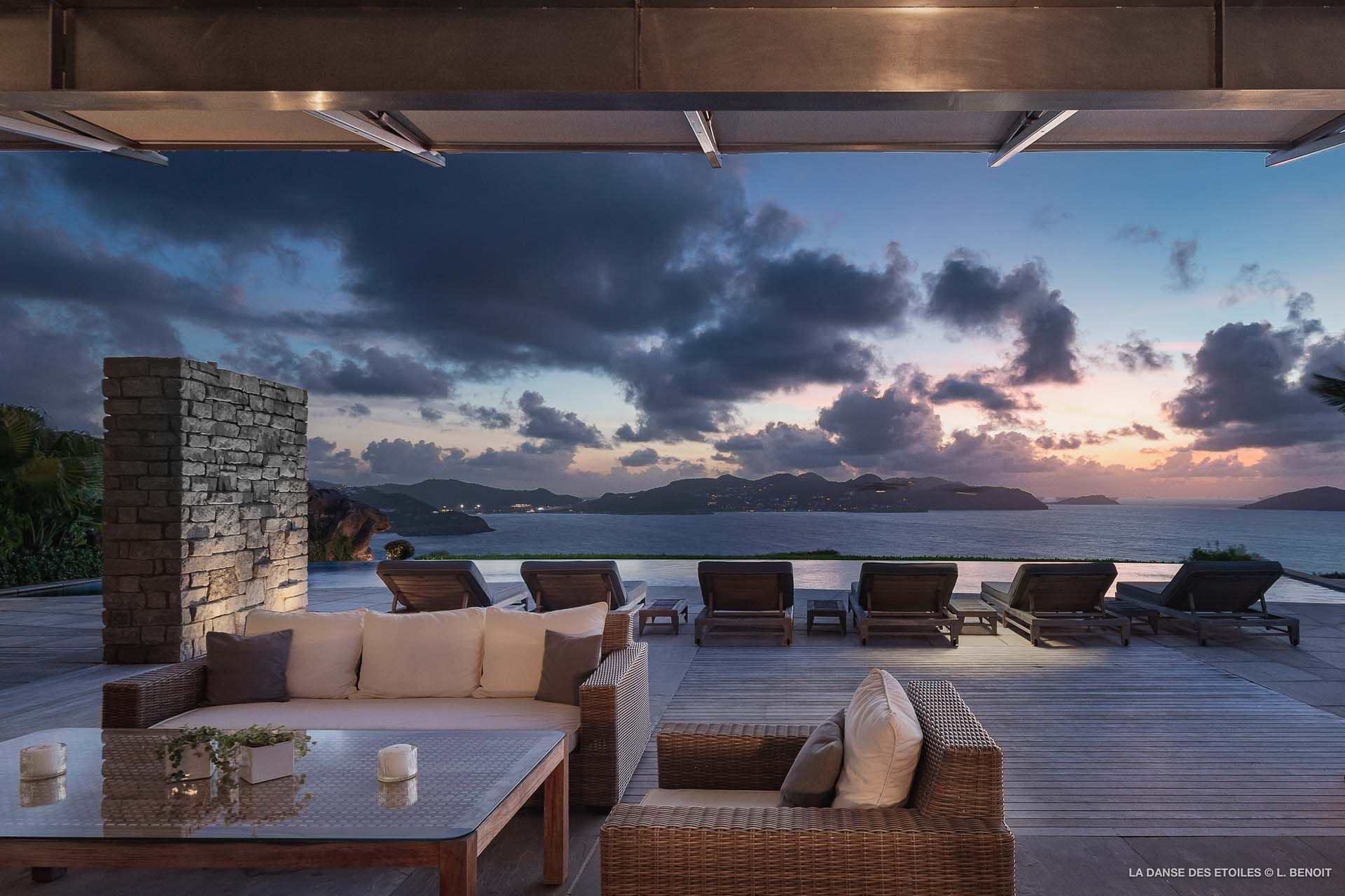 Dotée d’une double exposition, elle offre une vue imprenable vers l’est, offrant un panorama sur l’île de Tortue, et vers l’ouest, où vous pourrez admirer les magnifiques baies de Saint Jean et de Lorient, ainsi que les îles de Saint Martin, Anguilla, Frégate et Toc Vert.