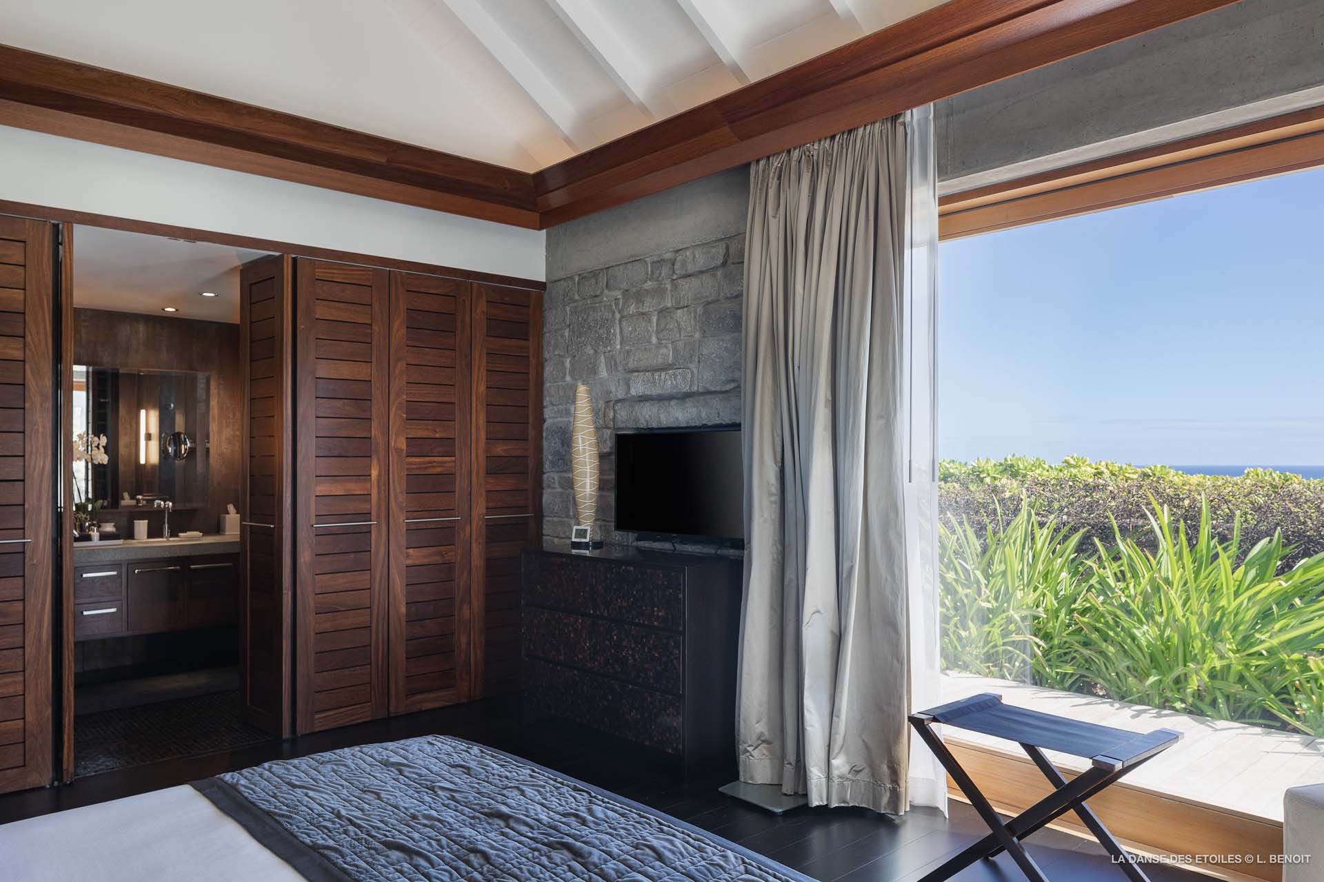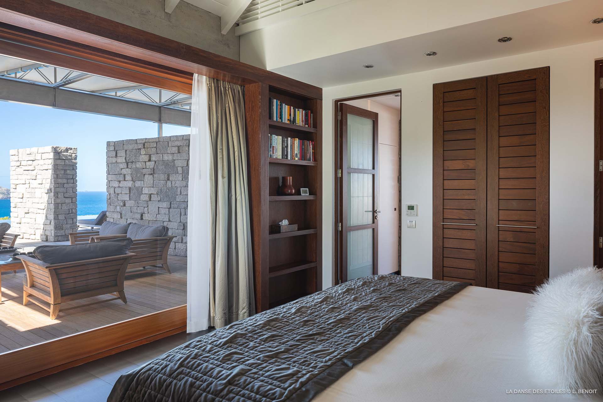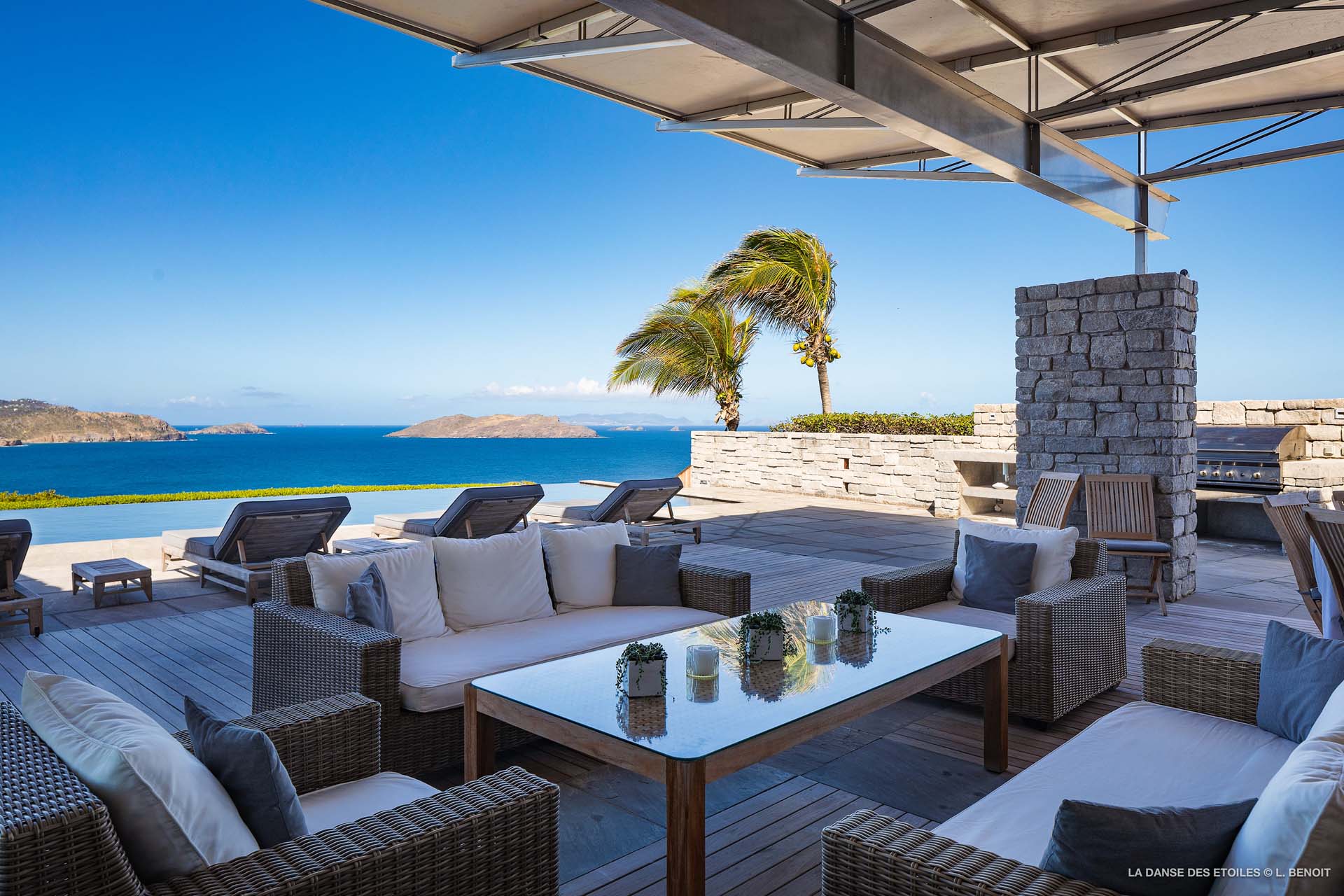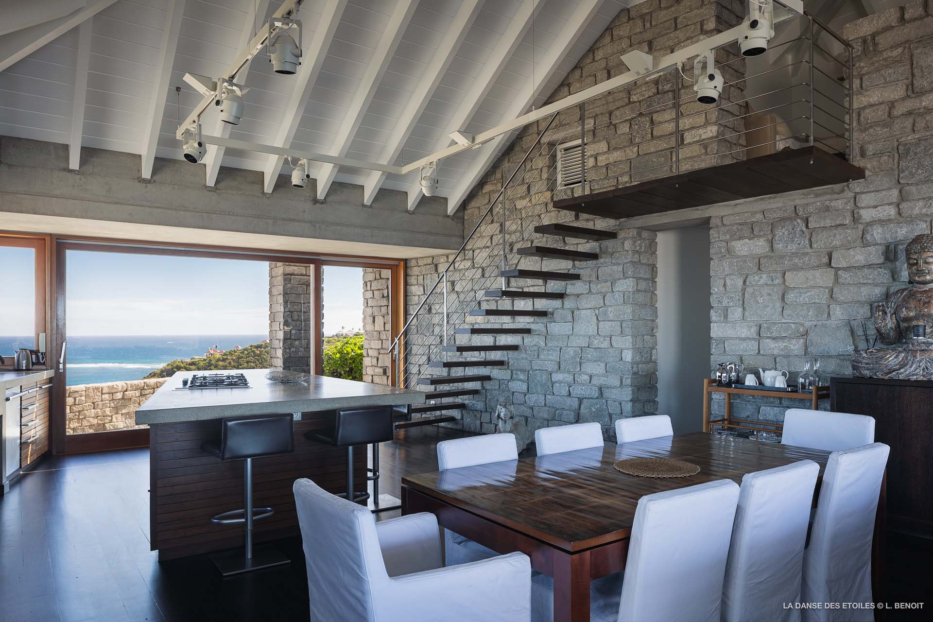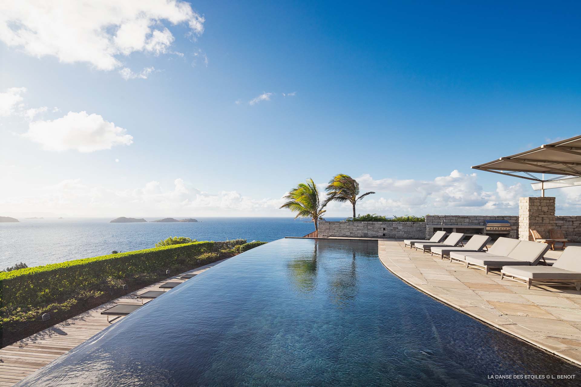 Dotée d’une double exposition, elle offre une vue imprenable vers l’est, offrant un panorama sur l’île de Tortue, et vers l’ouest, où vous pourrez admirer les magnifiques baies de Saint Jean et de Lorient, ainsi que les îles de Saint Martin, Anguilla, Frégate et Toc Vert.