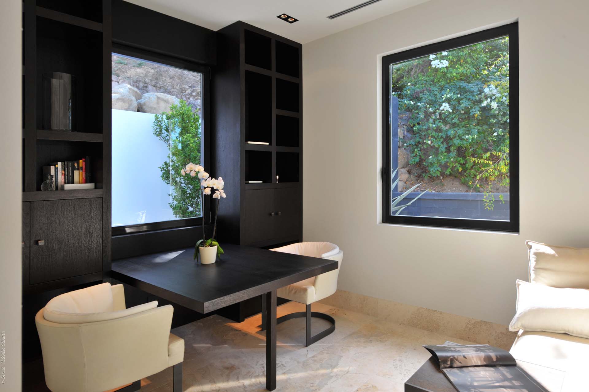 L’espace de vie est composé d’un premier grand salon intérieur ouvert sur la salle à manger extérieure ainsi qu’un second salon extérieur.