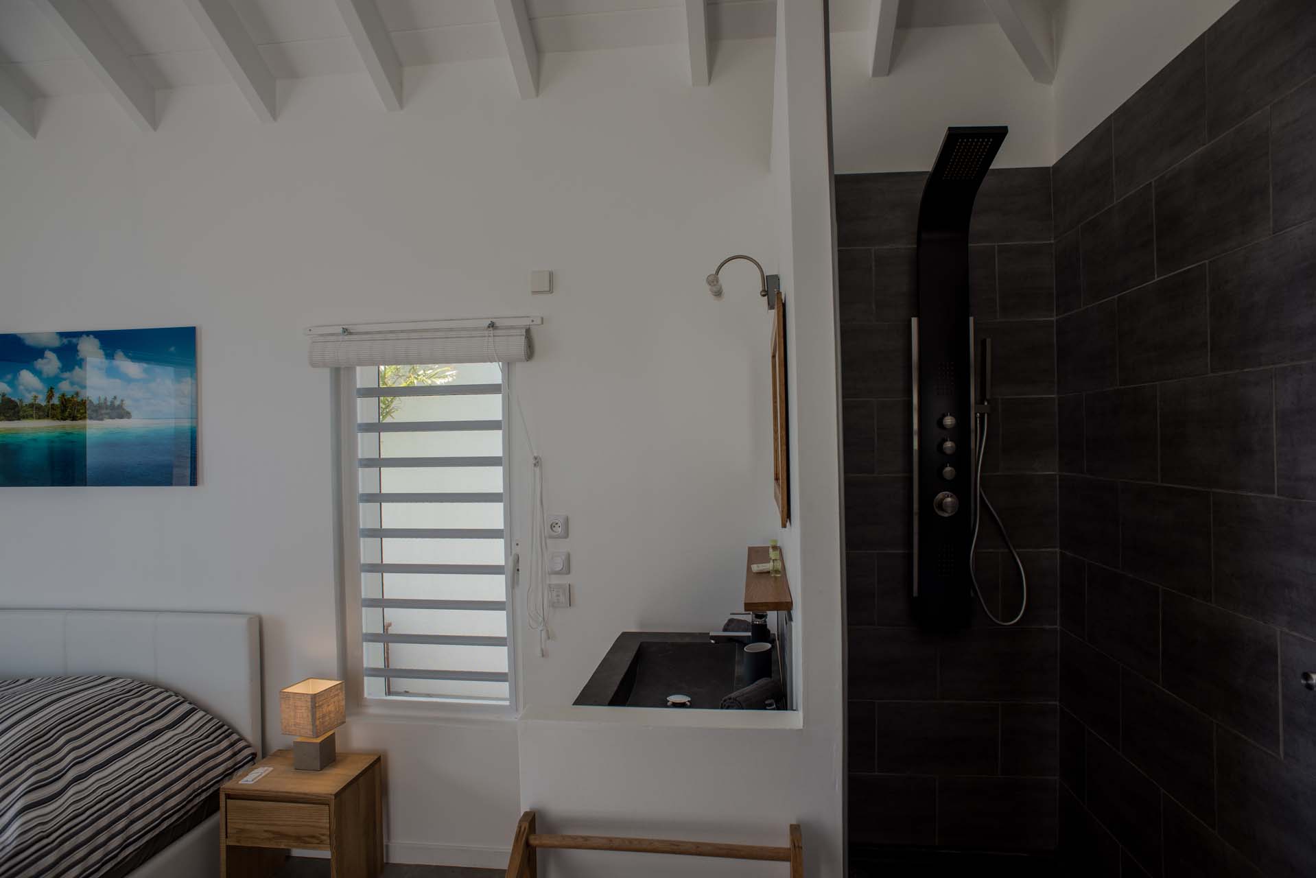 La villa est de plein pied, l’accès à chacune des chambres se fait par la terrasse.