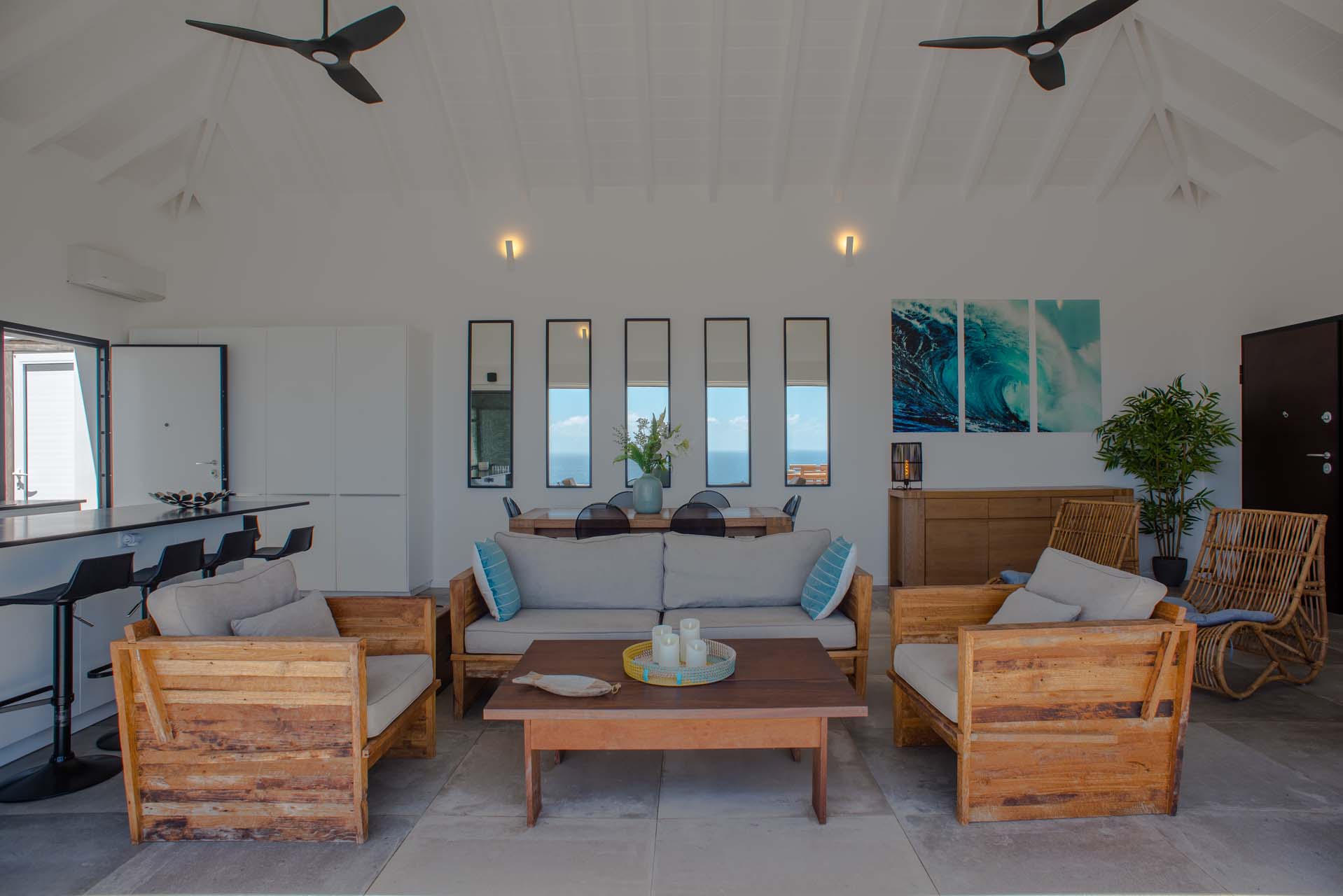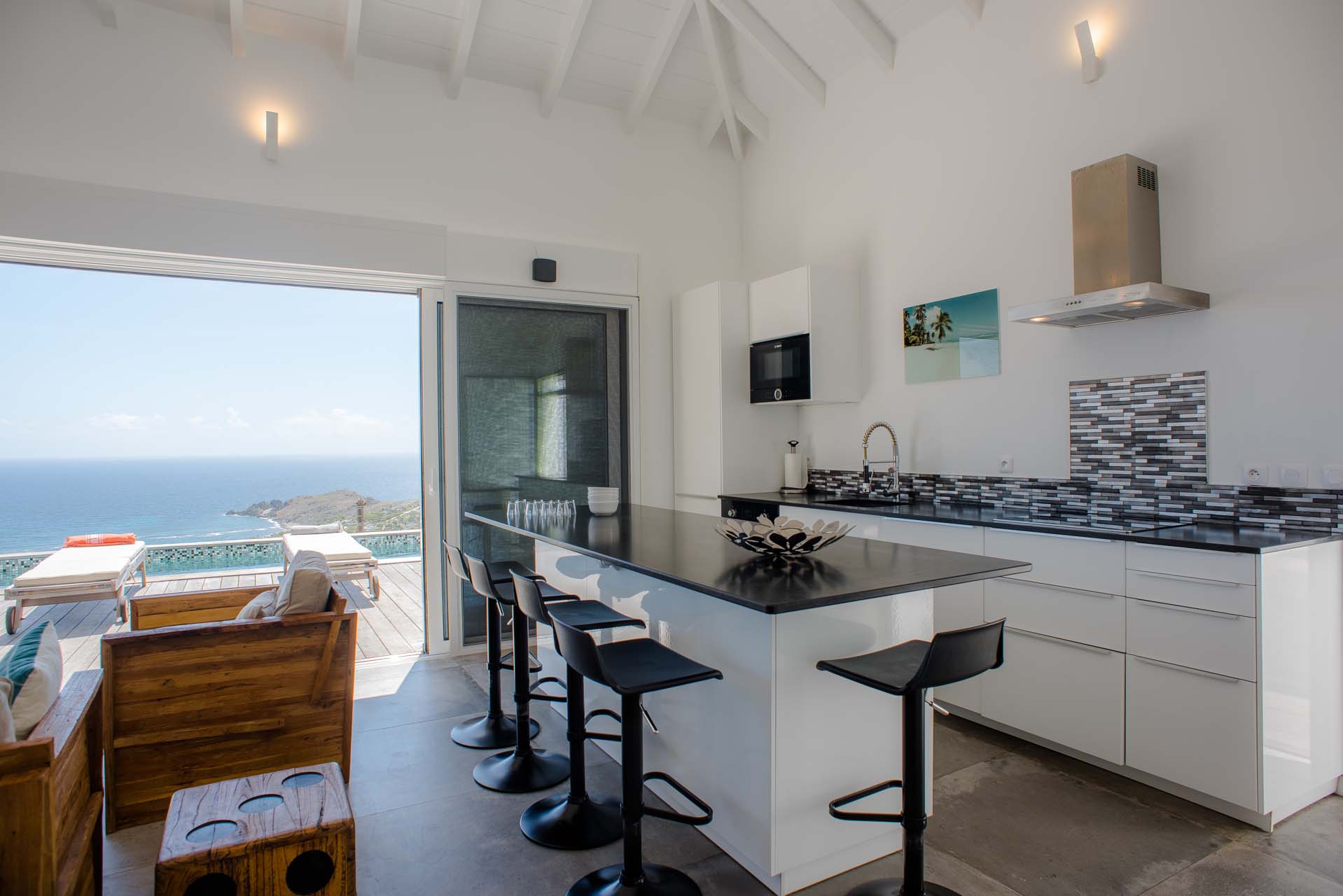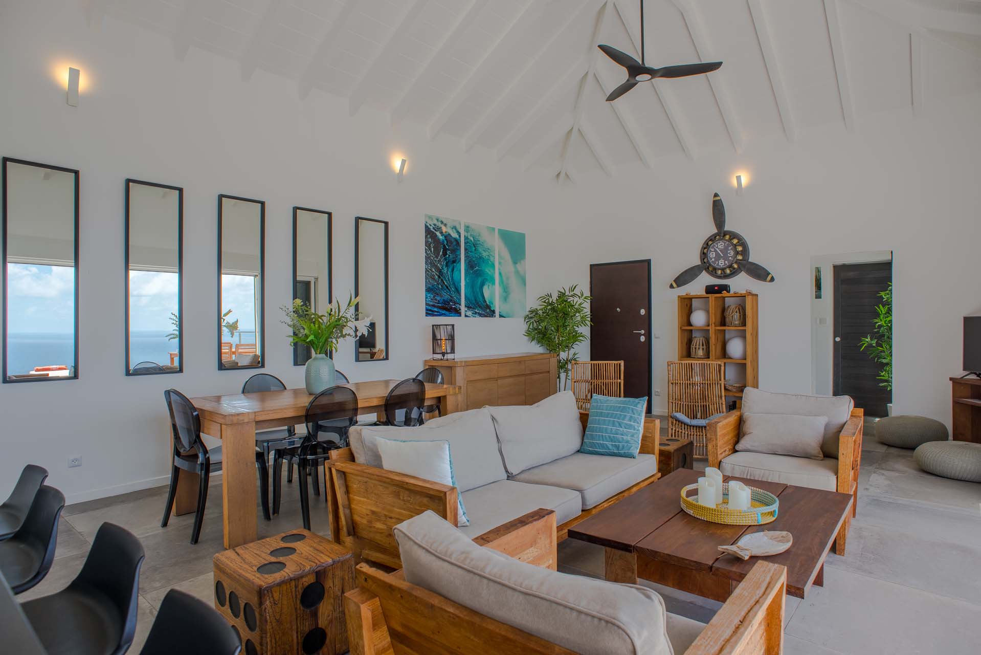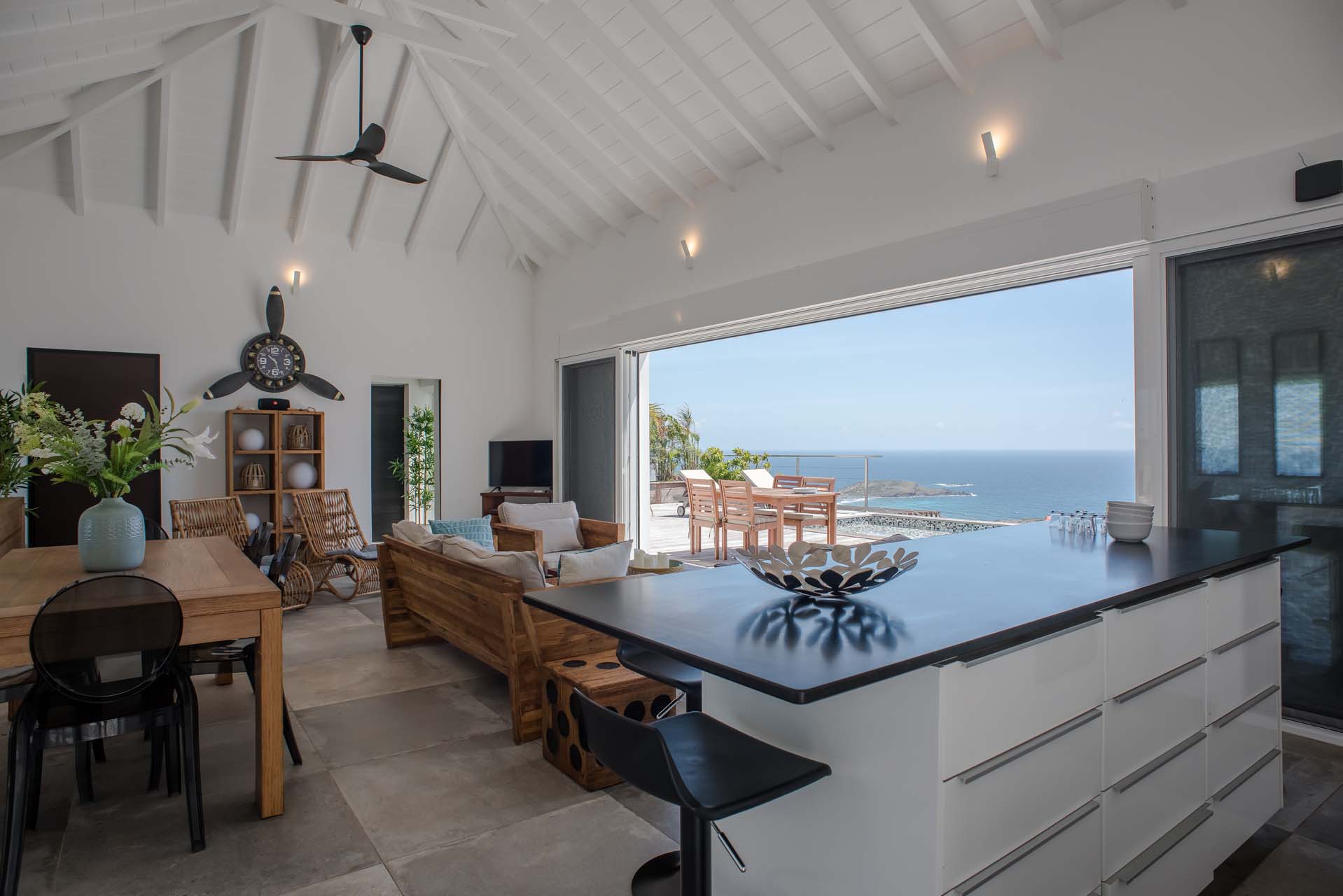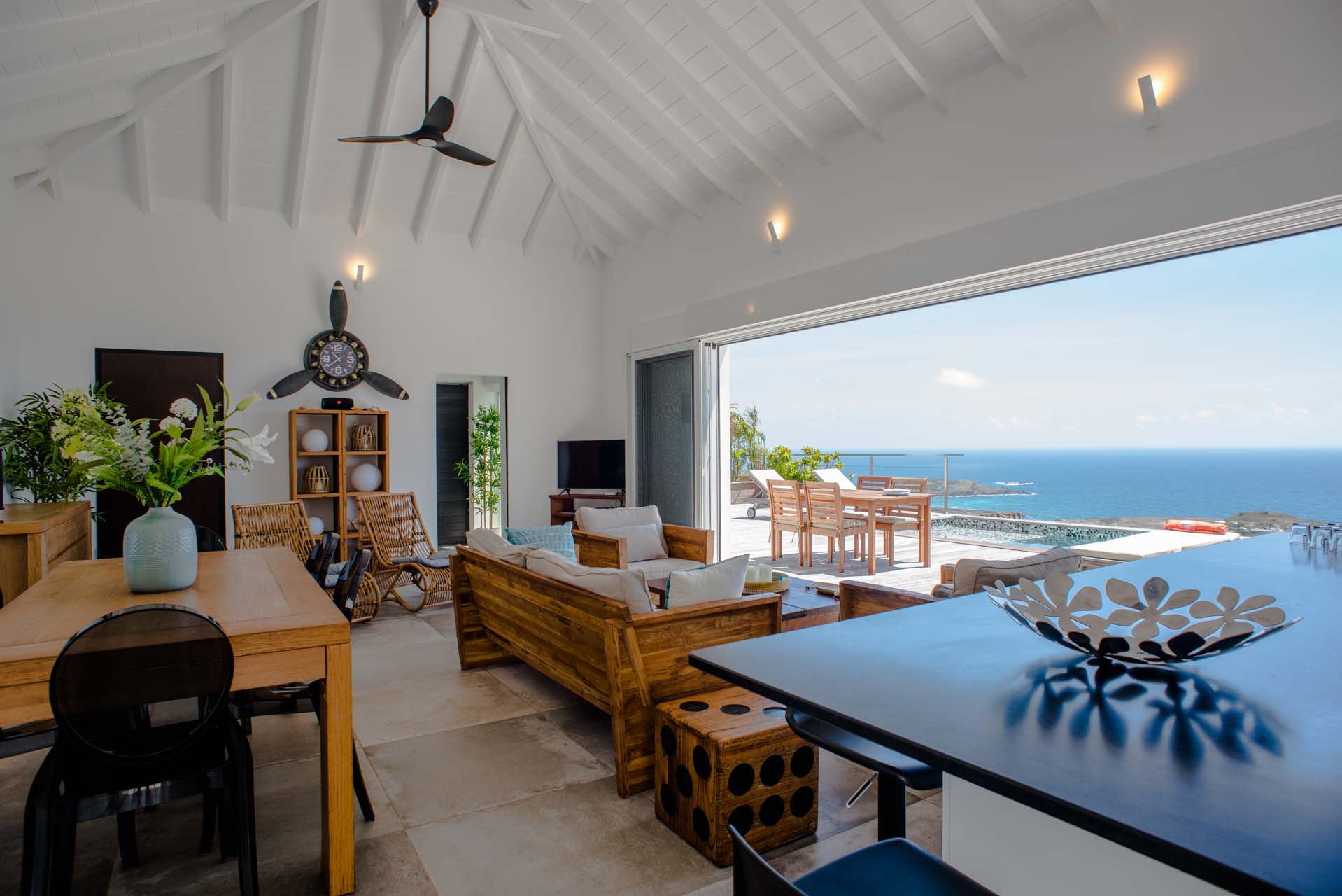 Cette villa offre une vue extraordinaire sur l’océan et le lagon de Grand Cul de Sac.