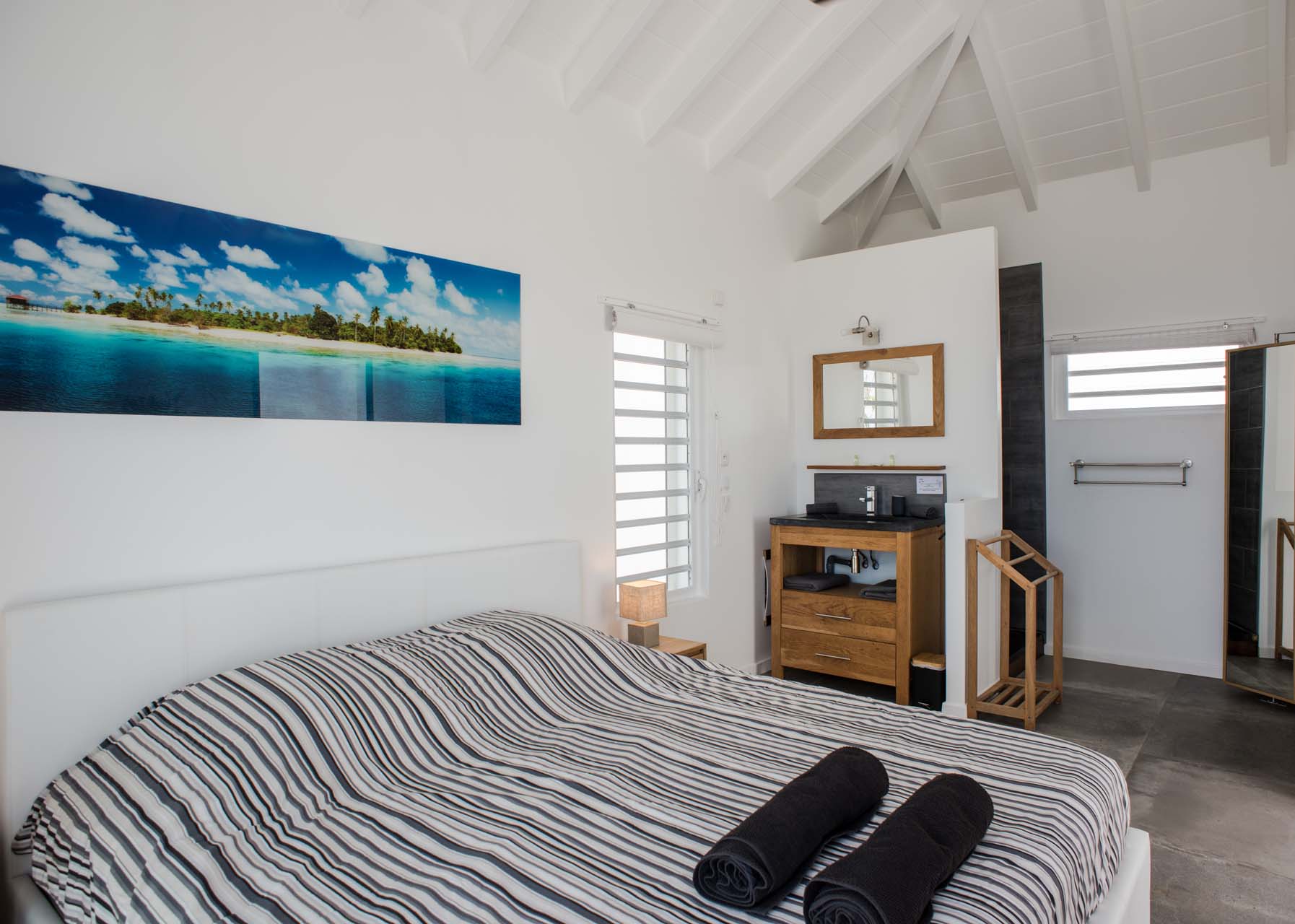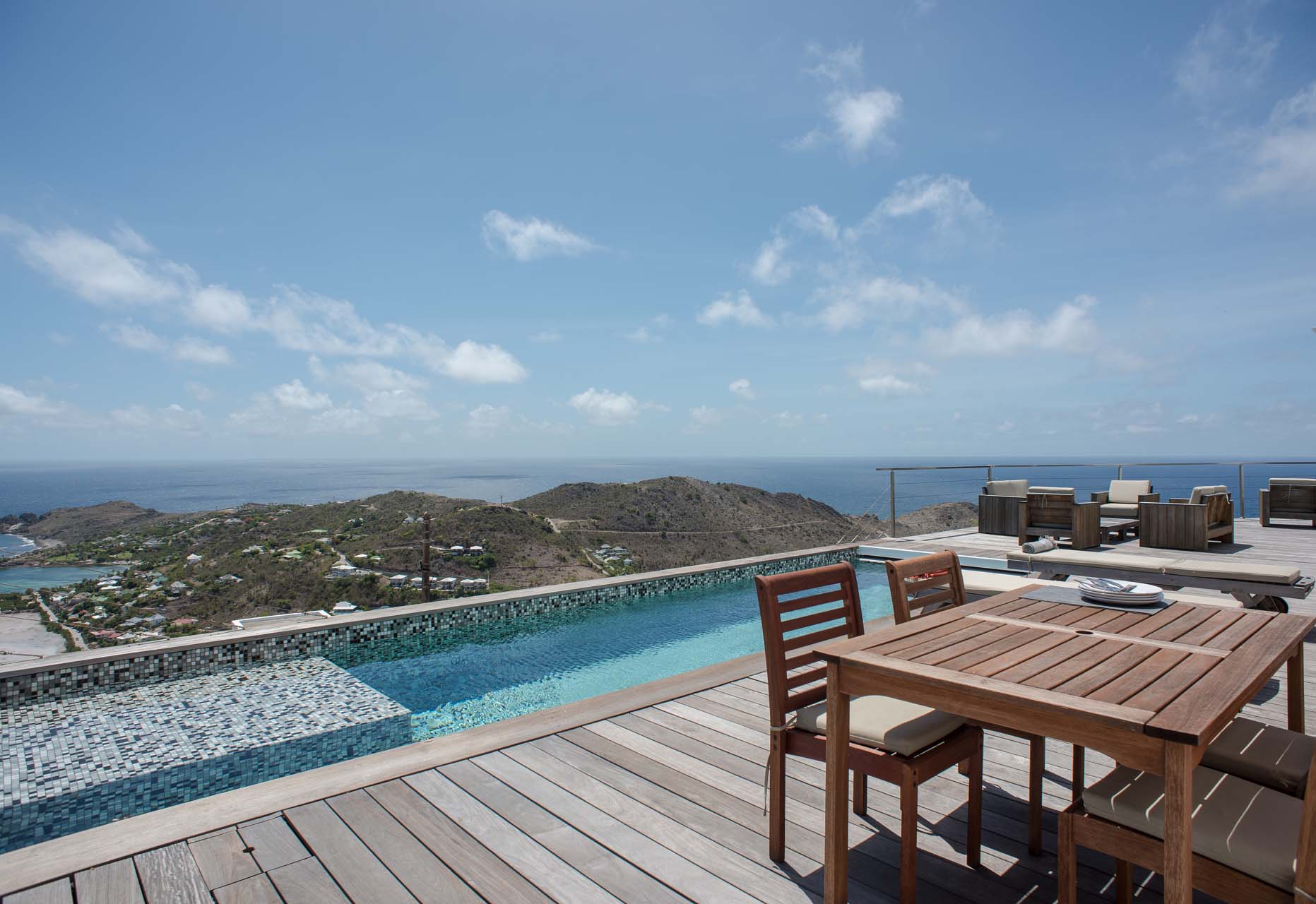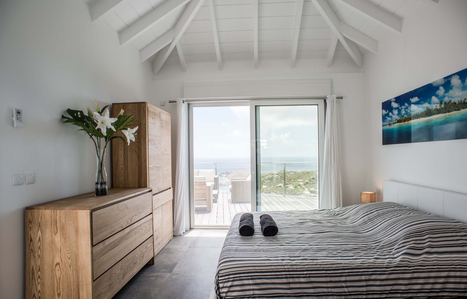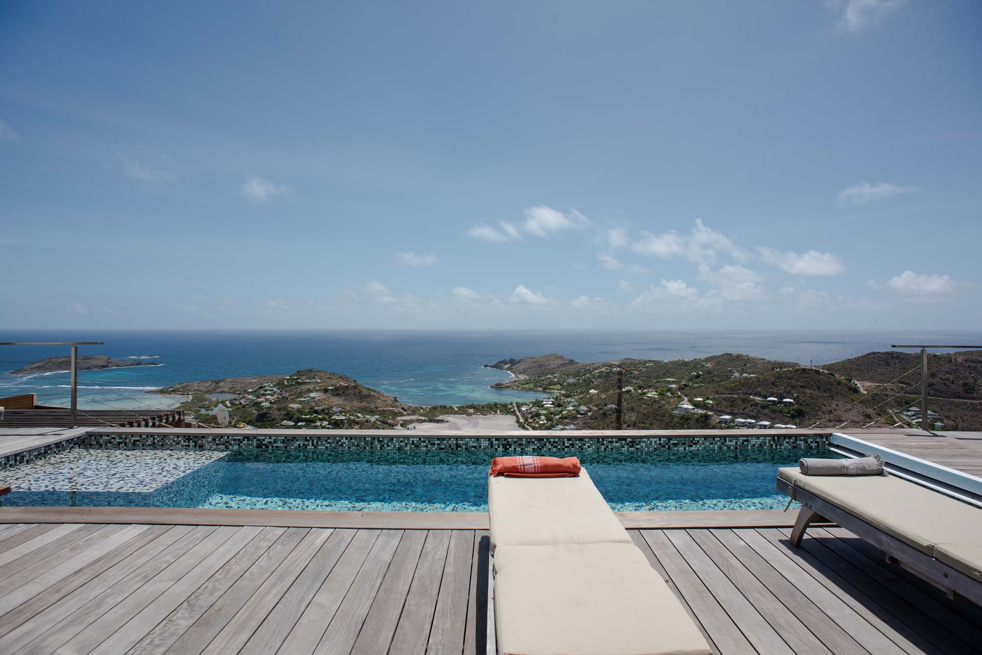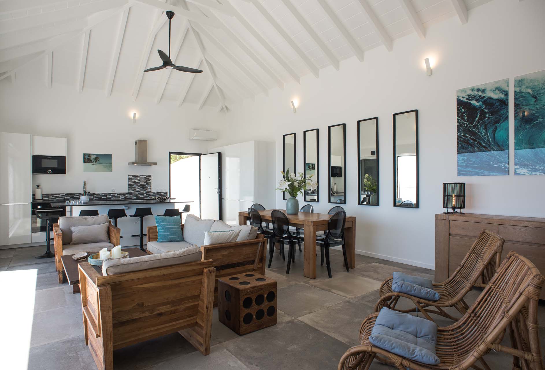 Cette villa offre une vue extraordinaire sur l’océan et le lagon de Grand Cul de Sac.
