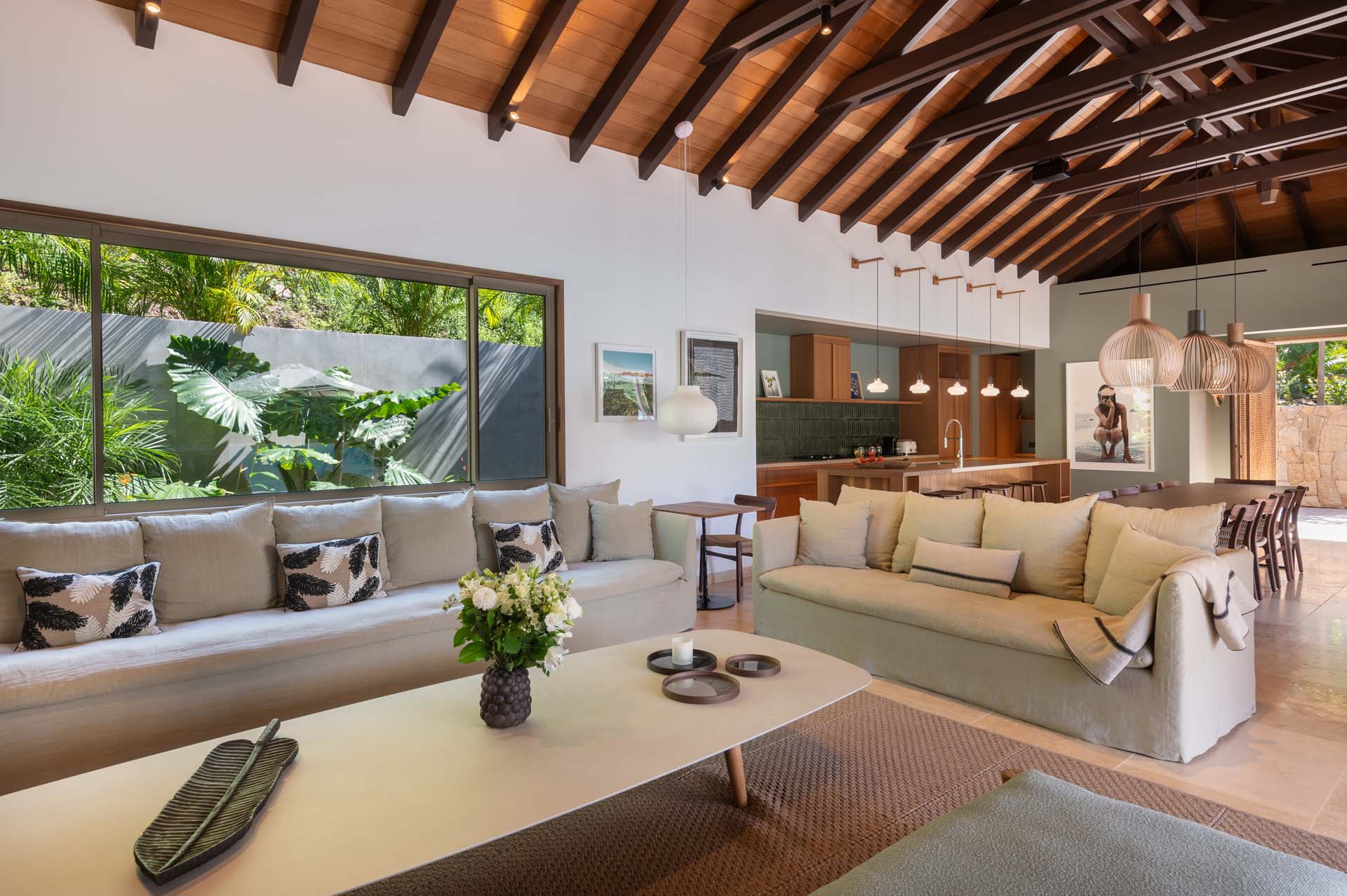 Conçue pour accueillir jusqu’à dix hôtes, cette villa d’architecte offre cinq suites privées, une somptueuse piscine à débordement, une salle de sport indépendante et un accès privilégié à une plage confidentielle en contrebas.