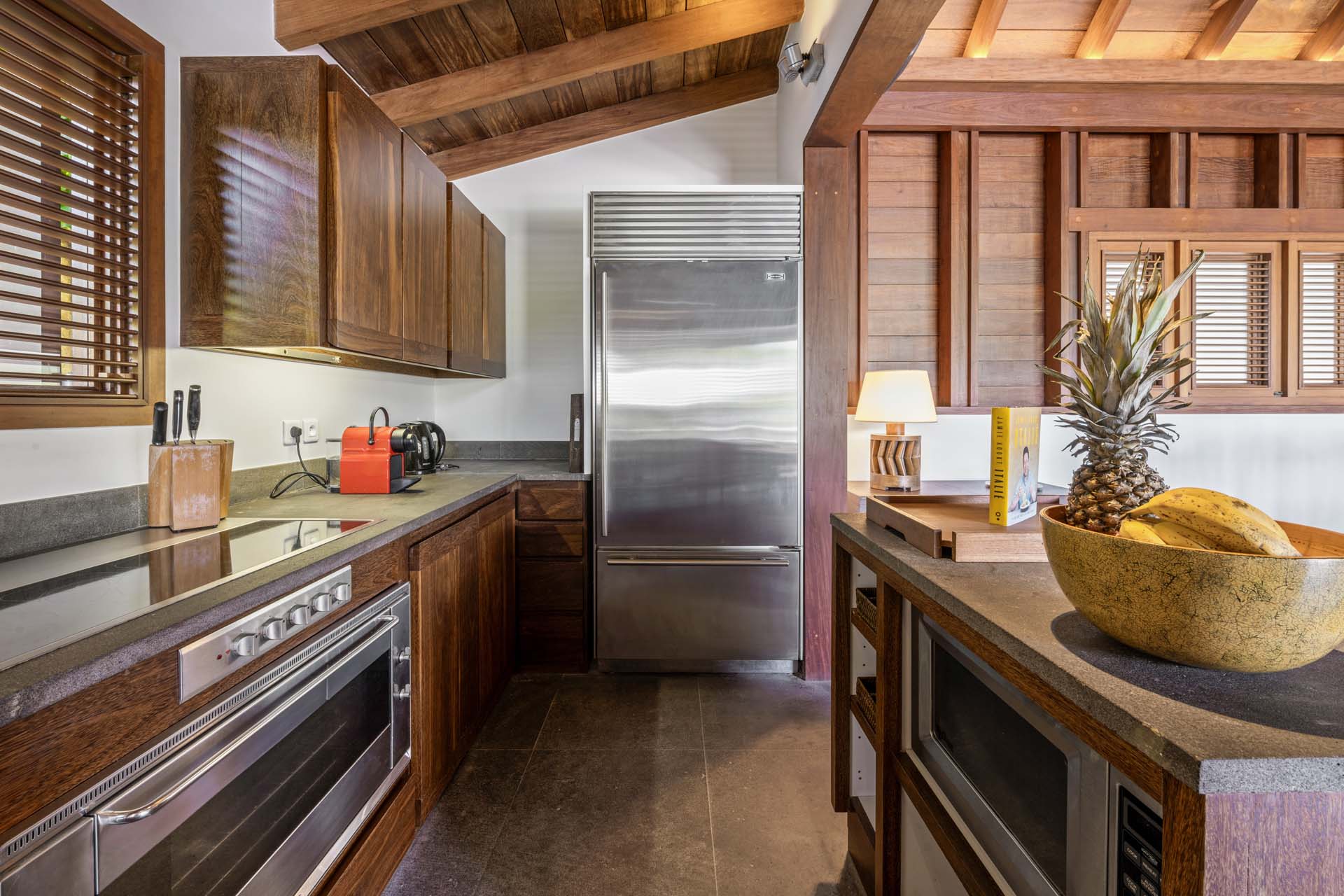 Entourée de cocotiers, elle propose un hébergement raffiné et chaleureux dans un cadre typiquement caribéen. Conçue en bois et répartie sur trois bungalows, la villa dispose de trois chambres climatisées avec salles de bains privatives, offrant confort, intimité et une vue imprenable sur l’océan.