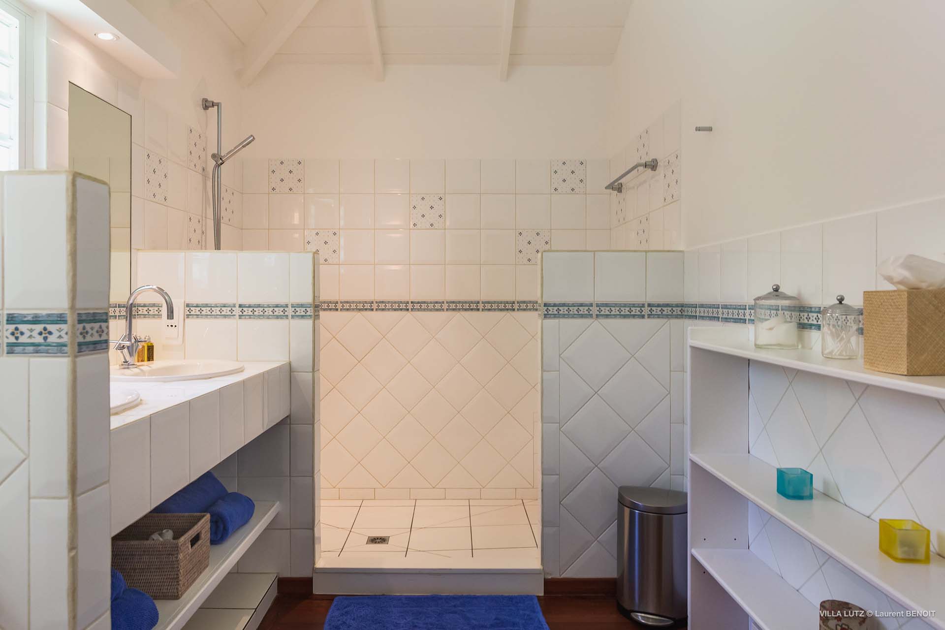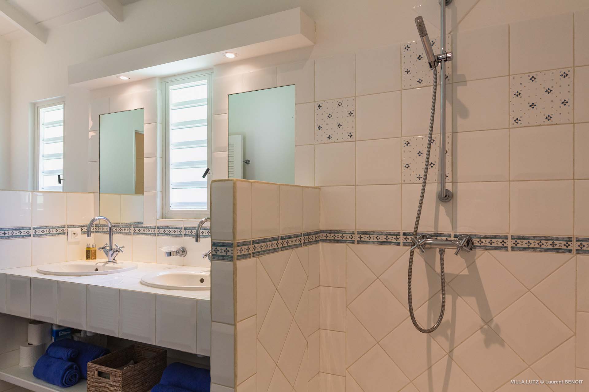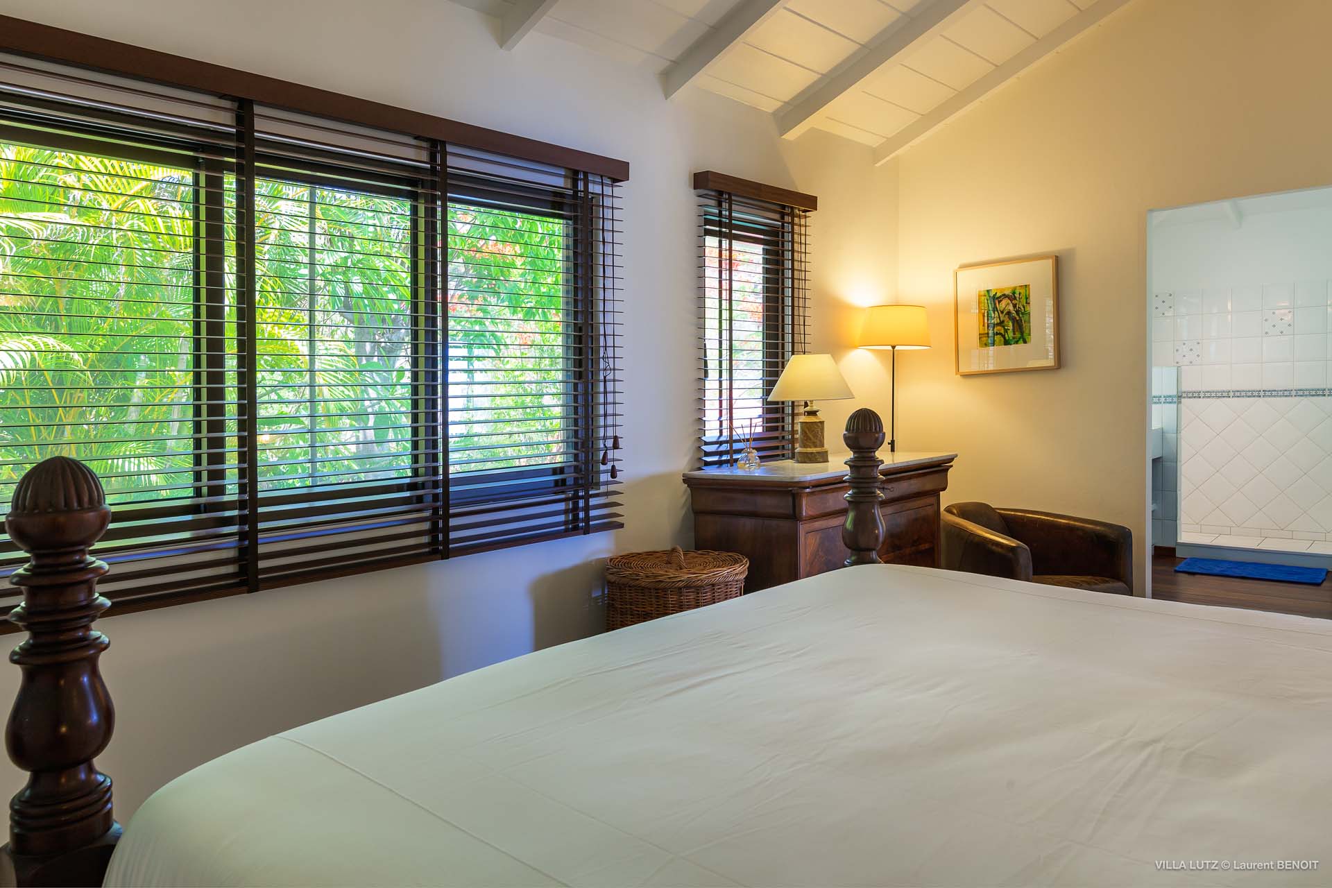Au total, la villa propose quatre chambres, chacune avec sa salle de bain privée. La première chambre est située à l’étage supérieur et offre un accès pratique depuis le salon. Les deux chambres suivantes se trouvent au niveau inférieur, donnant directement sur la terrasse et la piscine de la villa. Enfin, la quatrième chambre est située dans un bungalow séparé, offrant une intimité supplémentaire pour ceux qui le souhaitent.