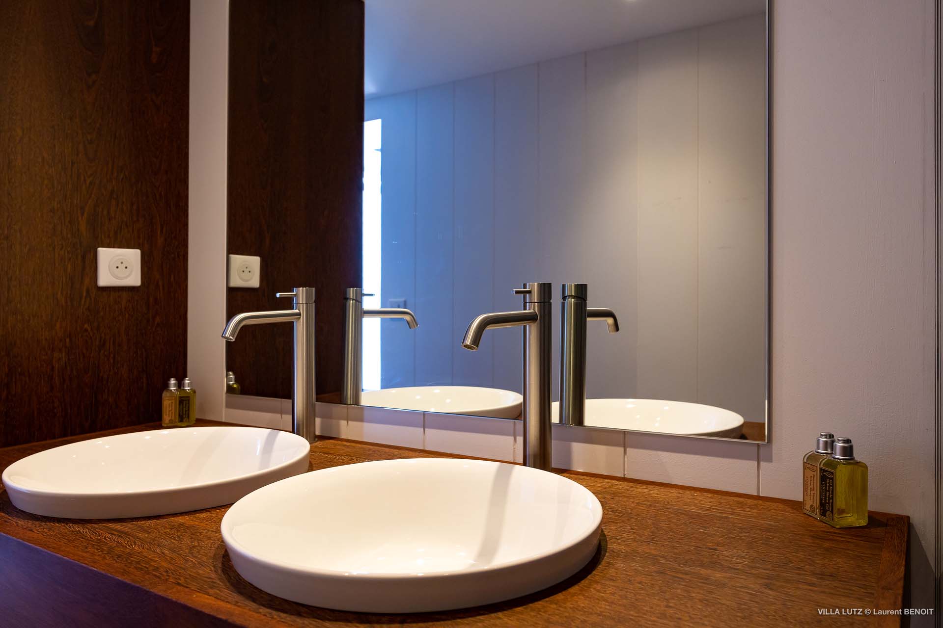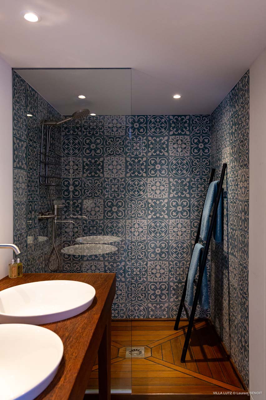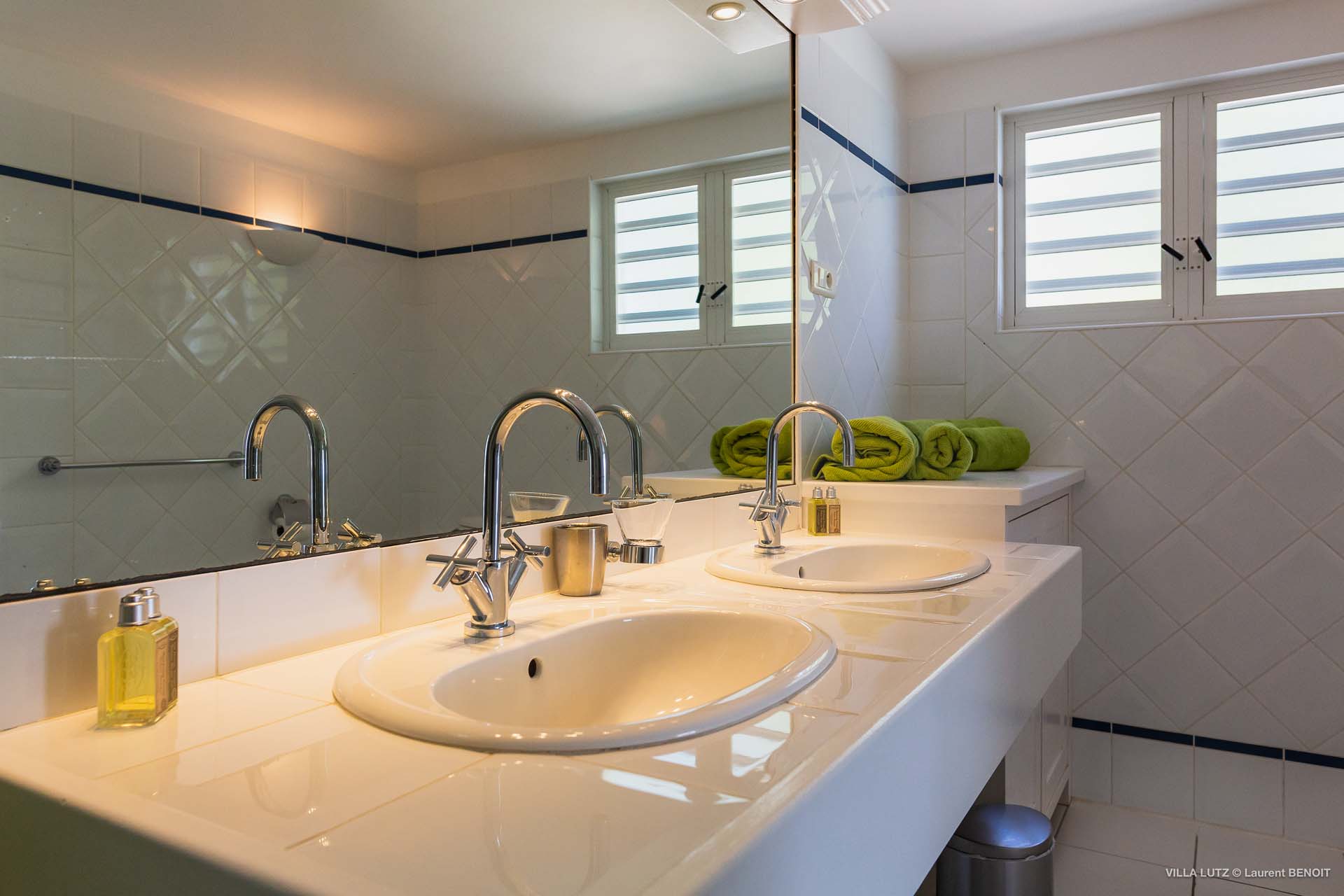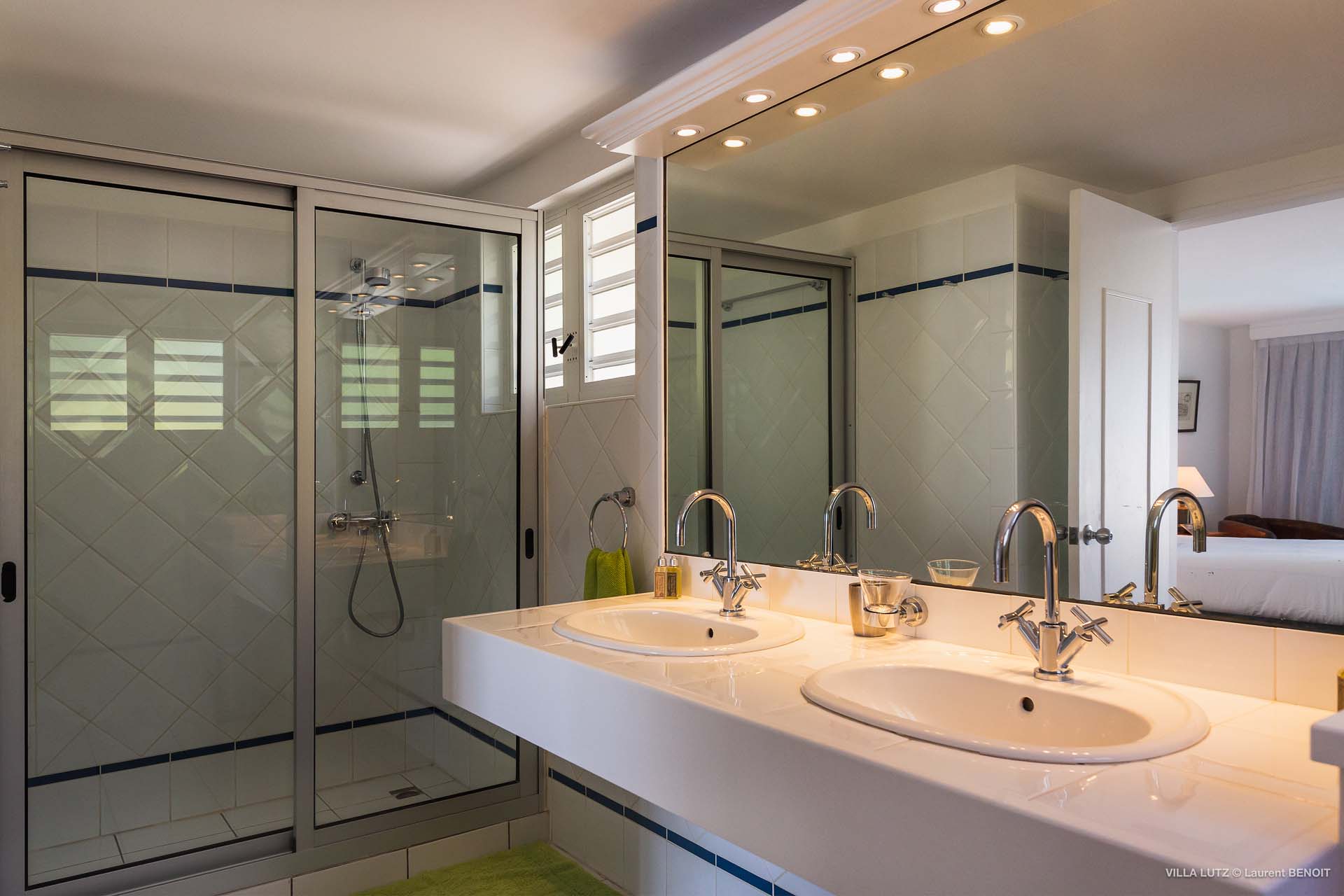 Au total, la villa propose quatre chambres, chacune avec sa salle de bain privée. La première chambre est située à l’étage supérieur et offre un accès pratique depuis le salon. Les deux chambres suivantes se trouvent au niveau inférieur, donnant directement sur la terrasse et la piscine de la villa. Enfin, la quatrième chambre est située dans un bungalow séparé, offrant une intimité supplémentaire pour ceux qui le souhaitent.