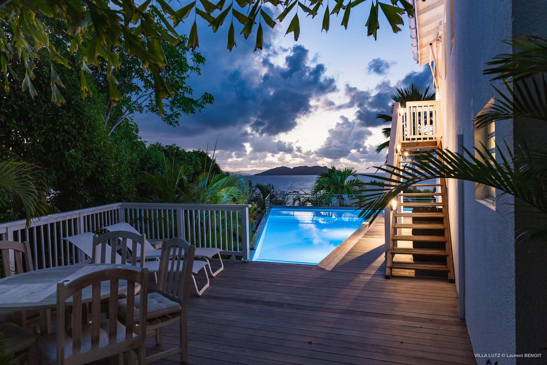 La Villa Luz est située sur les hauteurs de Lorient, offrant une vue imprenable sur l’océan et les magnifiques couleurs du coucher de soleil des Caraïbes.