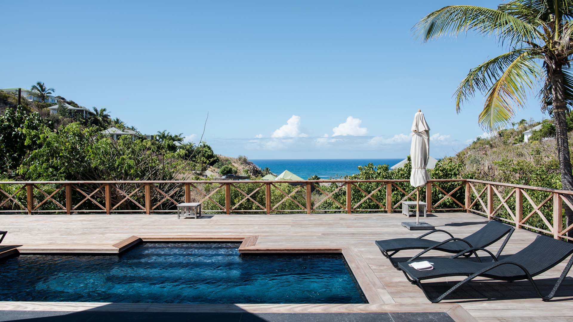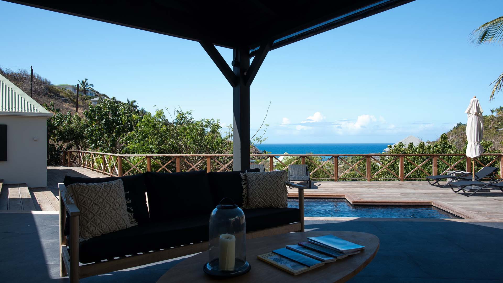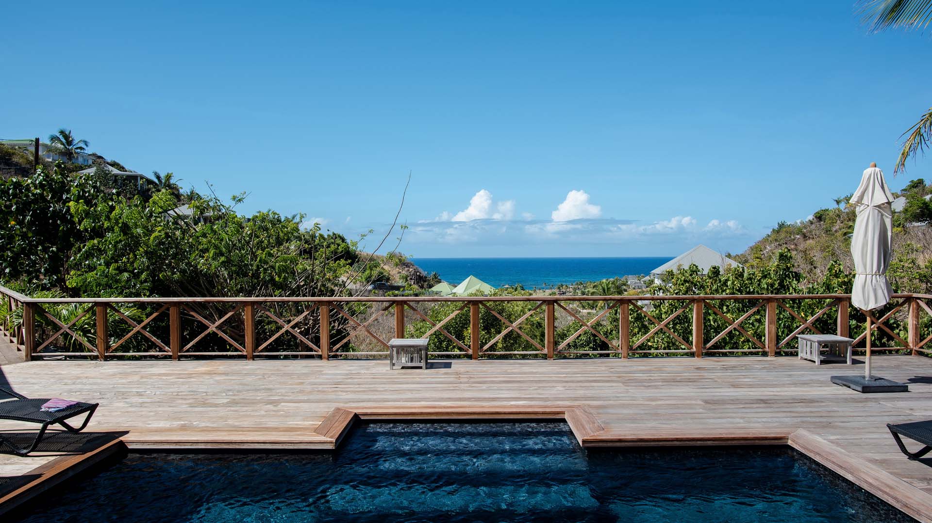 La terrasse et sa piscine permettent pleinement de profiter de la vue et du calme de ce quartier de St Barth.