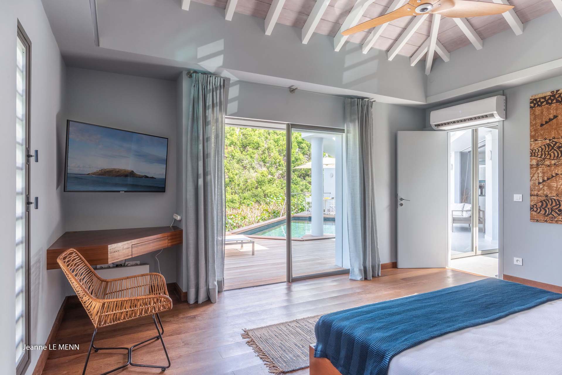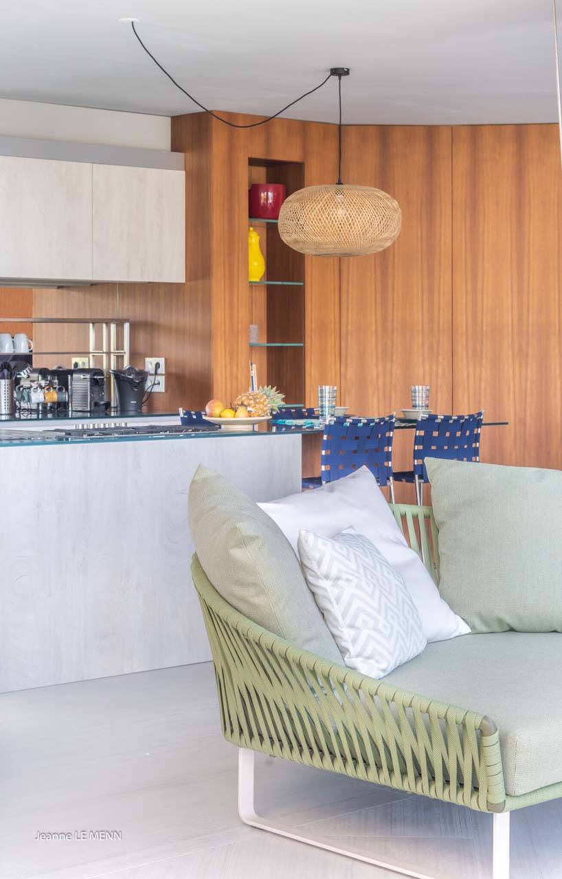 Le grand salon est ouvert sur la terrasse et la piscine.
