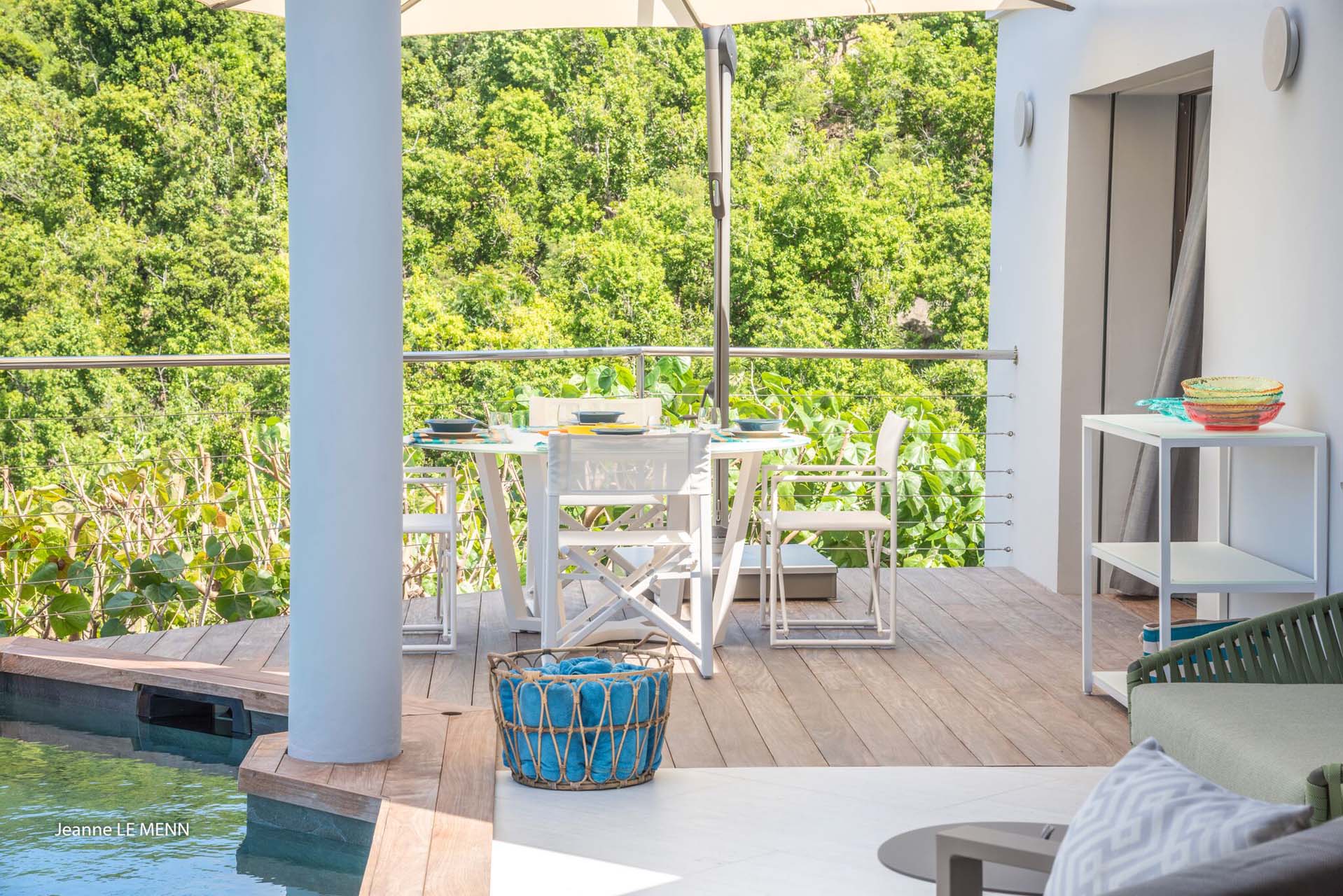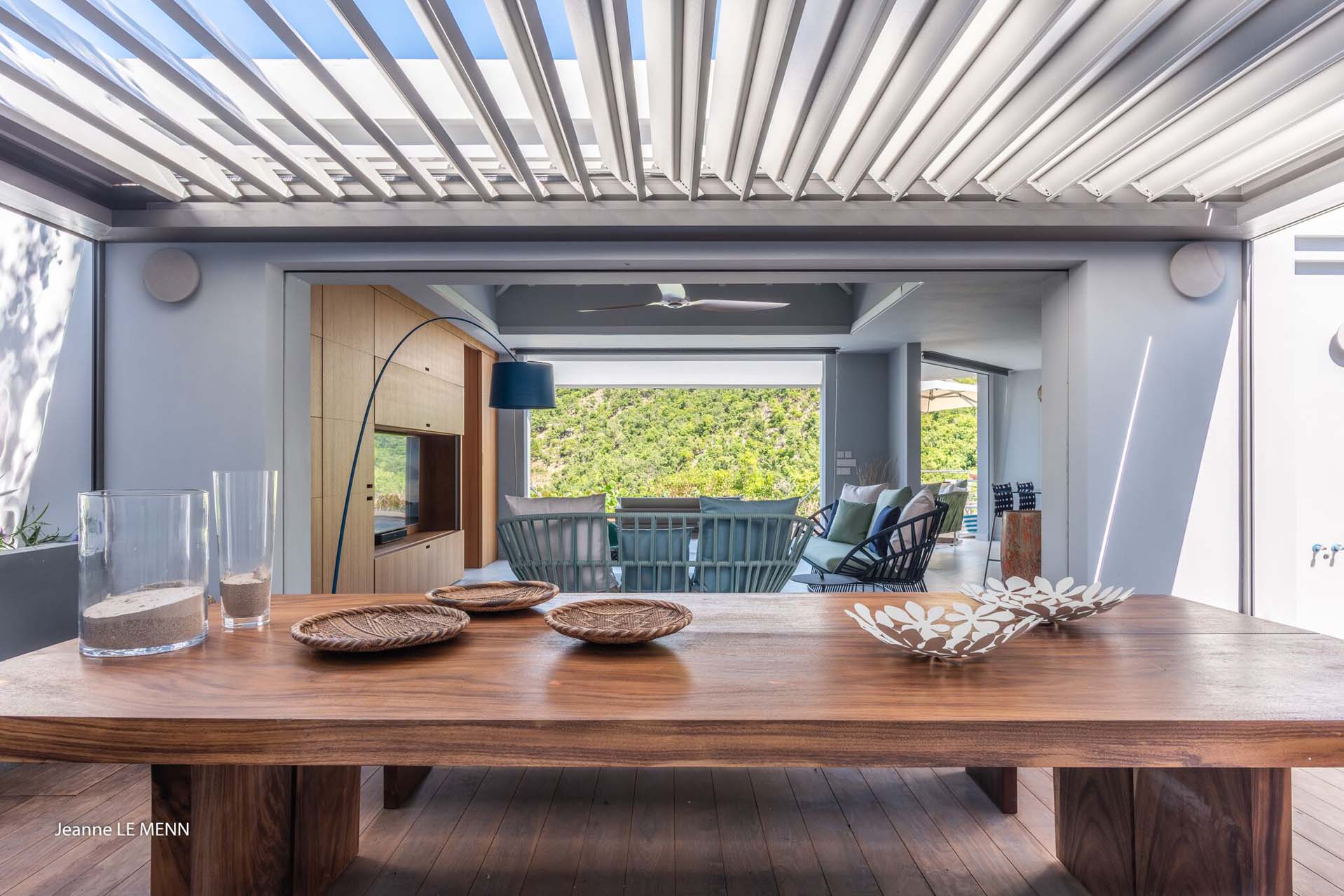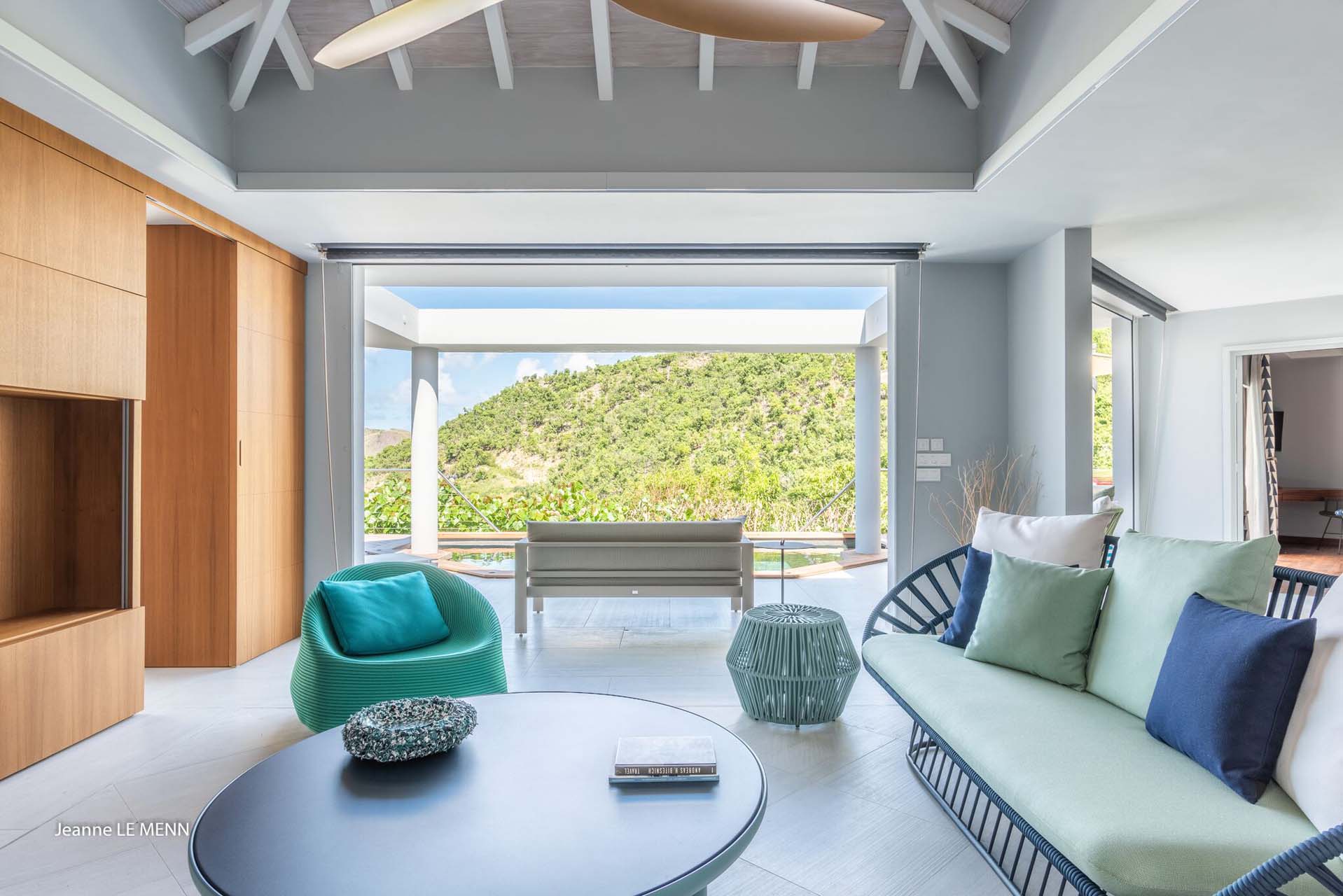 Le grand salon est ouvert sur la terrasse et la piscine.