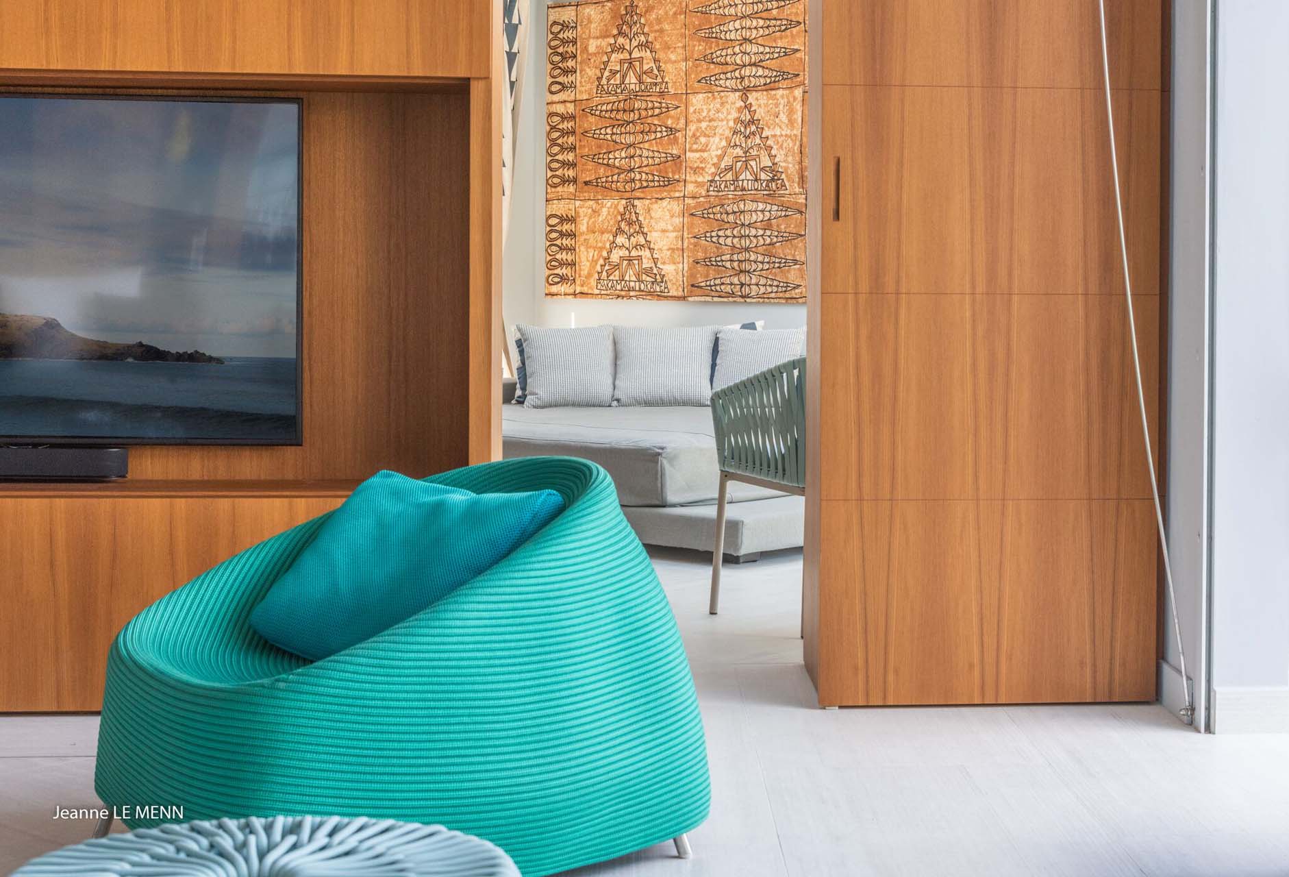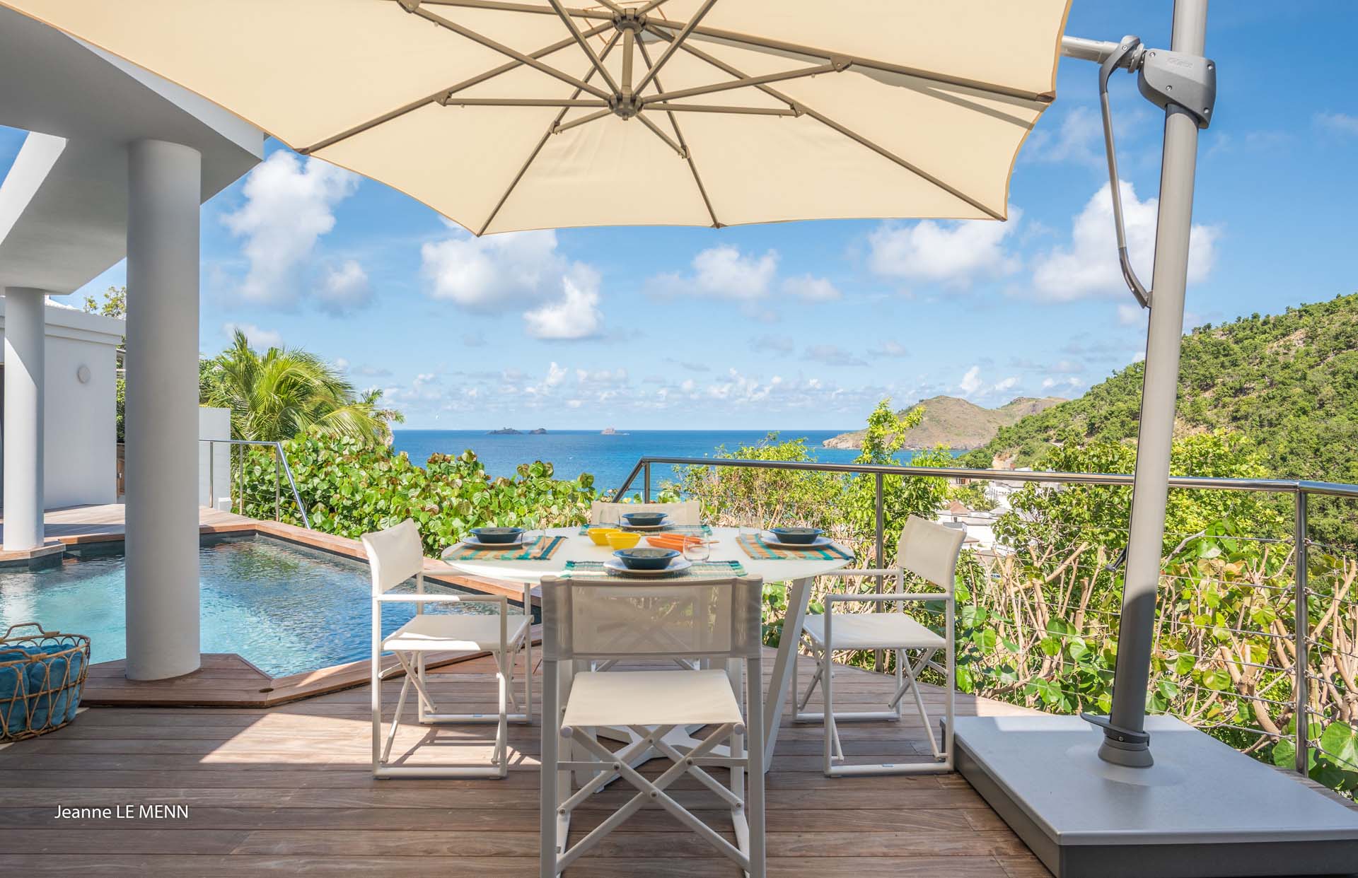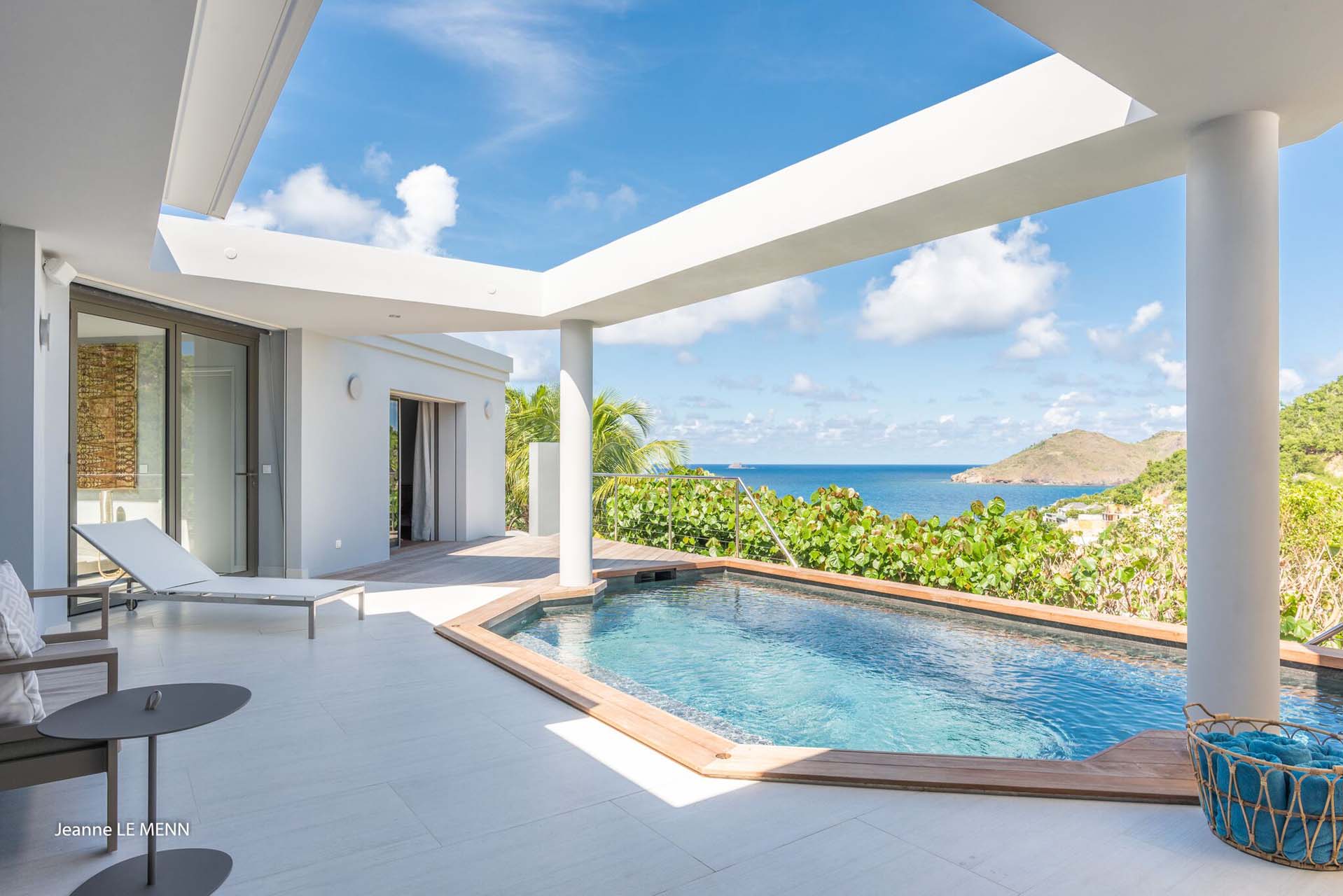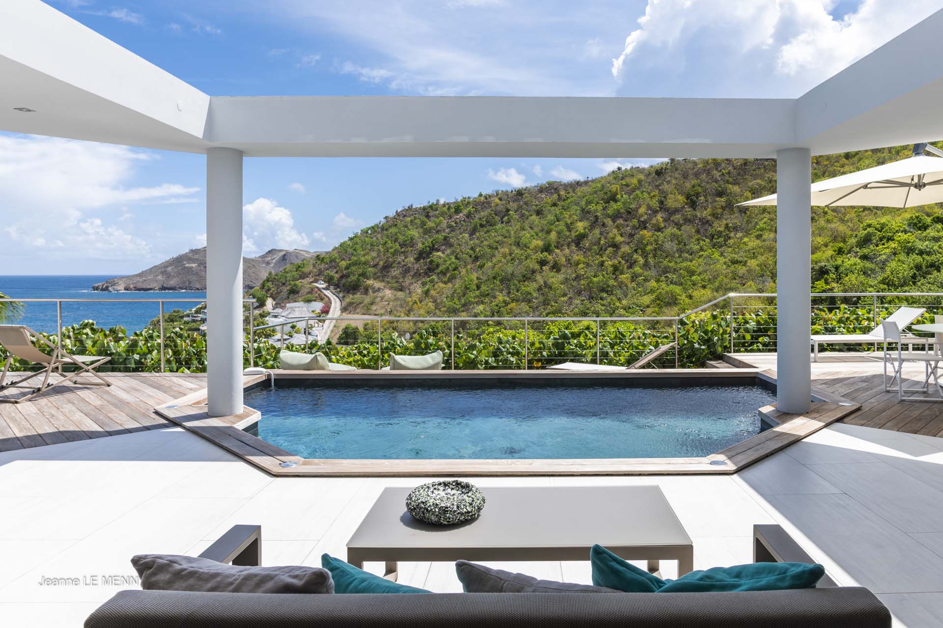 Le grand salon est ouvert sur la terrasse et la piscine.