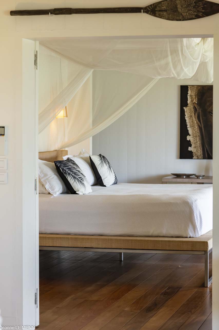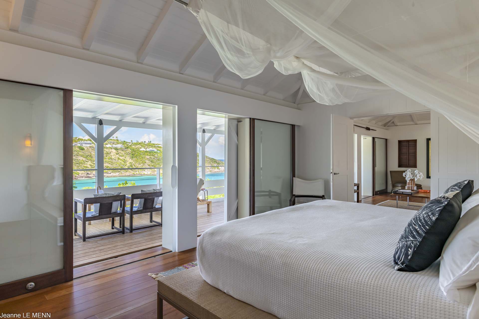 La chambre principale est connectée au salon, l’autre est accessible par la terrasse.