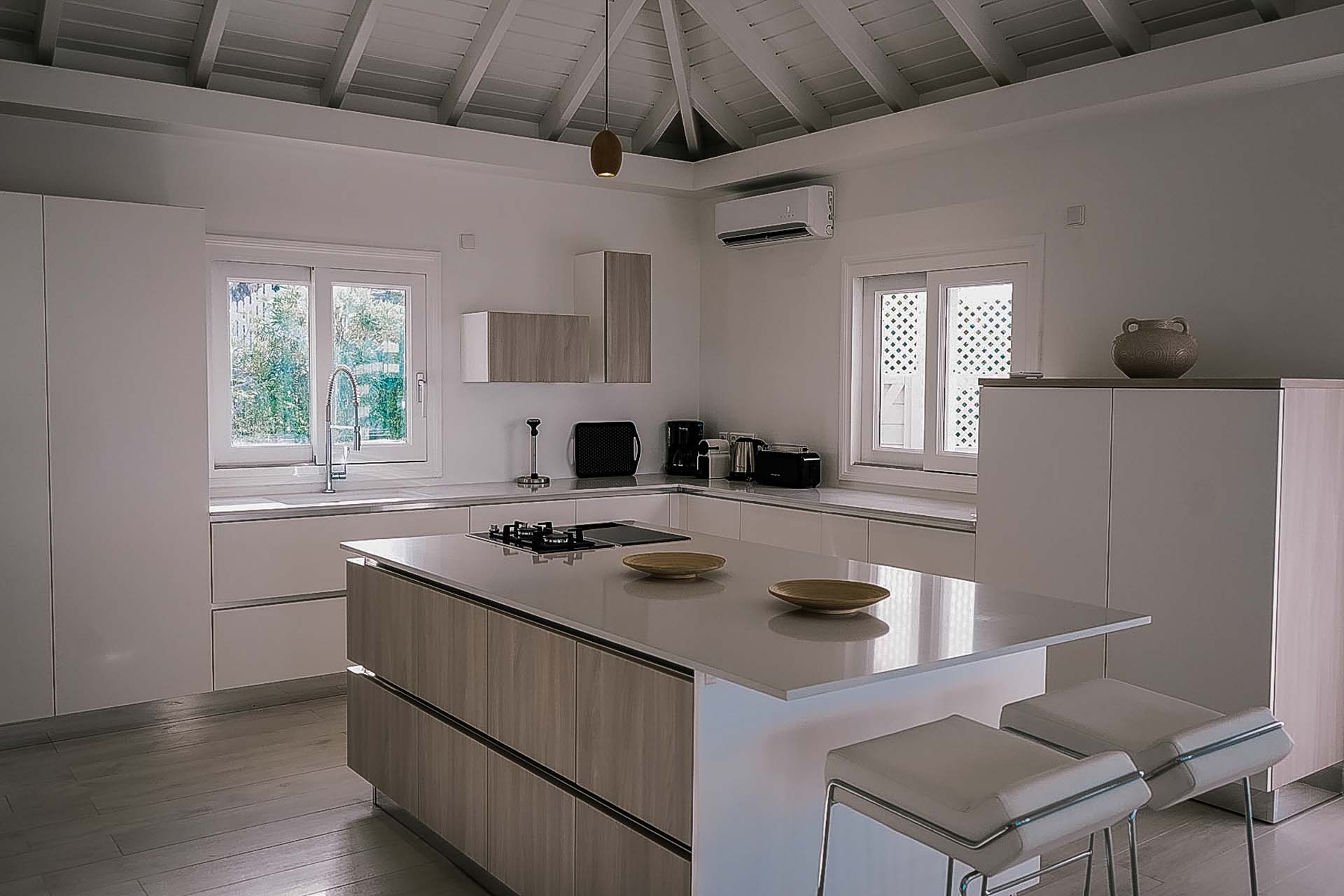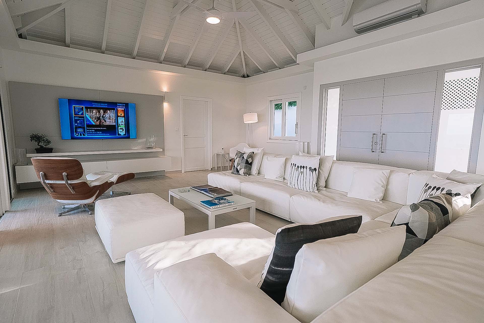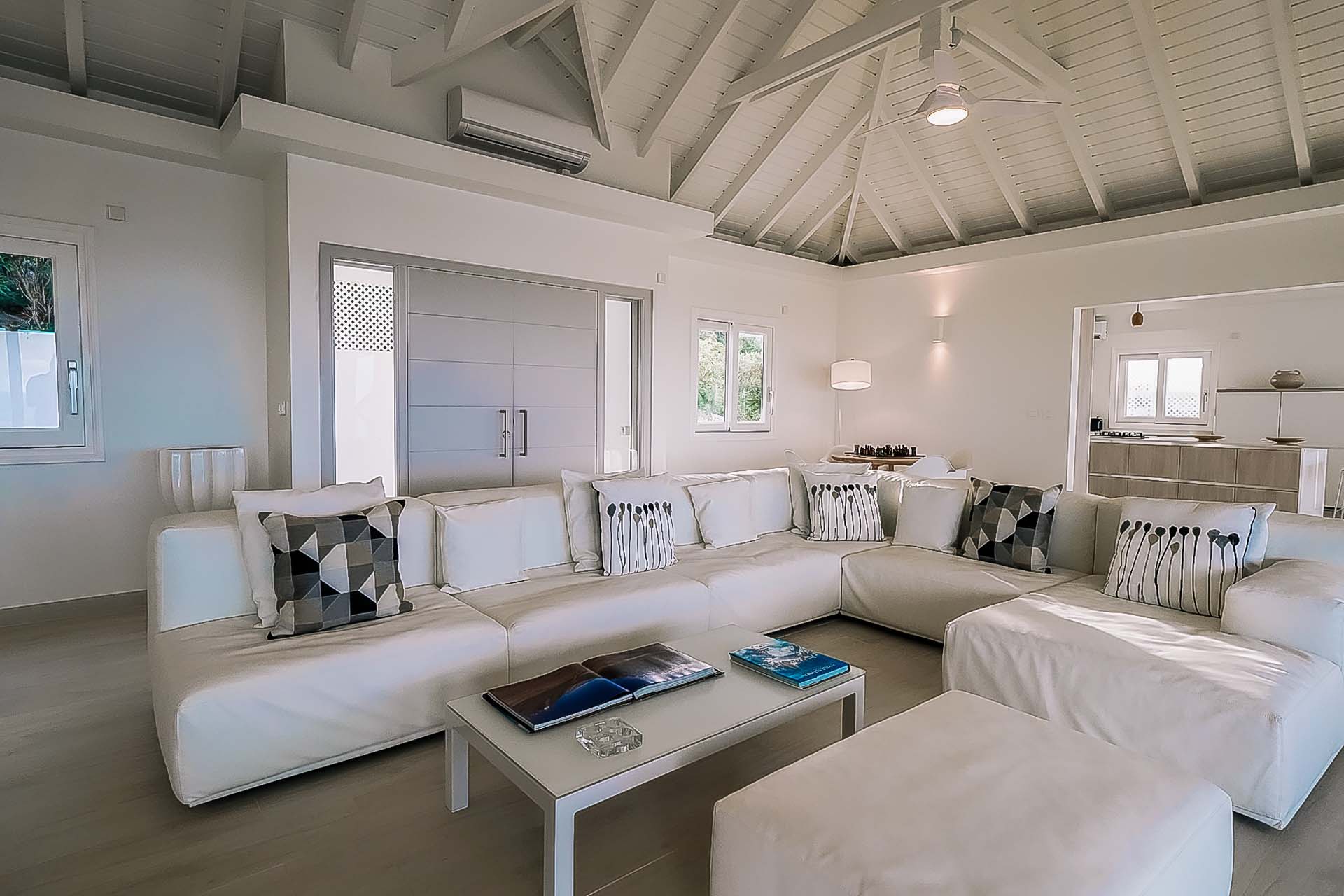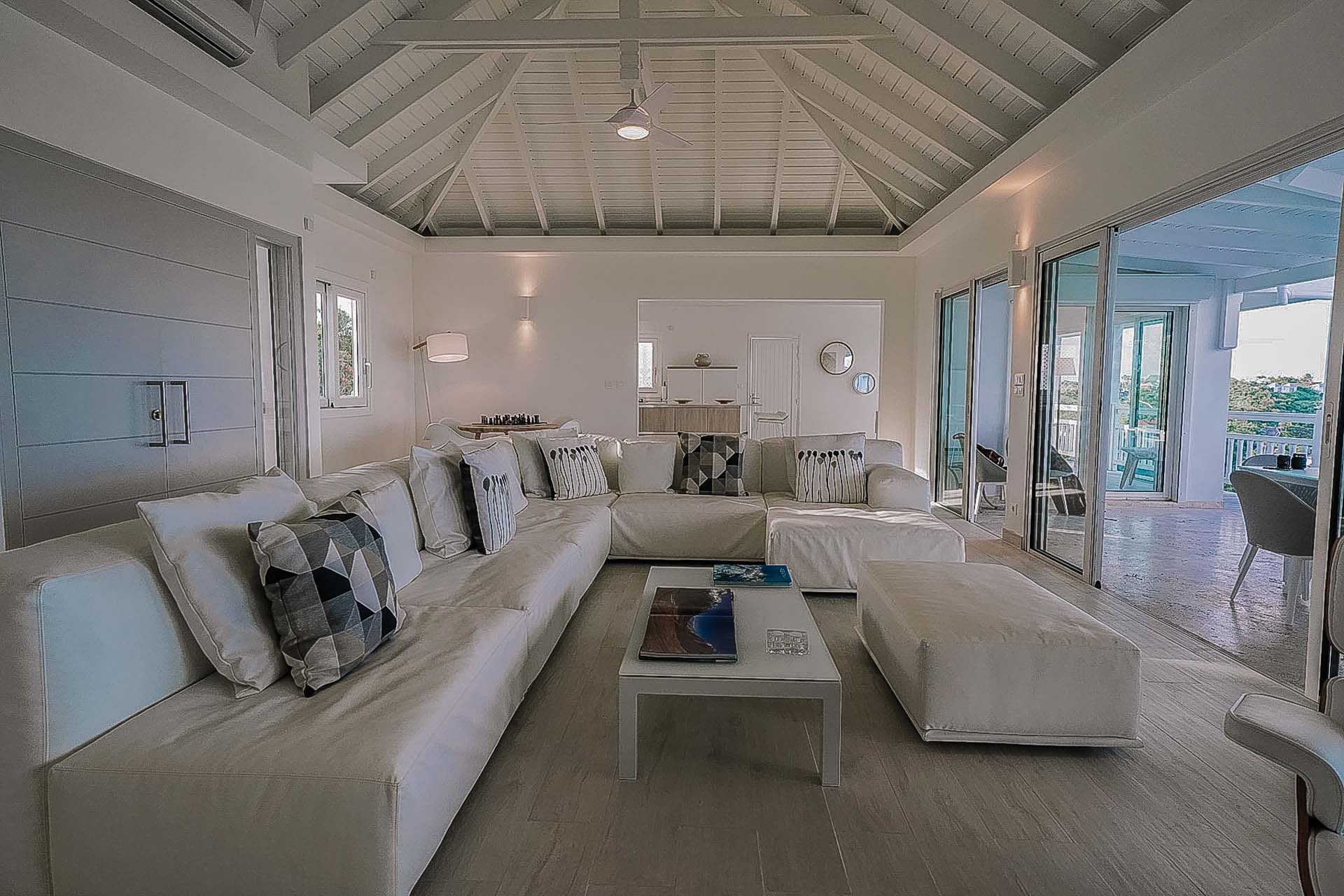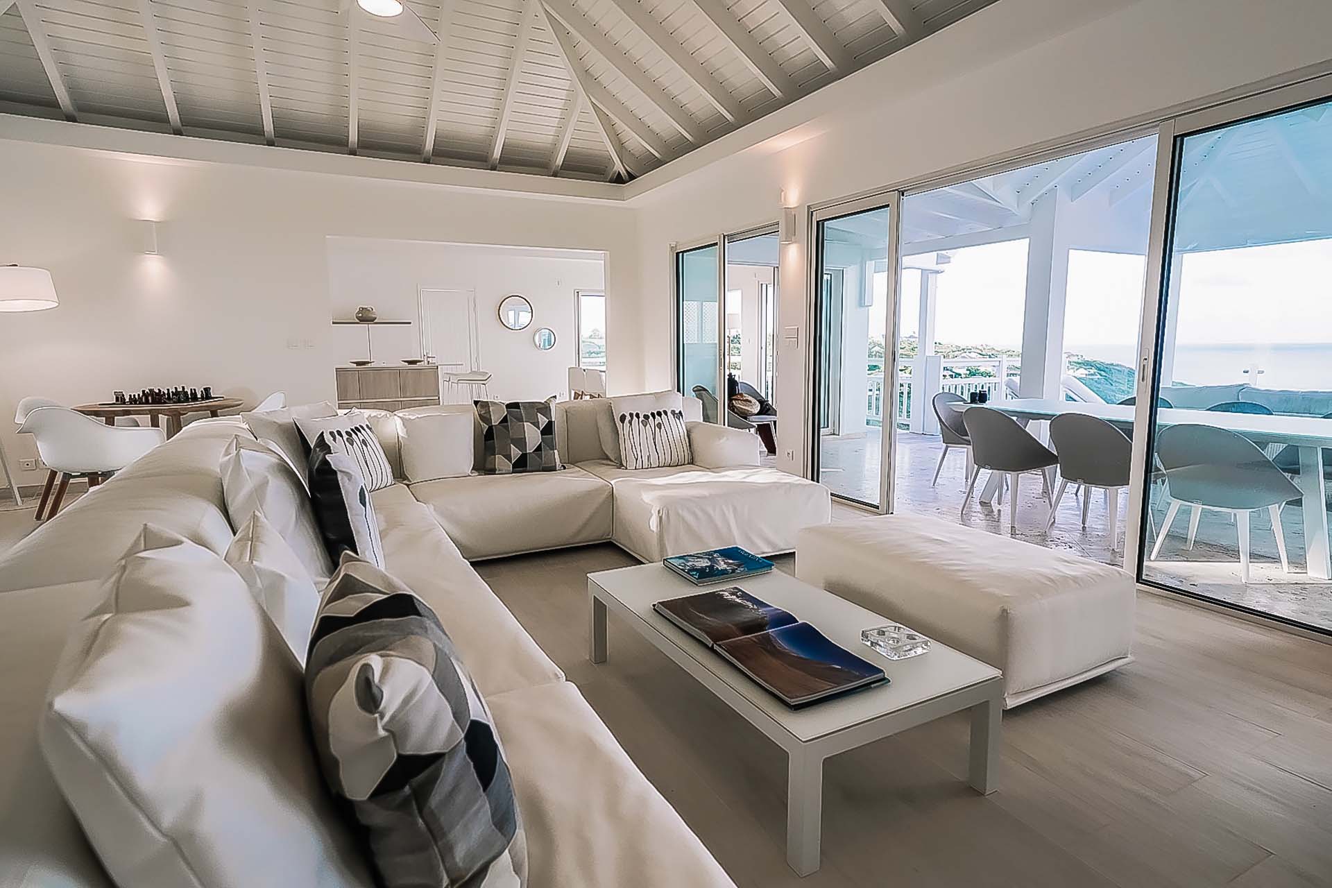 Spacieuse, elle embrasse toute la baie de Marigot, l’île de Tortue et l’océan.