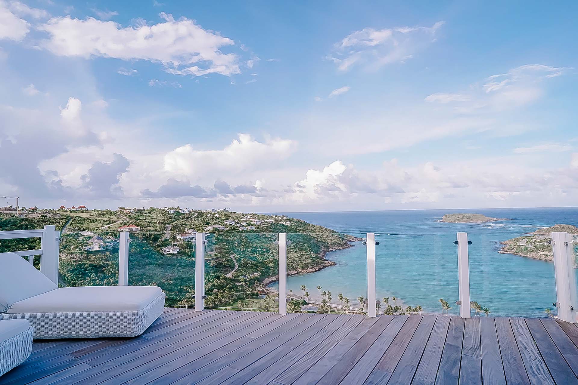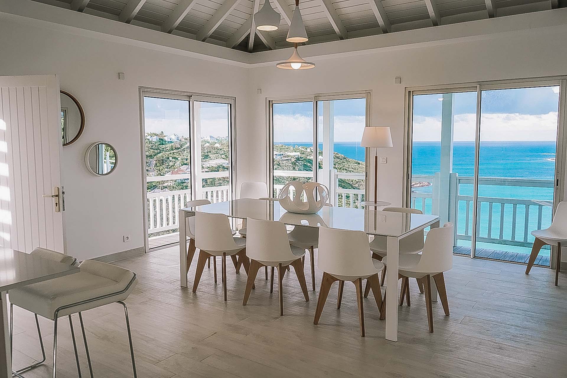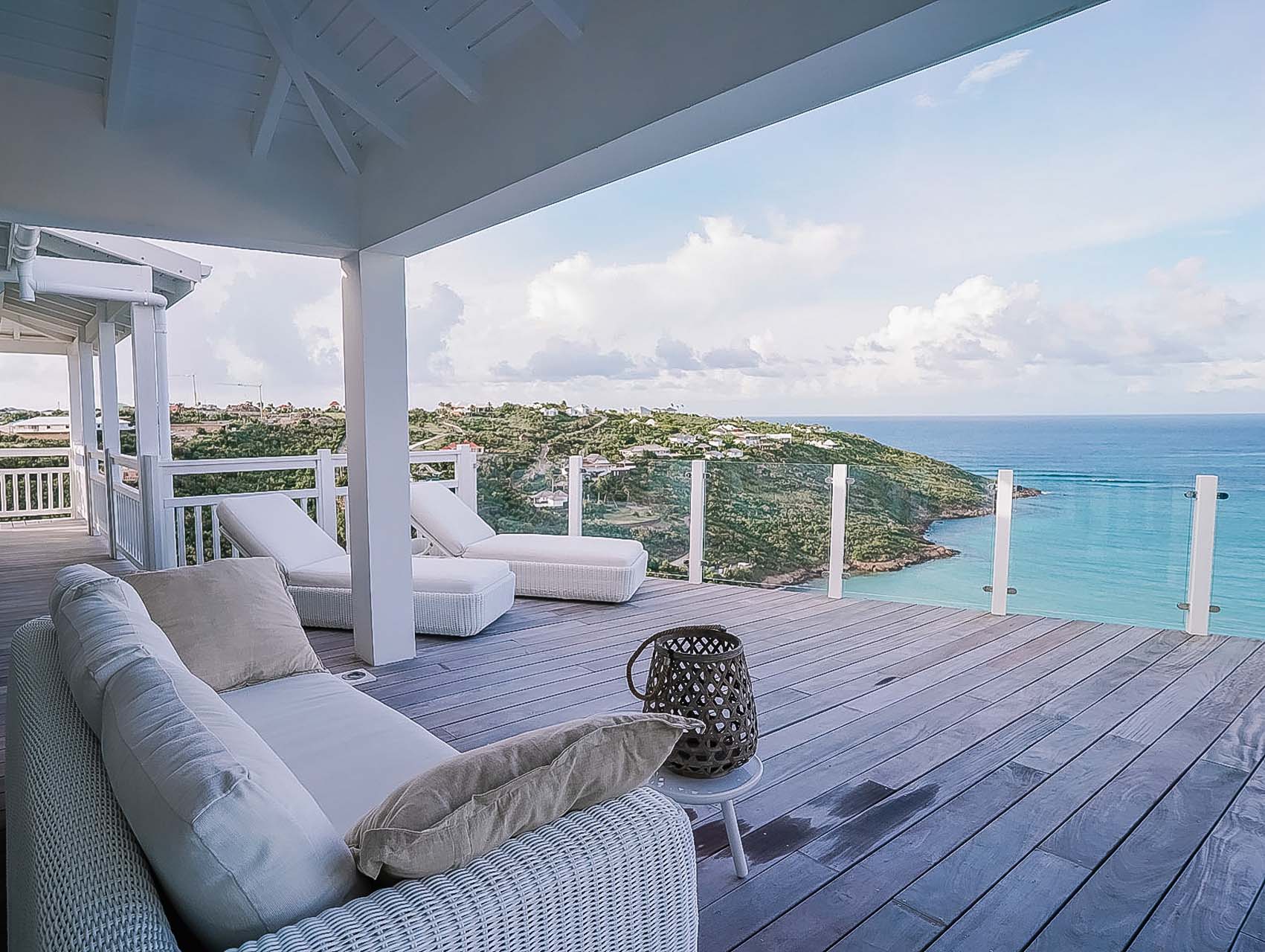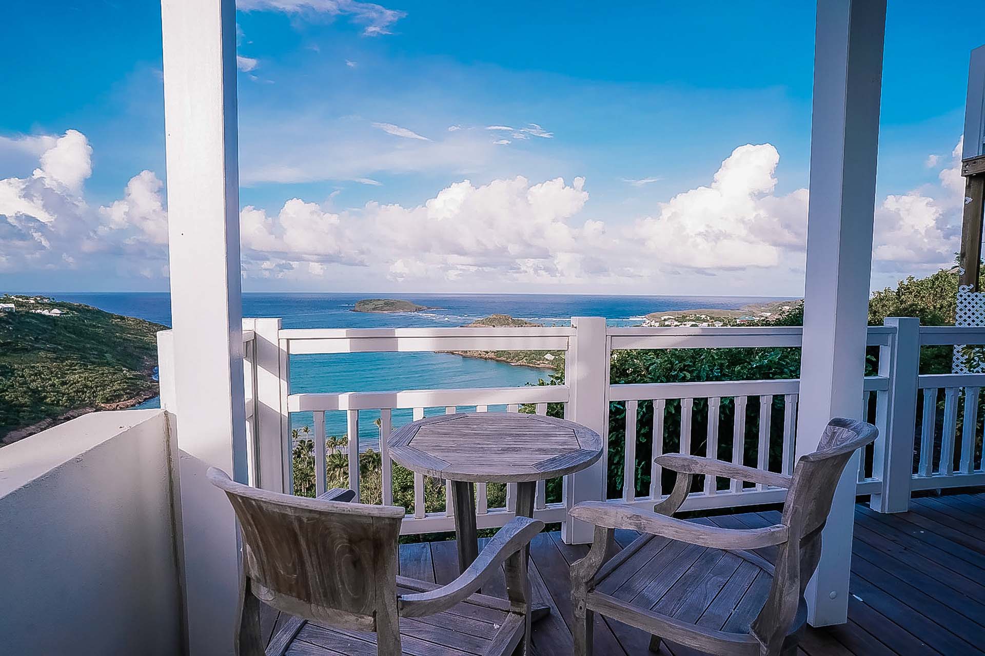 Spacieuse, elle embrasse toute la baie de Marigot, l’île de Tortue et l’océan.