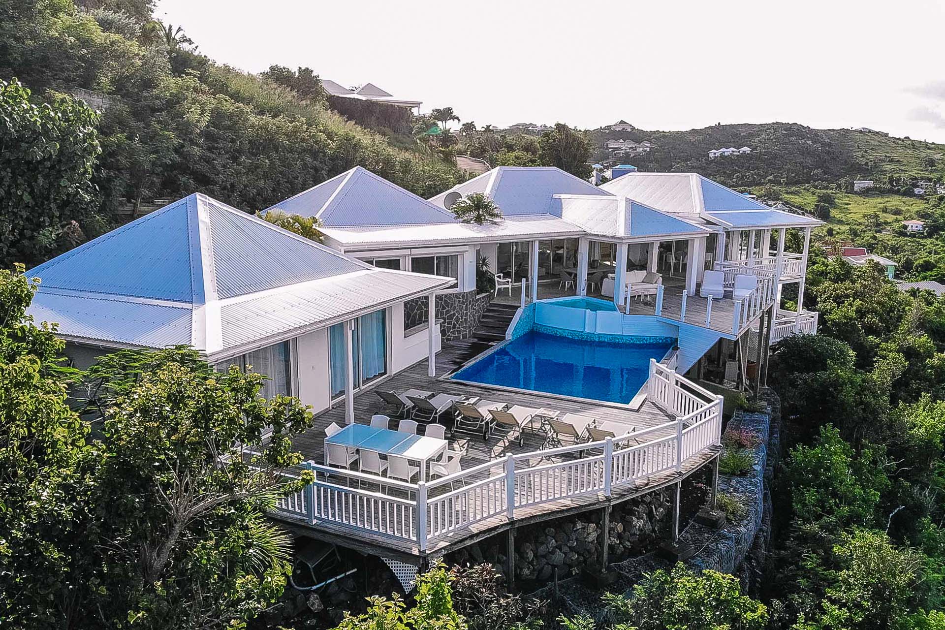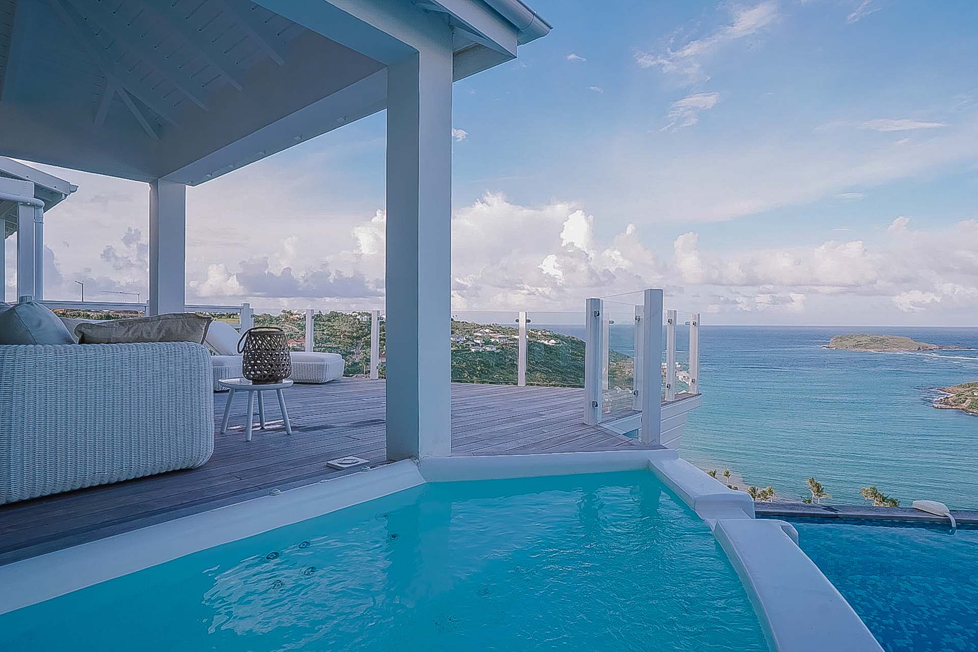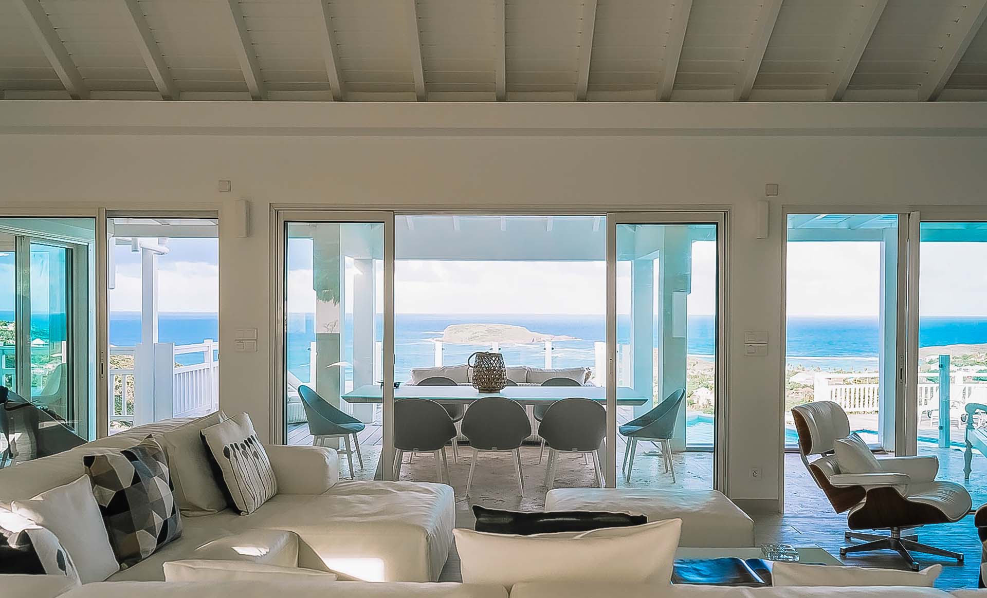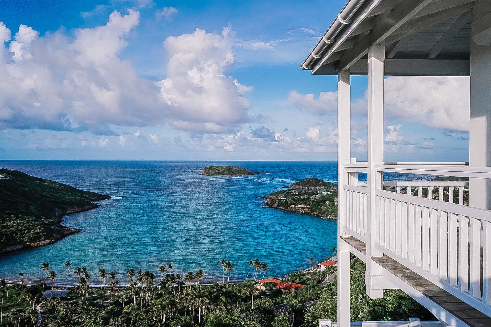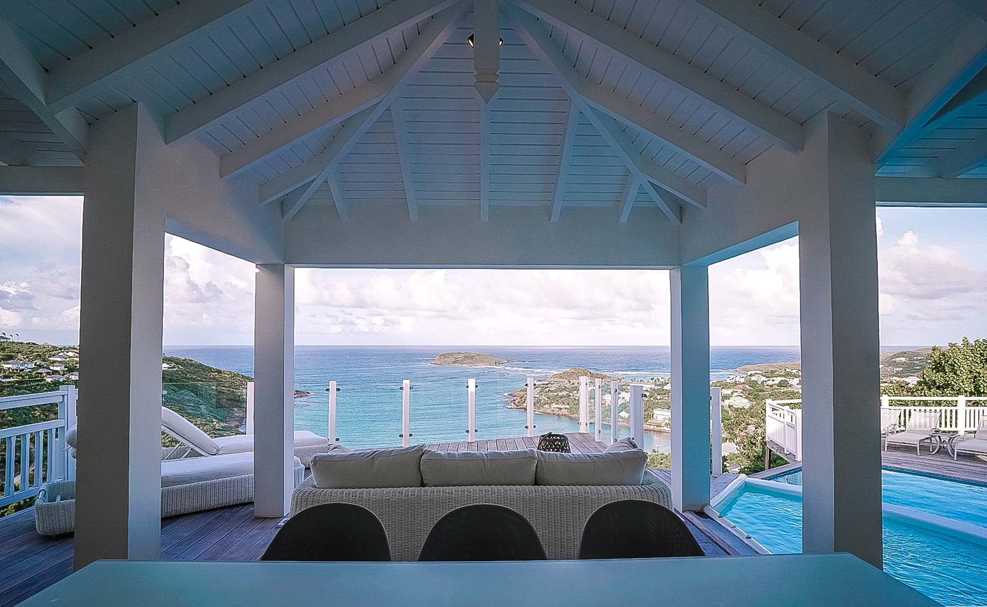 Spacieuse, elle embrasse toute la baie de Marigot, l’île de Tortue et l’océan.