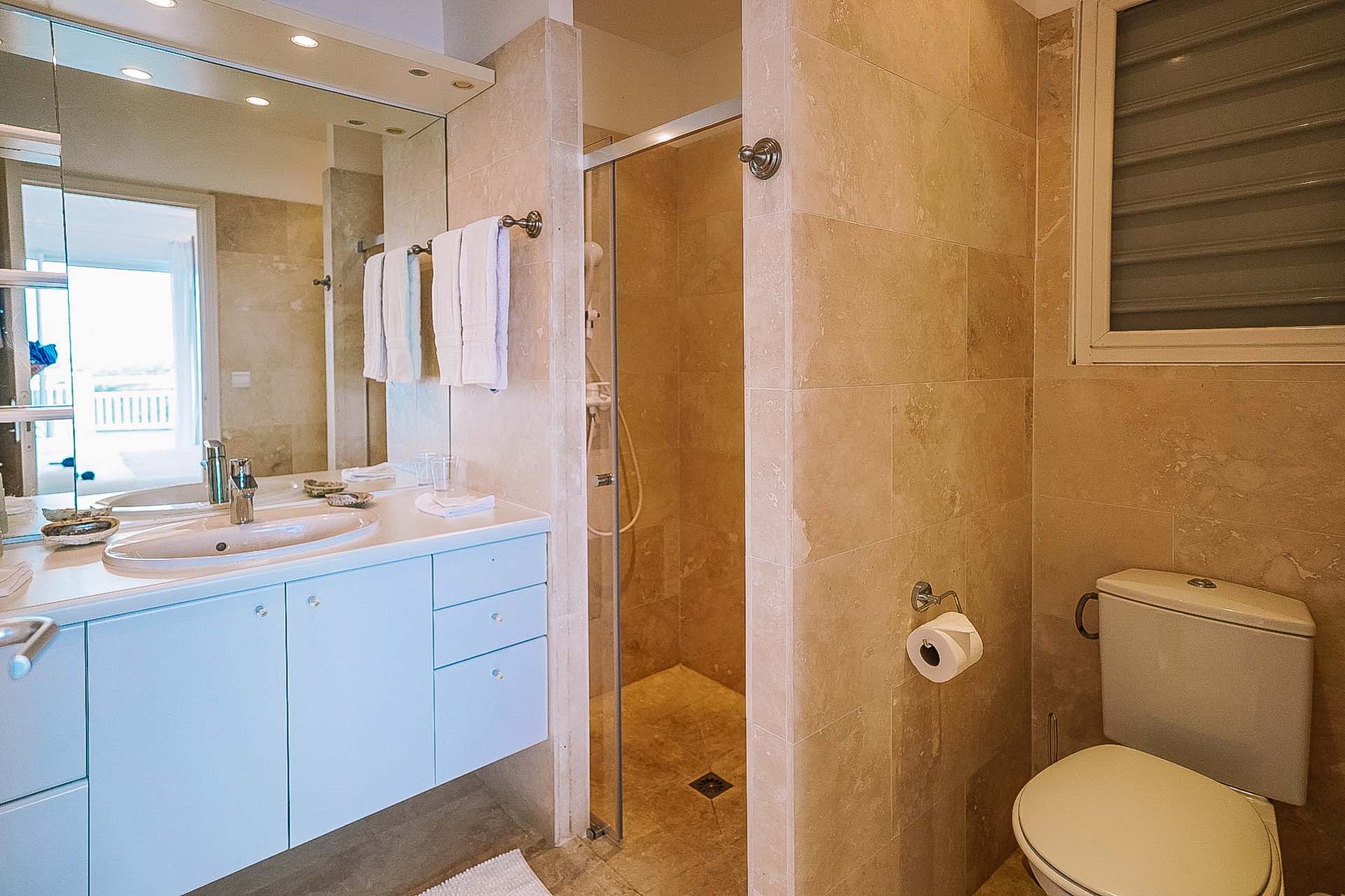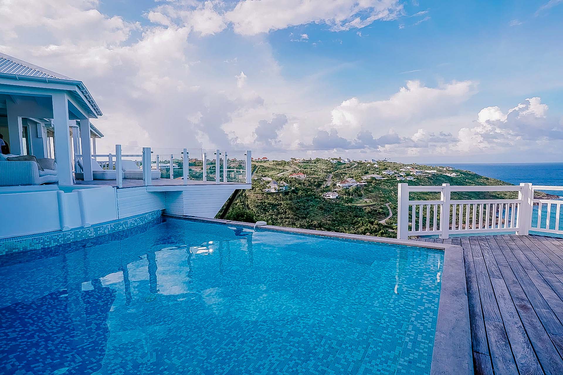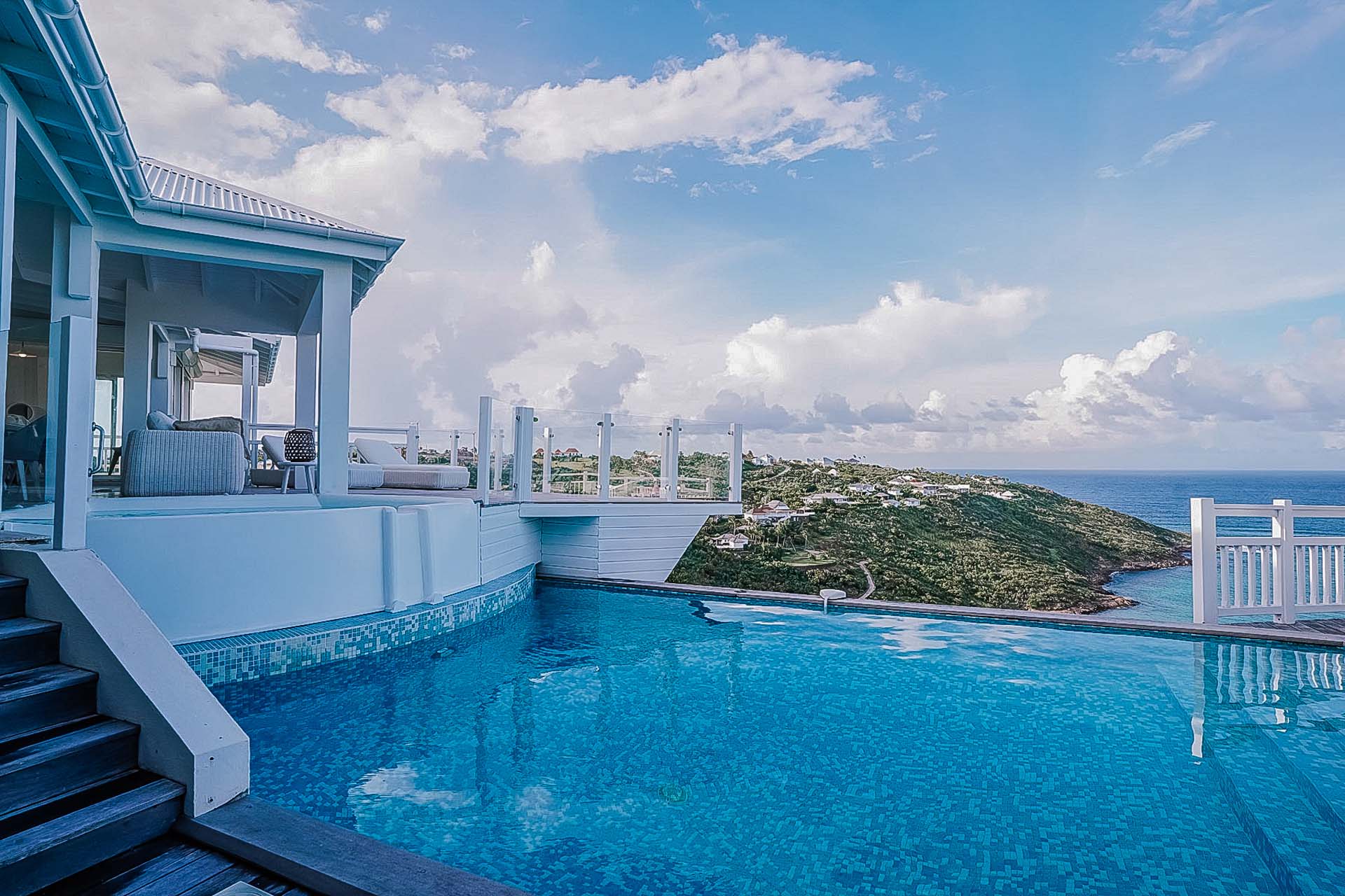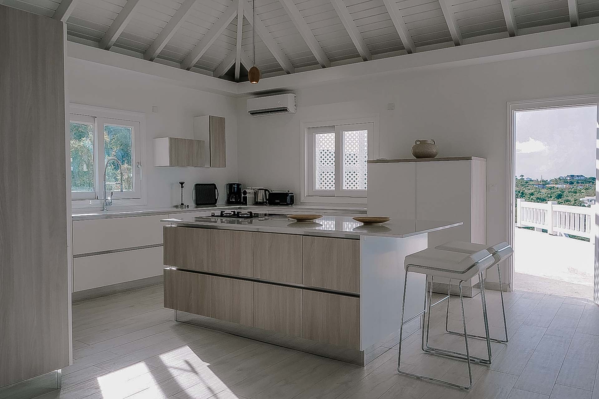 Spacieuse, elle embrasse toute la baie de Marigot, l’île de Tortue et l’océan.