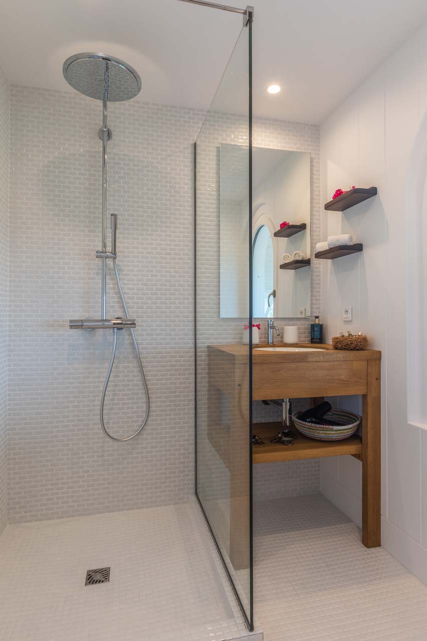 En-dessous du niveau principal se trouvent trois chambres en enfilade accessibles par l’intérieur ou par l’extérieur en passant par une terrace privée.