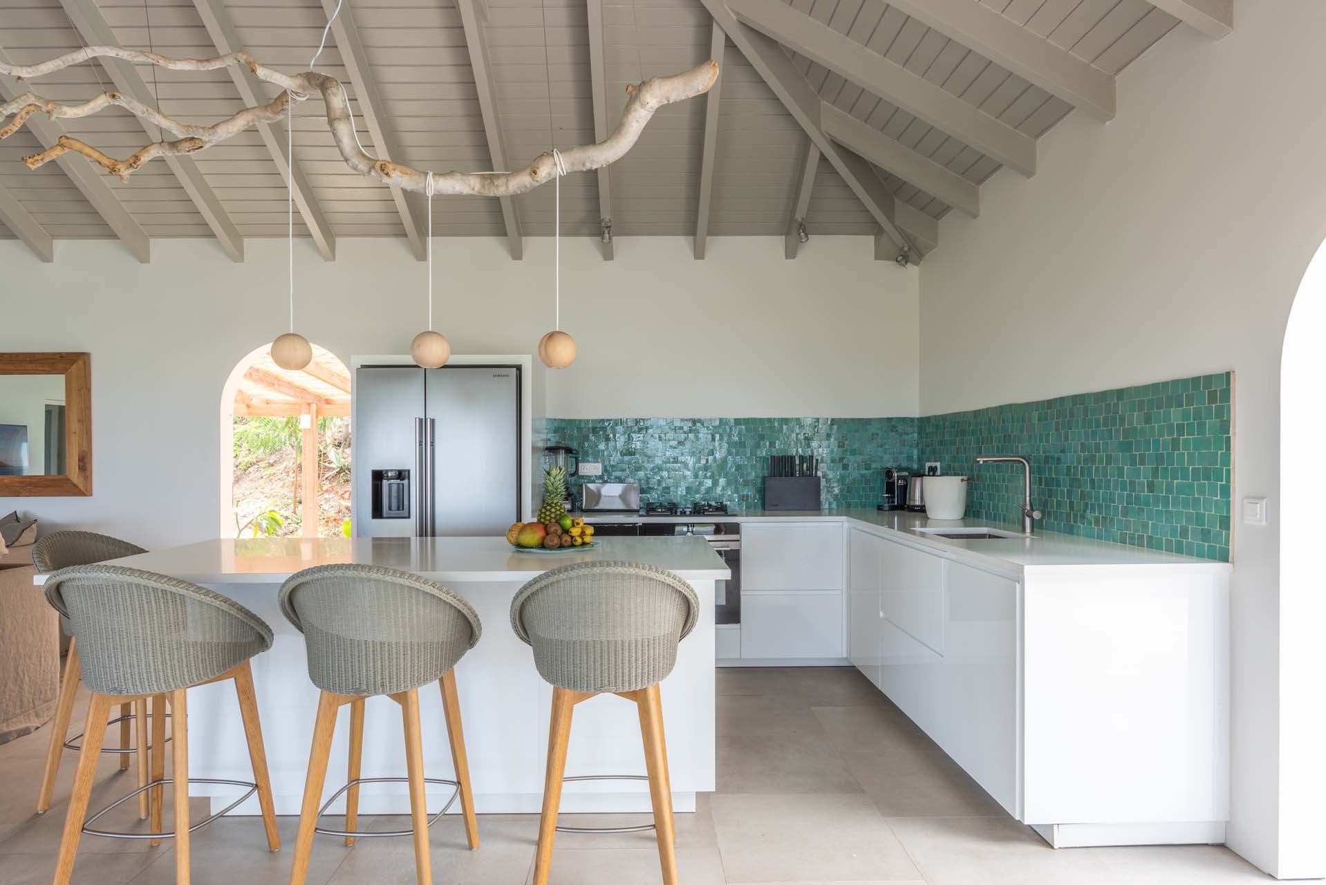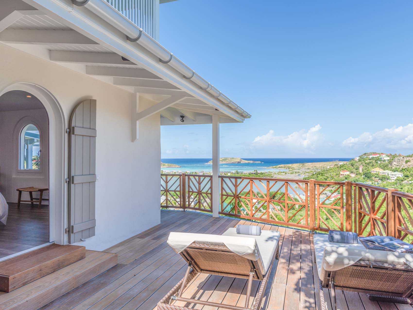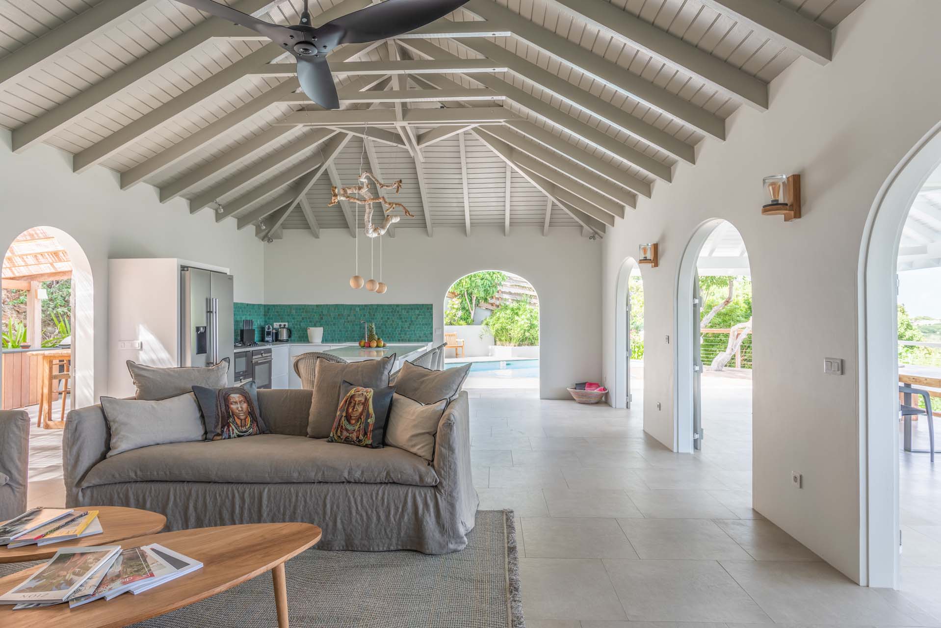 L’espace autour de la piscine surplombe la baie de Grand Cul de Sac.
