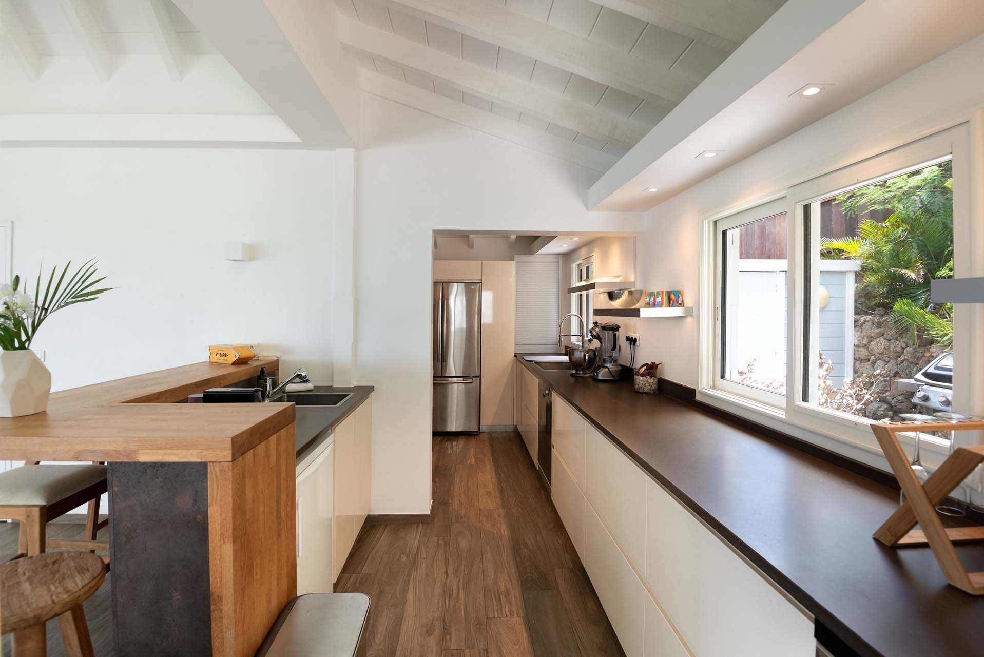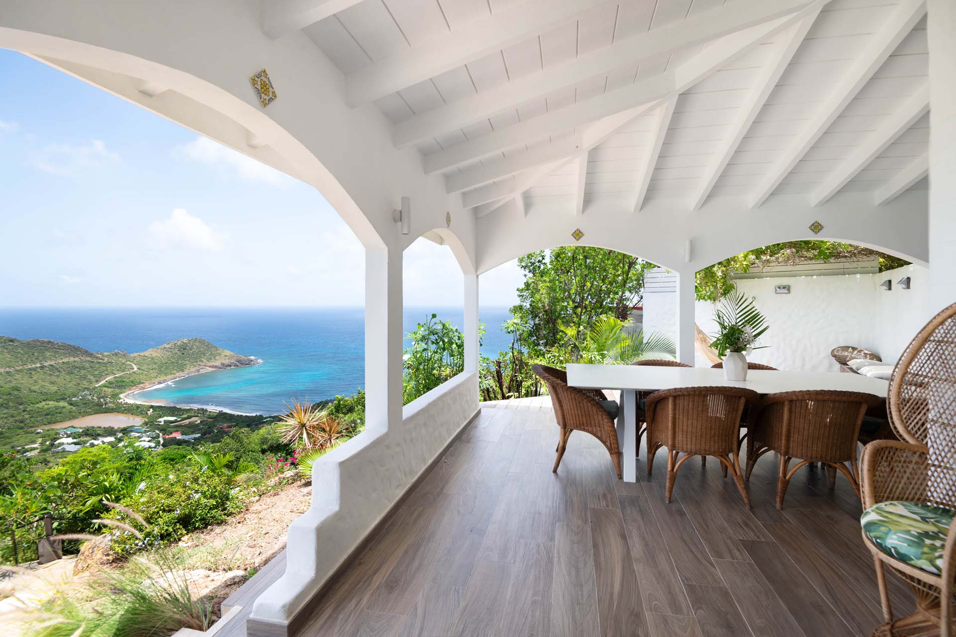 Nichée dans le quartier de Devet, Ocean Vibes vous émerveillera grâce à son panorama à couper le souffle, s’étendant du lagon de Grand Cul de Sac jusqu’à l’Anse de Toiny. Conçue pour le confort et la convivialité, la villa propose un espace de vie spacieux. Le salon, doté de larges baies vitrées, invite à admirer la vue spectaculaire. Deux grandes terrasses couvertes vous permettent de savourer des moments de détente, que ce soit autour du barbecue dans le jardin tropical ou face à l’océan. Une grande piscine chauffée vous accueillera pour des moments conviviaux en famille ou entre amis.