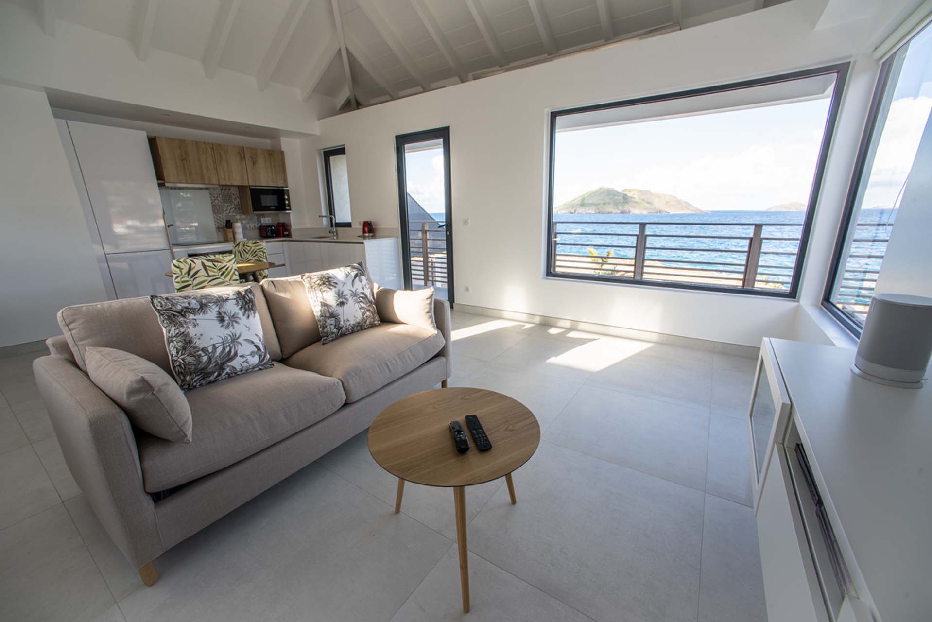 On The Rock est construite sur 2 niveaux, avec la cuisine et le salon situés à l’étage pour vous offrir une vue panoramique sur l’océan. Le rez-de-chaussée abrite la chambre principale avec sa salle de bain attenante, ainsi qu’une douche extérieure pour vous permettre de profiter pleinement du cadre naturel. Depuis la chambre, vous pourrez admirer la vue magnifique sur l’océan.
