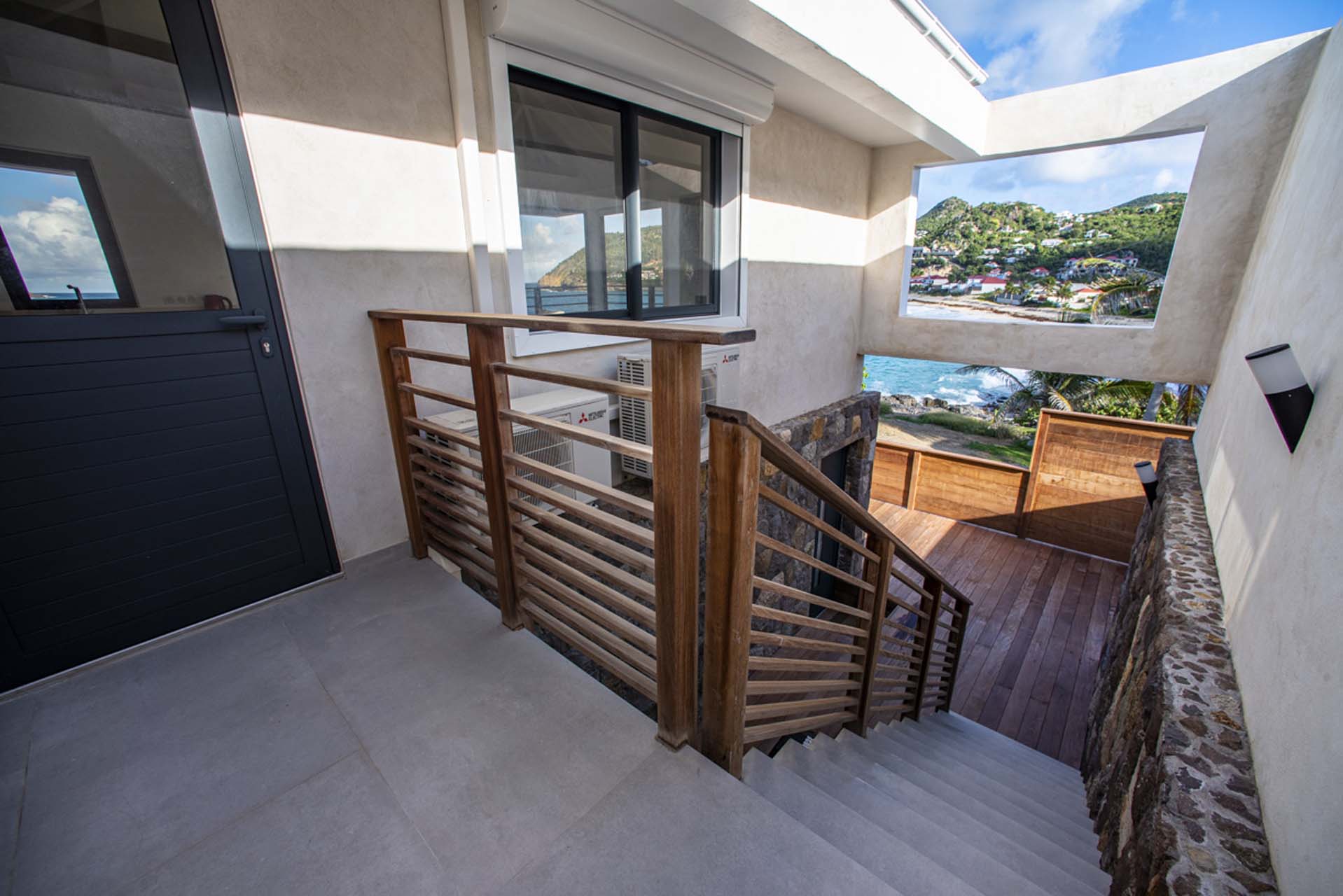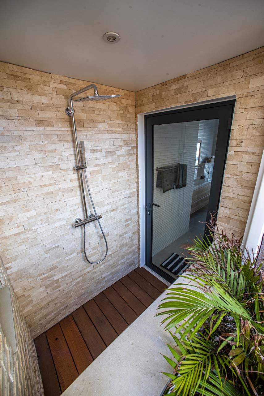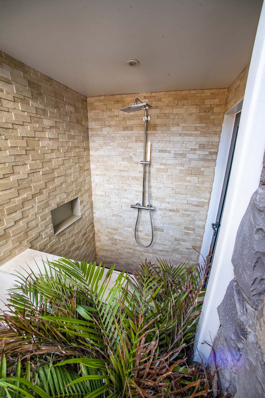 On The Rock est construite sur 2 niveaux, avec la cuisine et le salon situés à l’étage pour vous offrir une vue panoramique sur l’océan. Le rez-de-chaussée abrite la chambre principale avec sa salle de bain attenante, ainsi qu’une douche extérieure pour vous permettre de profiter pleinement du cadre naturel. Depuis la chambre, vous pourrez admirer la vue magnifique sur l’océan.