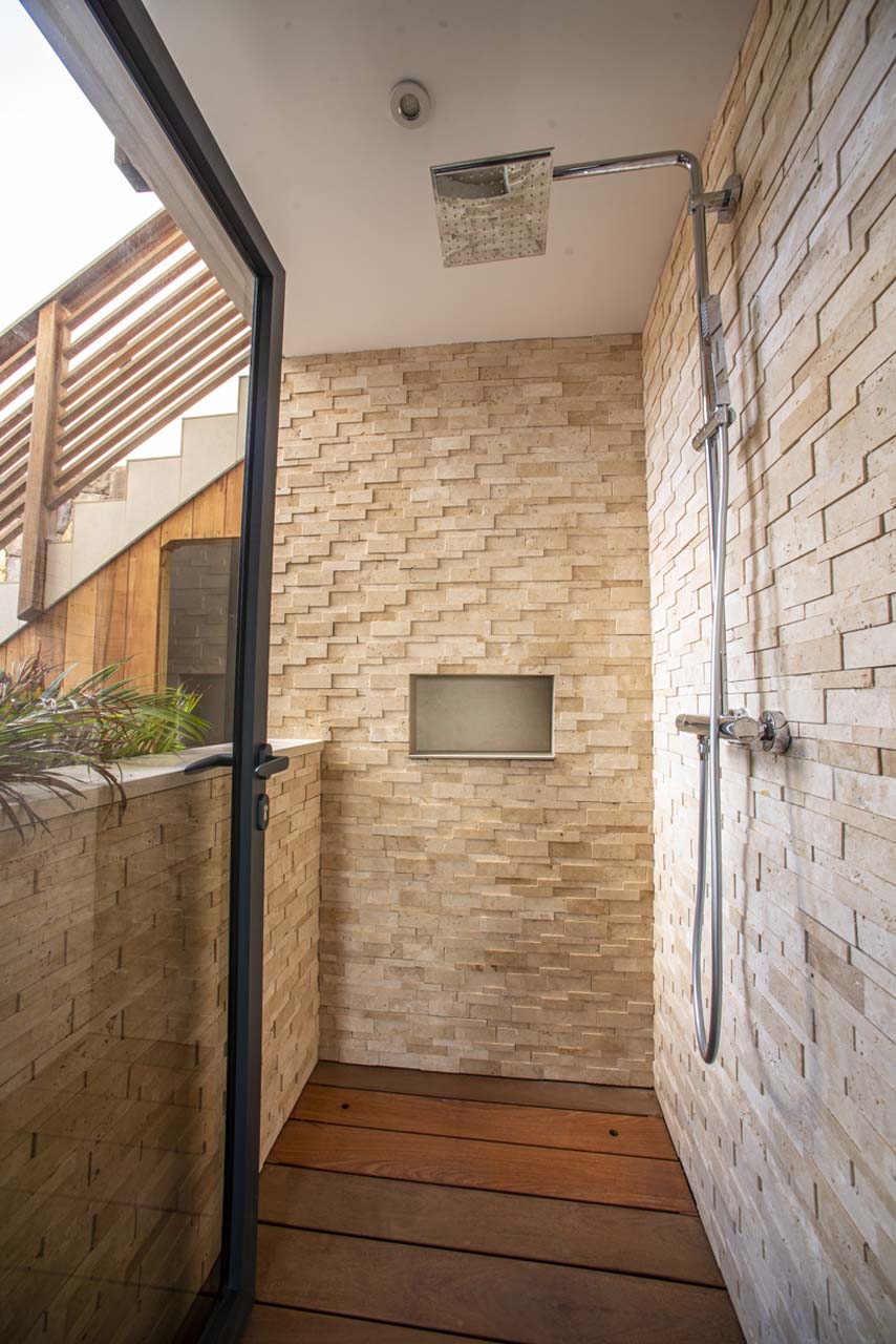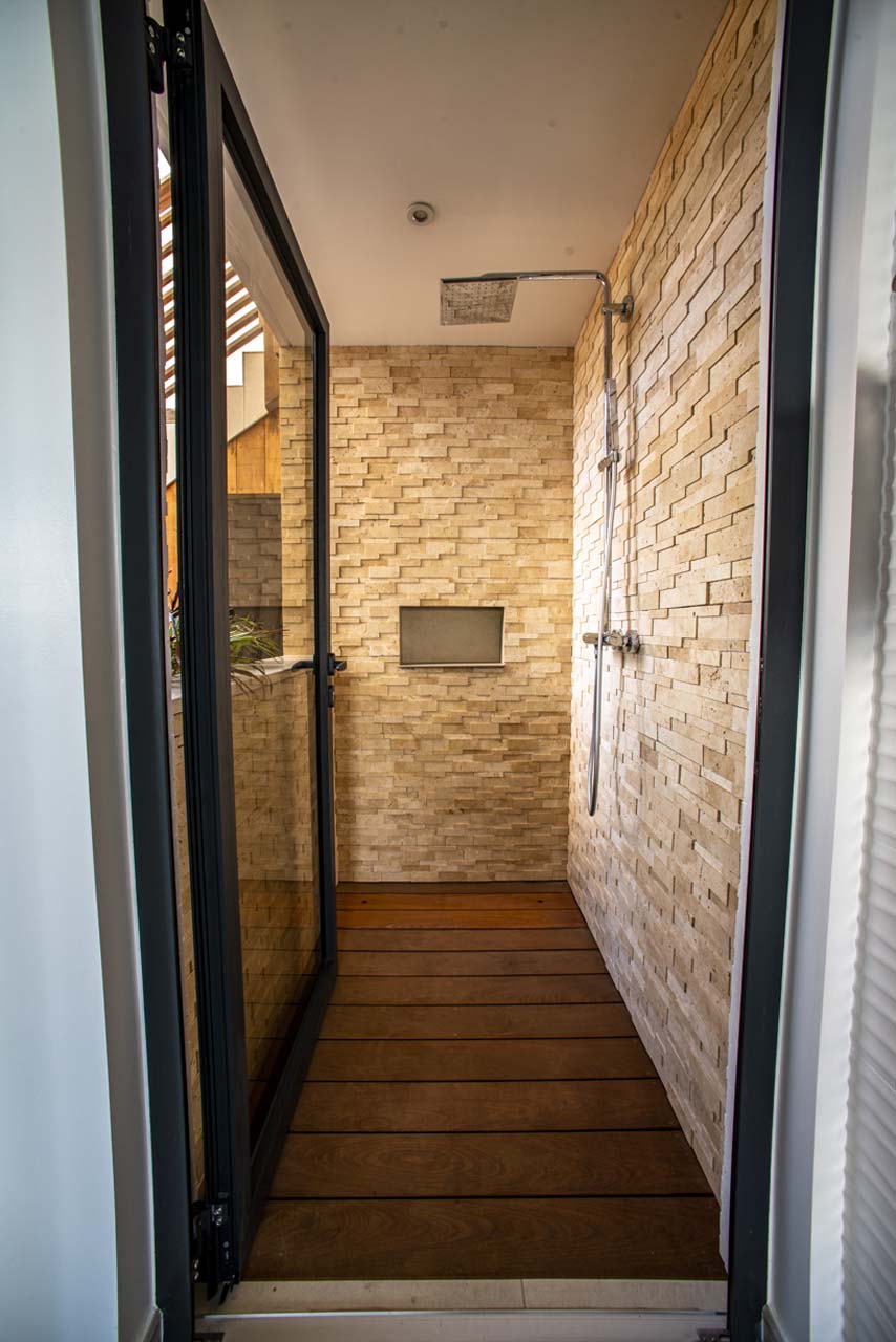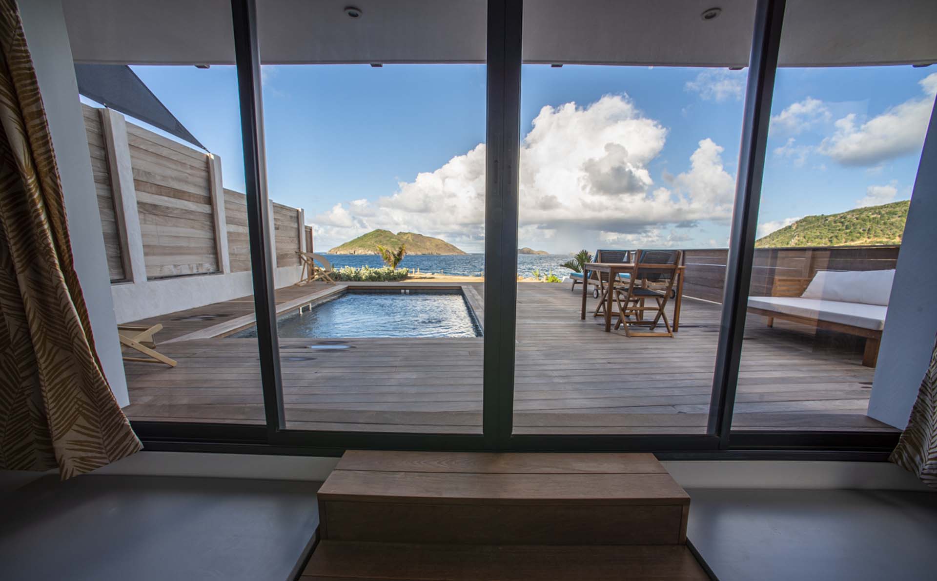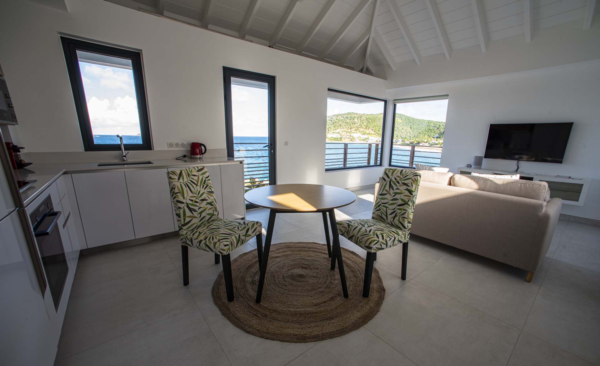 On The Rock est construite sur 2 niveaux, avec la cuisine et le salon situés à l’étage pour vous offrir une vue panoramique sur l’océan. Le rez-de-chaussée abrite la chambre principale avec sa salle de bain attenante, ainsi qu’une douche extérieure pour vous permettre de profiter pleinement du cadre naturel. Depuis la chambre, vous pourrez admirer la vue magnifique sur l’océan.