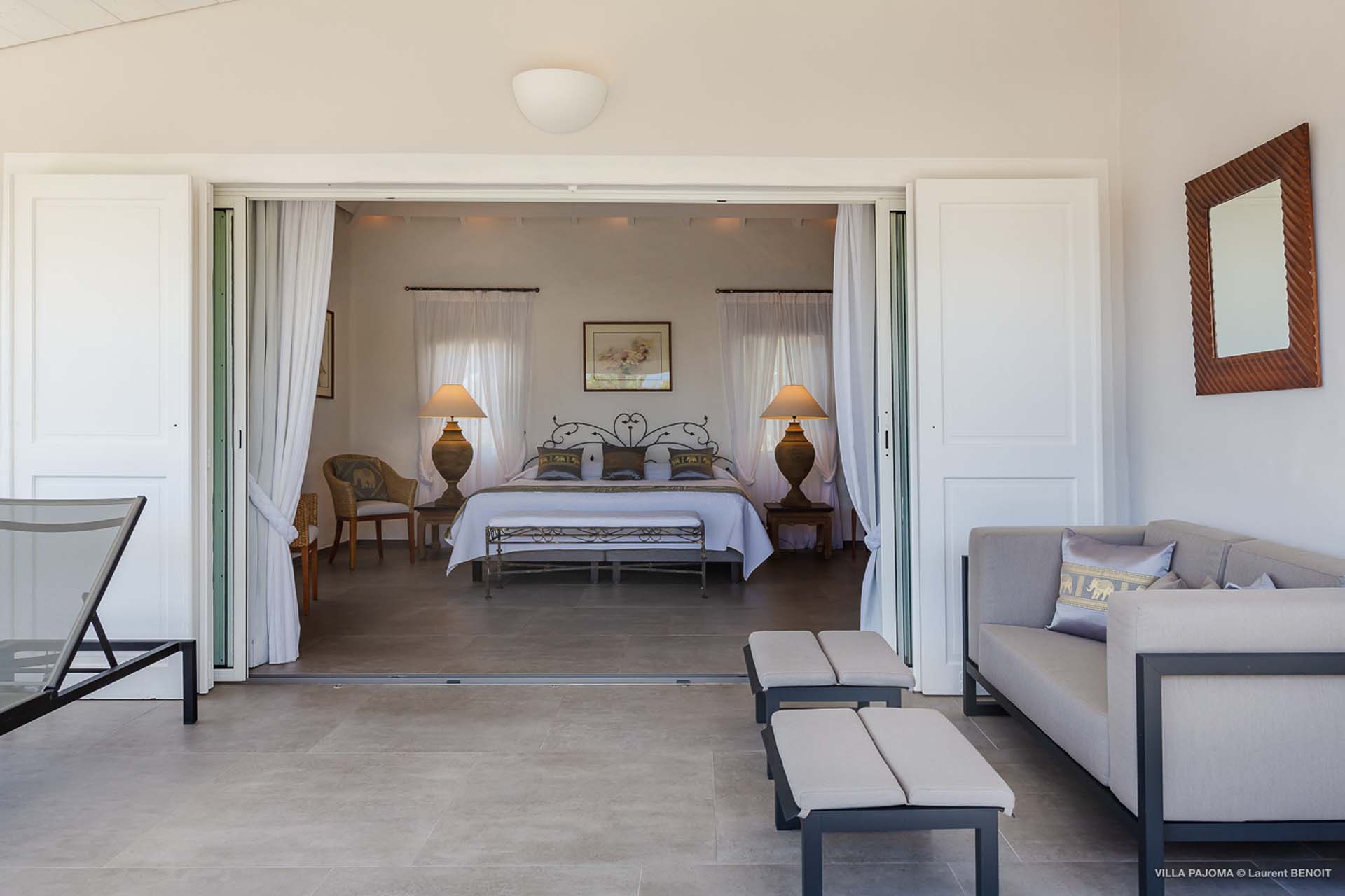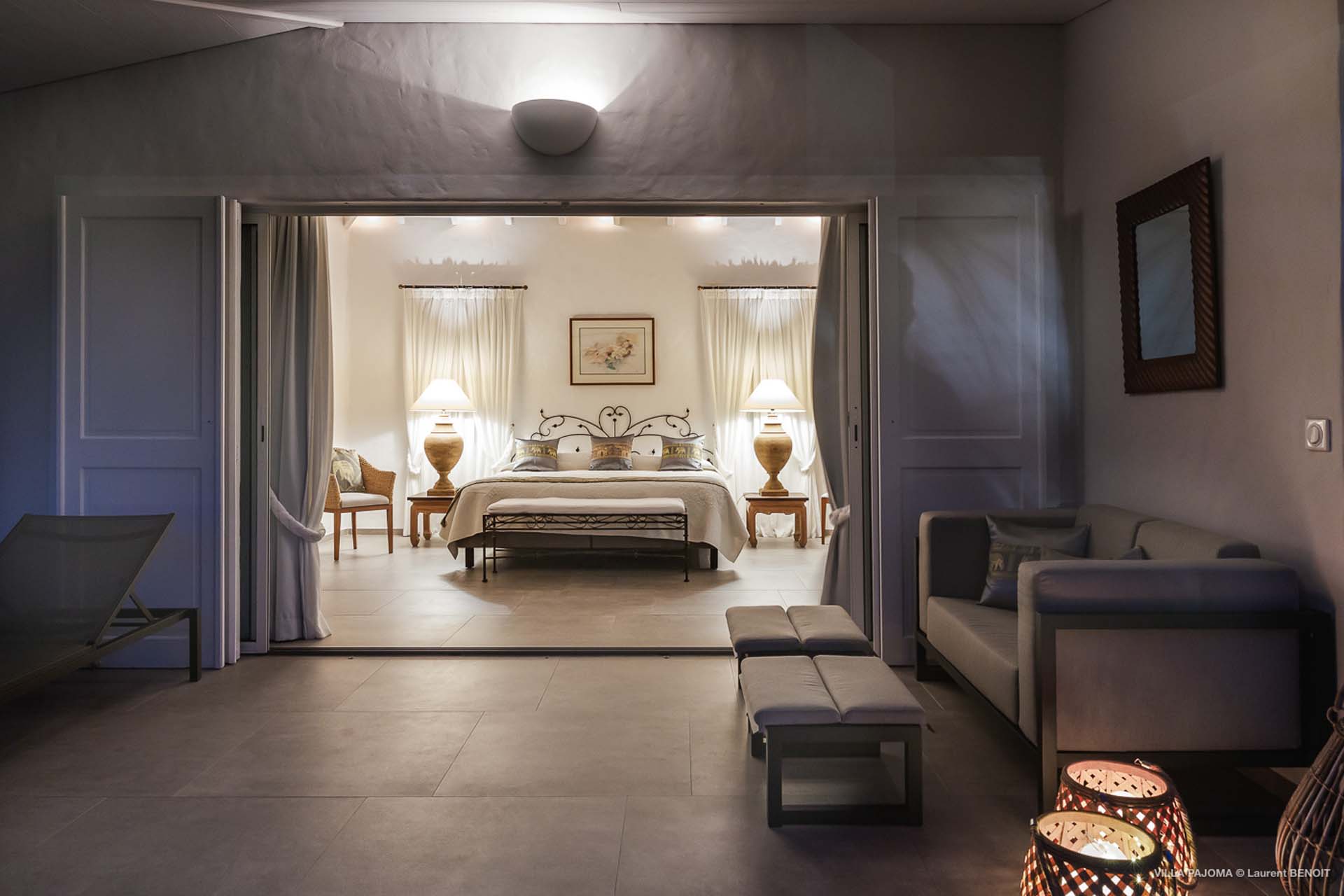 The third bedroom, in a separated bungalow below the villa has a private terrace.