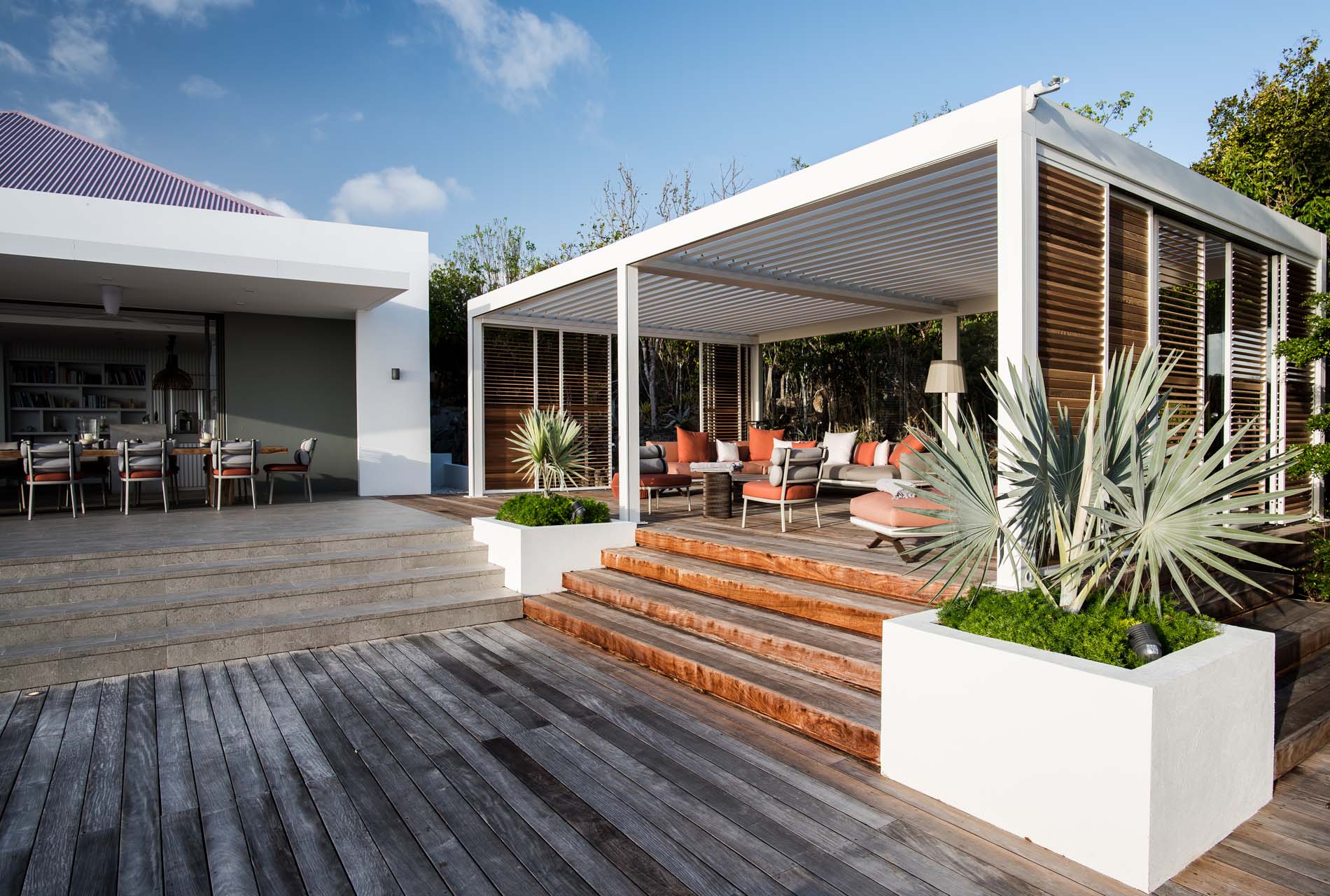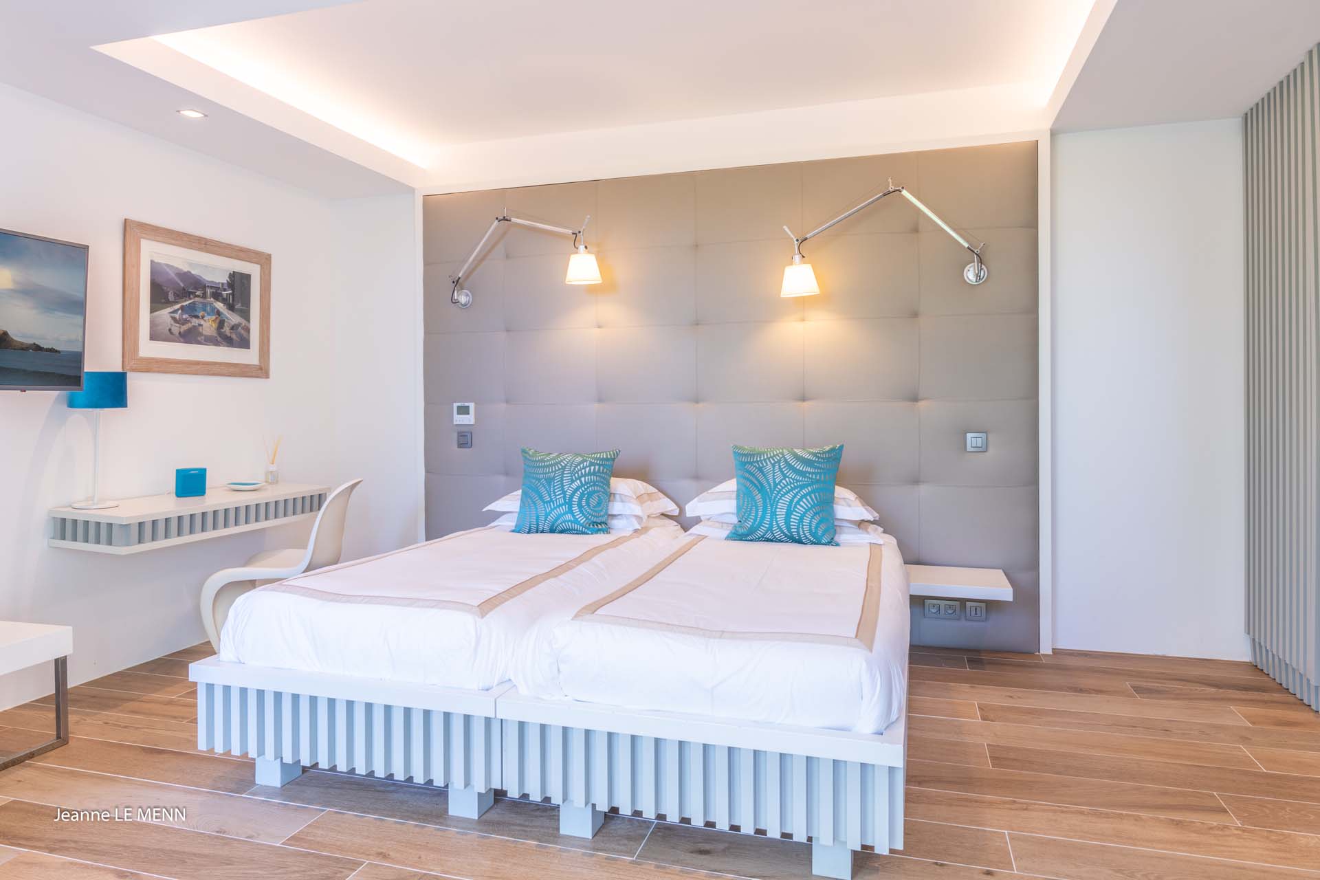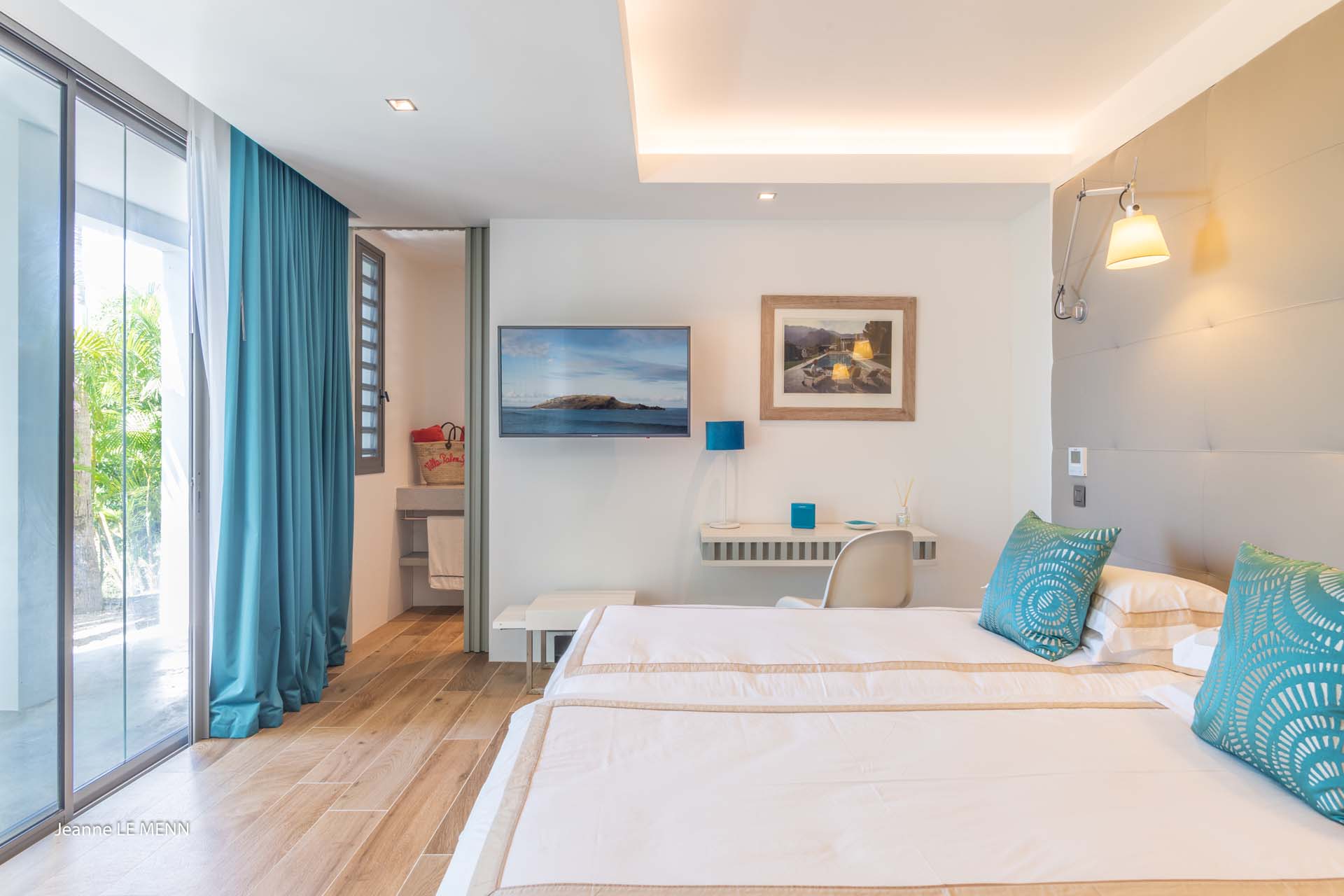 Each of the four bedrooms has the access by the outside. Two of them are on the main level and the other two are below the villa.