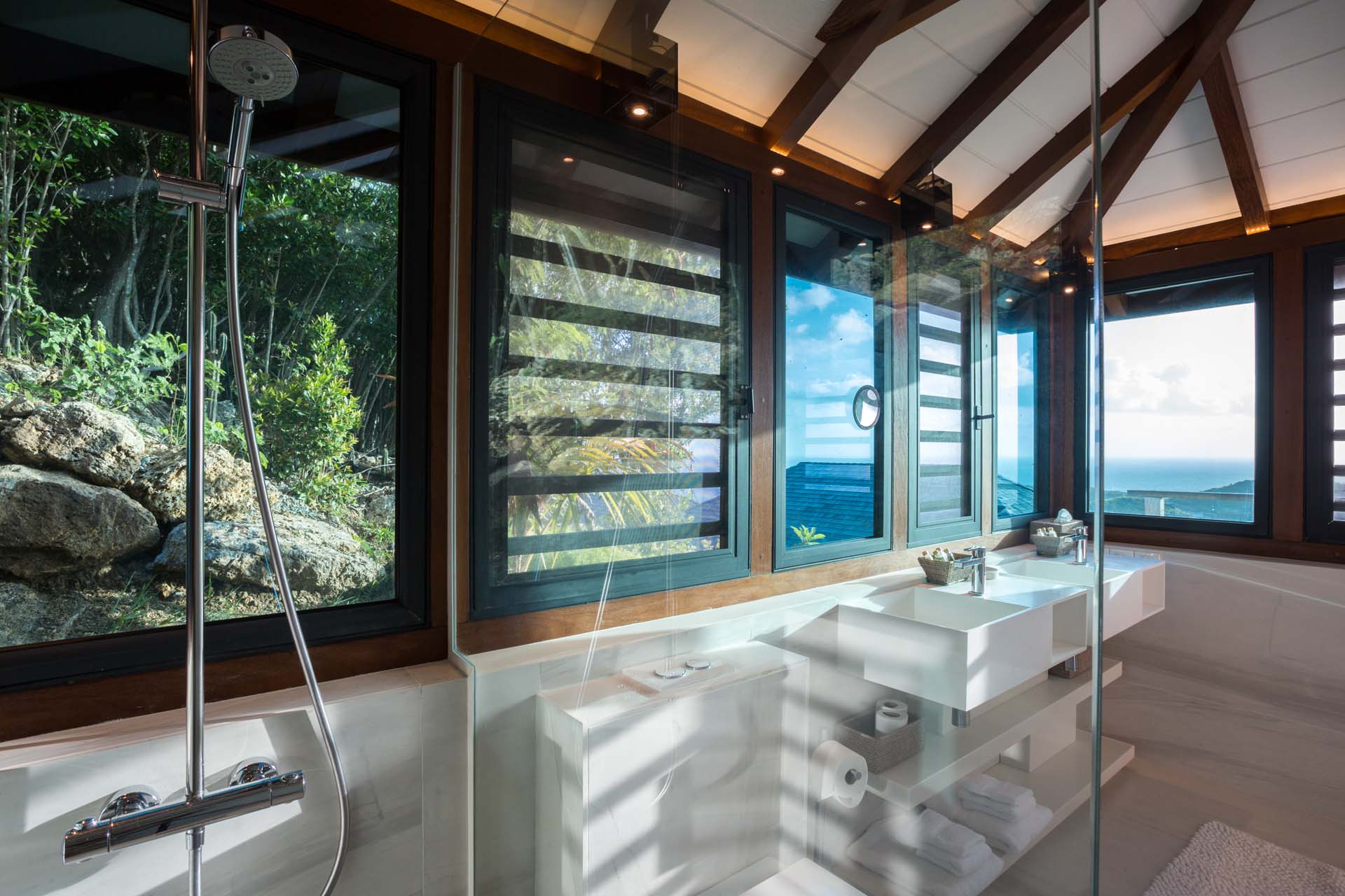 This very nice brand-new villa overlooks the ocean and the Toiny bay.