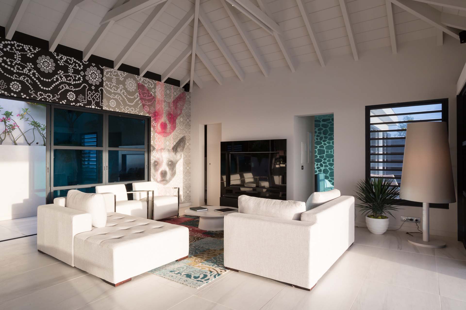 Its name comes from the small rose dog illustrated on the ultra modern decoration of the villa.