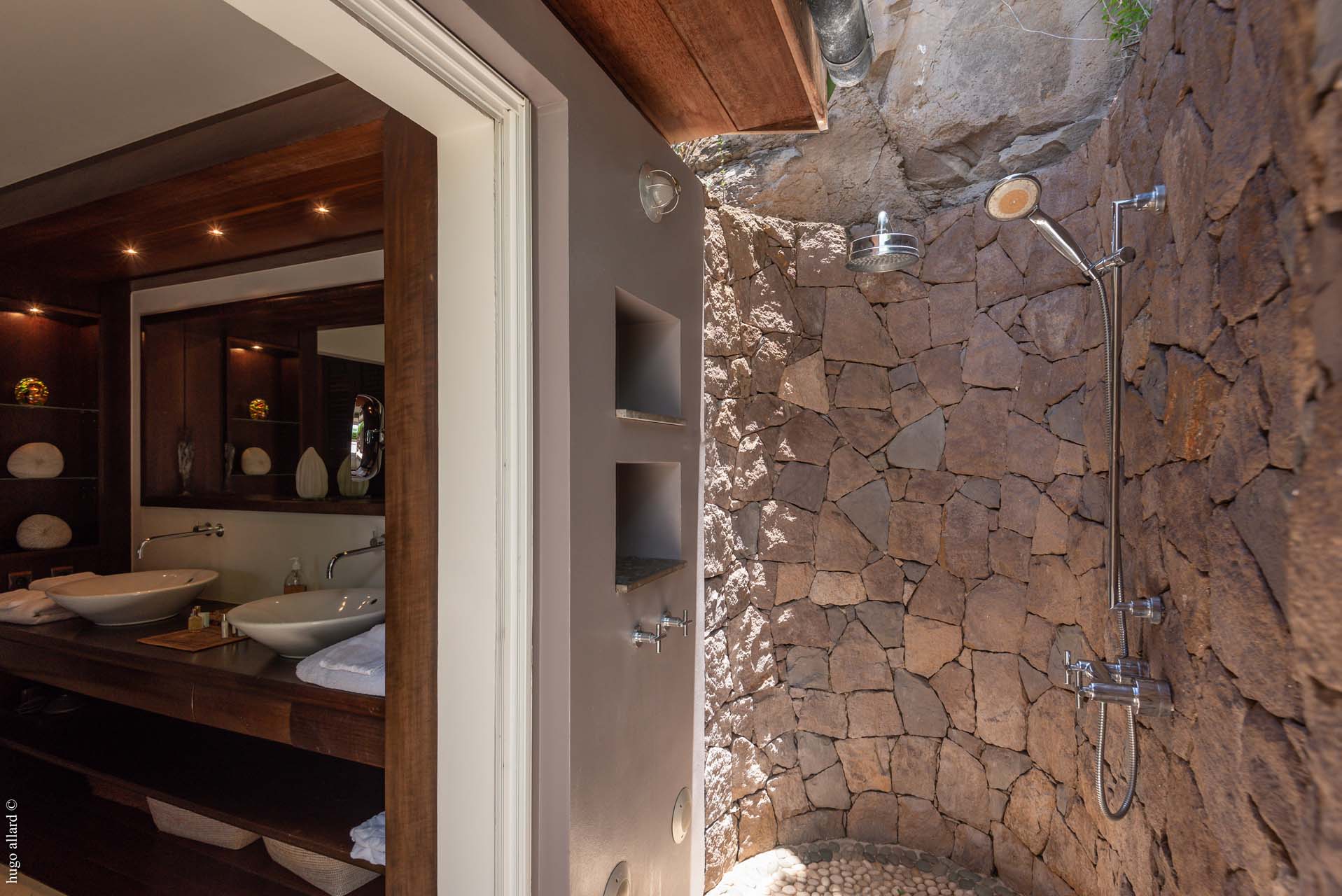 The first bedroom, connected to the living room has got an outside shower for more exotism.
