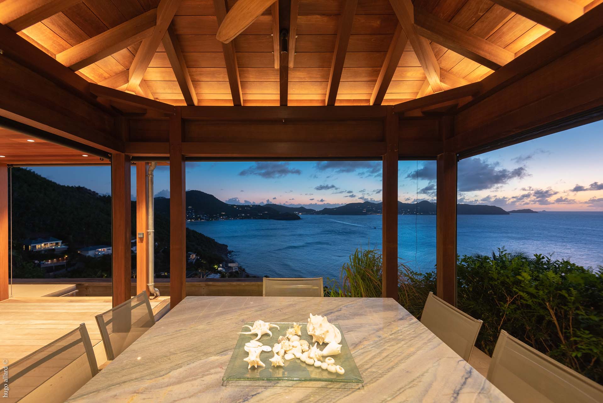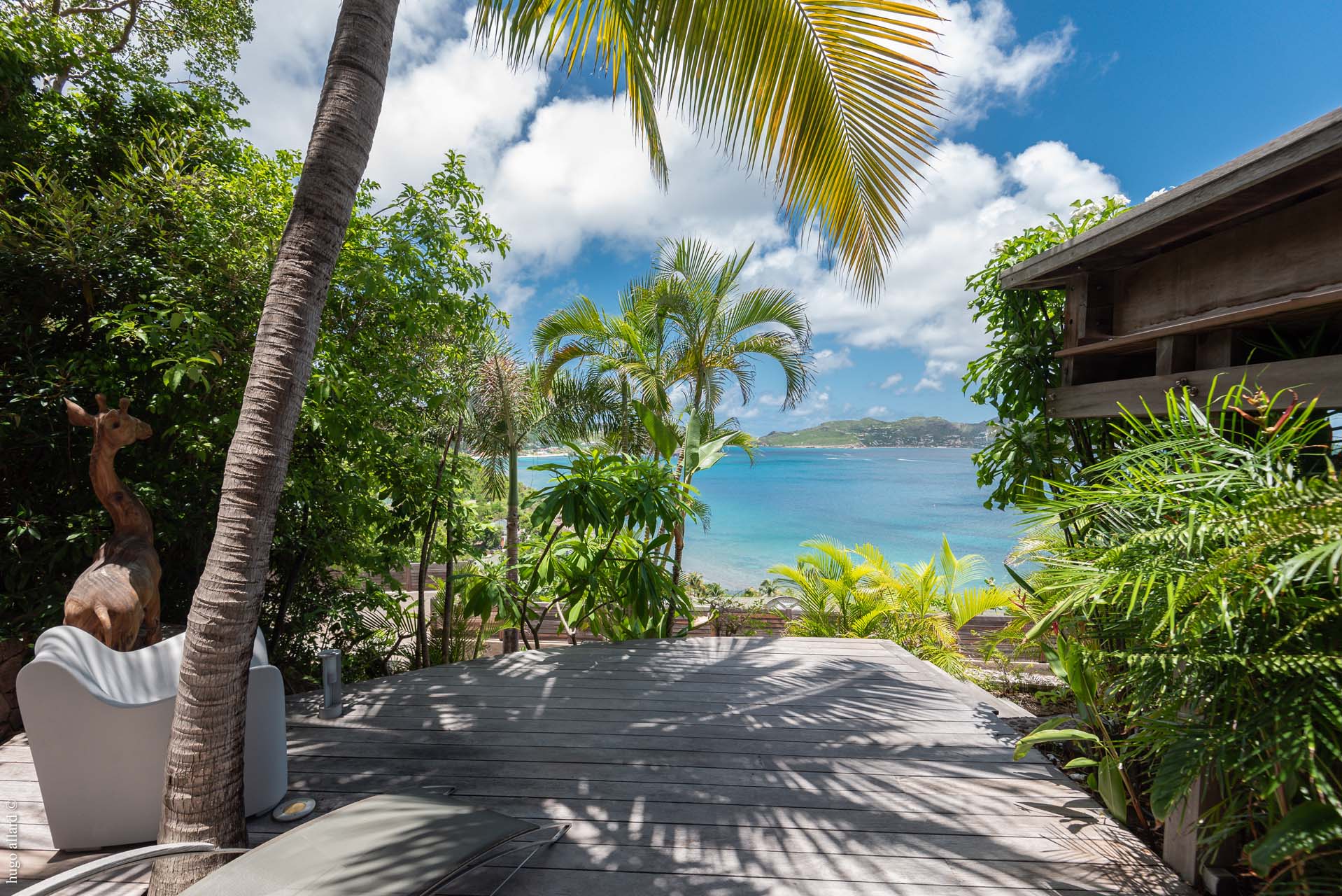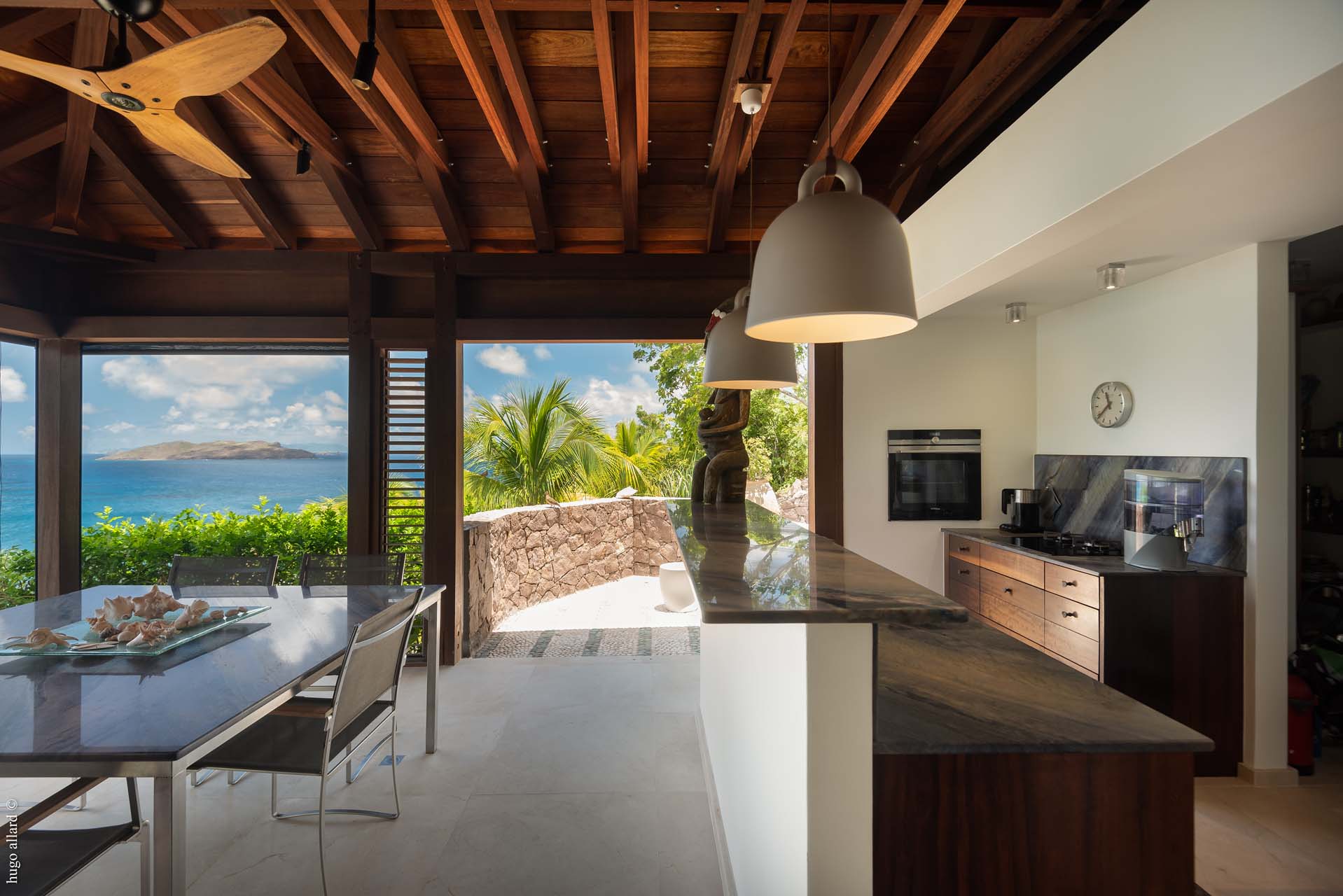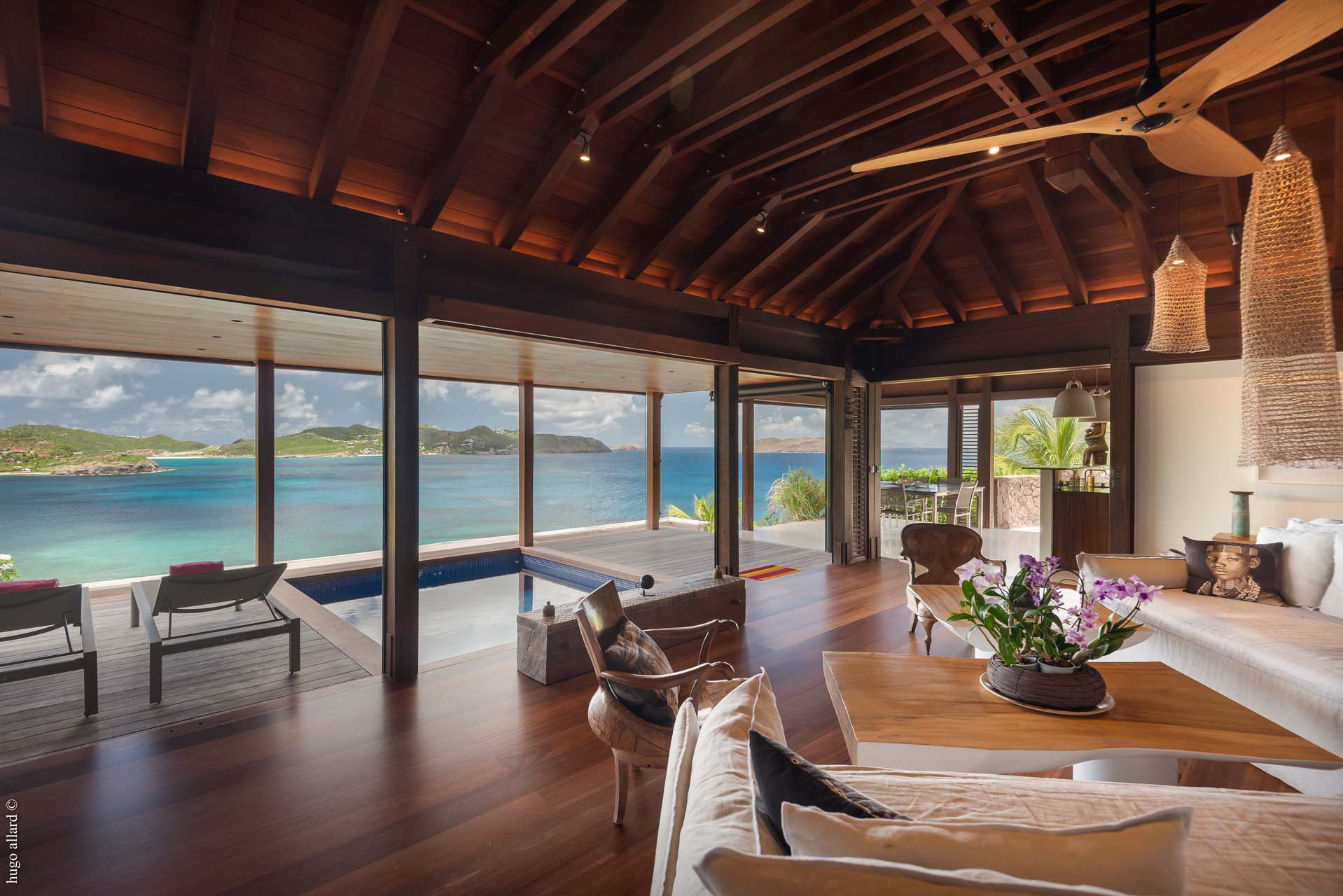 This balinese style villa, made with exotic wood, with the living room open into the view, let you go on the Caribean rhythmic.