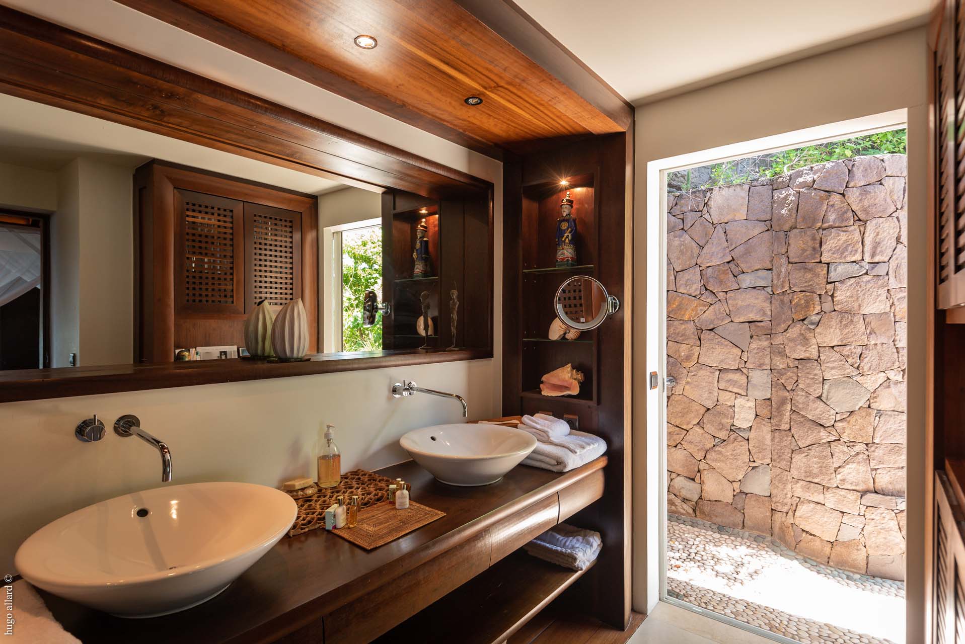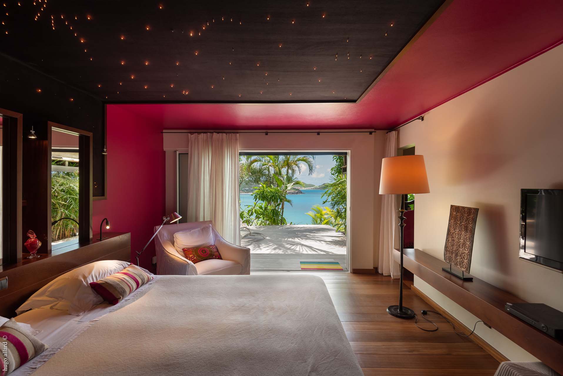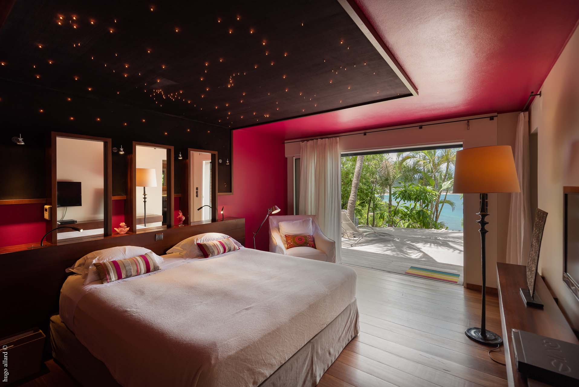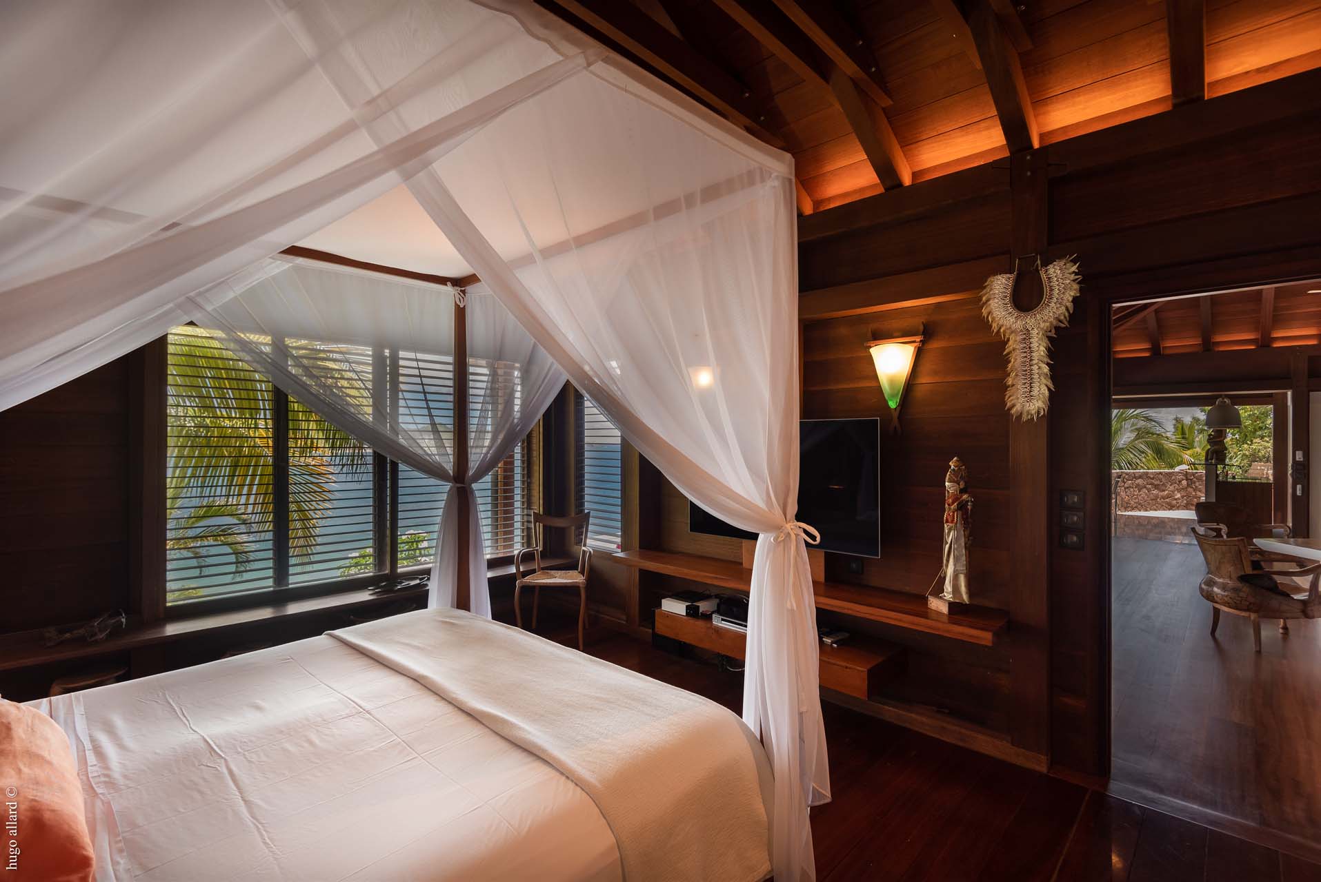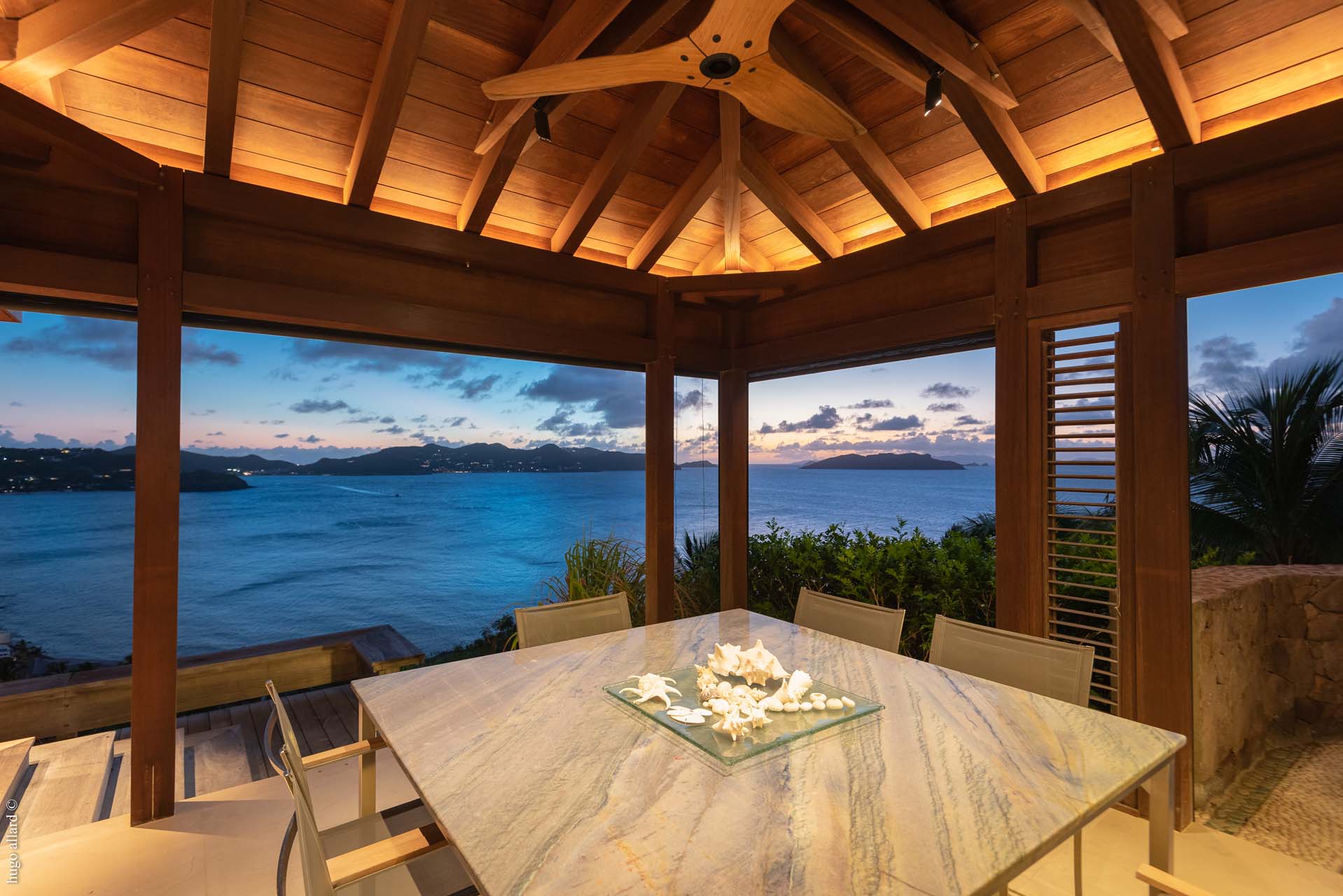 This balinese style villa, made with exotic wood, with the living room open into the view, let you go on the Caribean rhythmic.