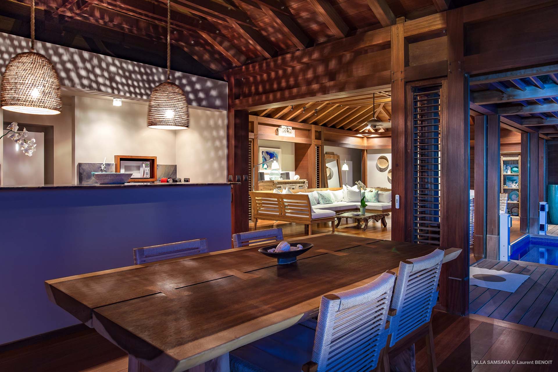 Colonial styled, it offers a spectacular view on the ocean and the sunset with its wide open lounge and the infinity swimming pool.