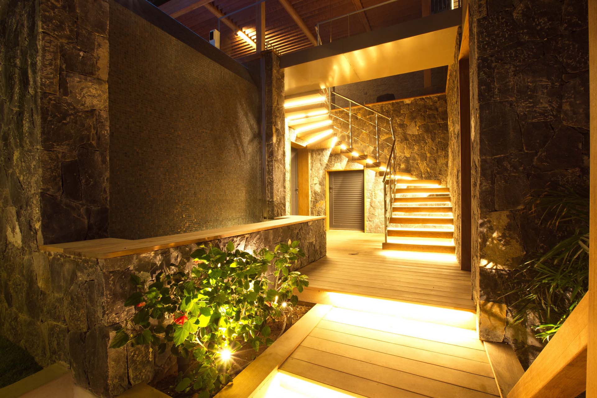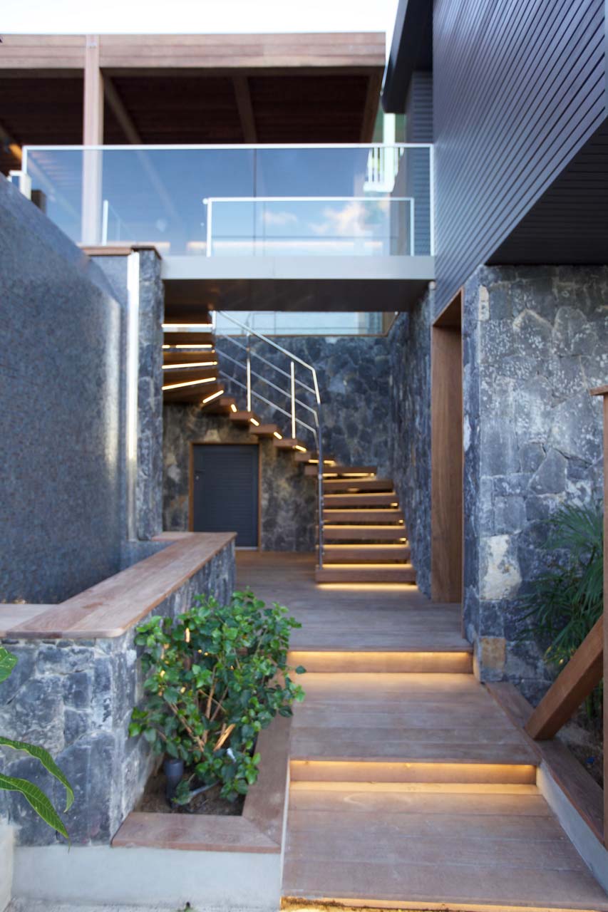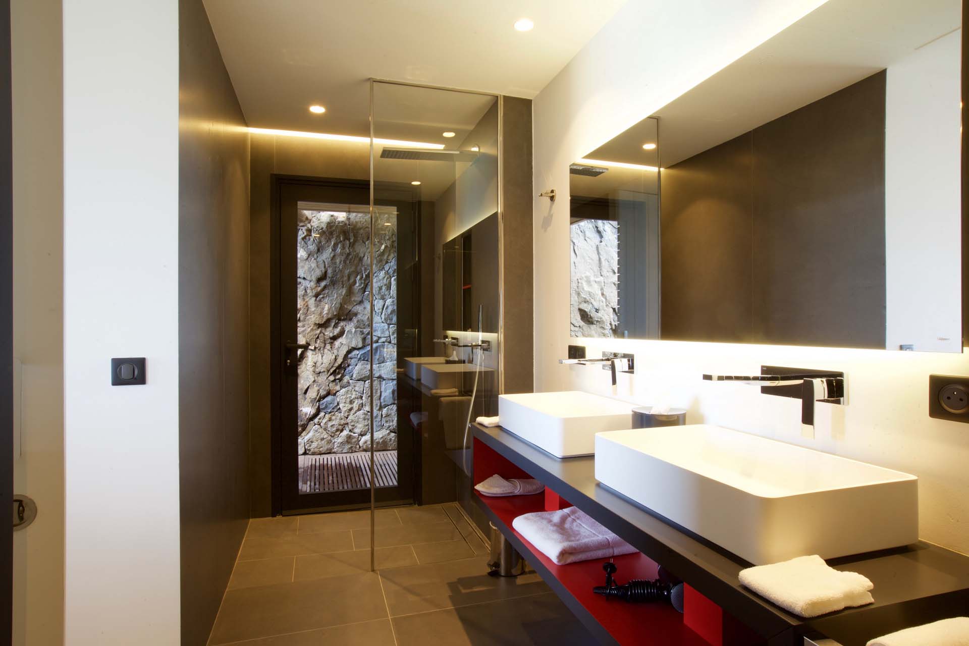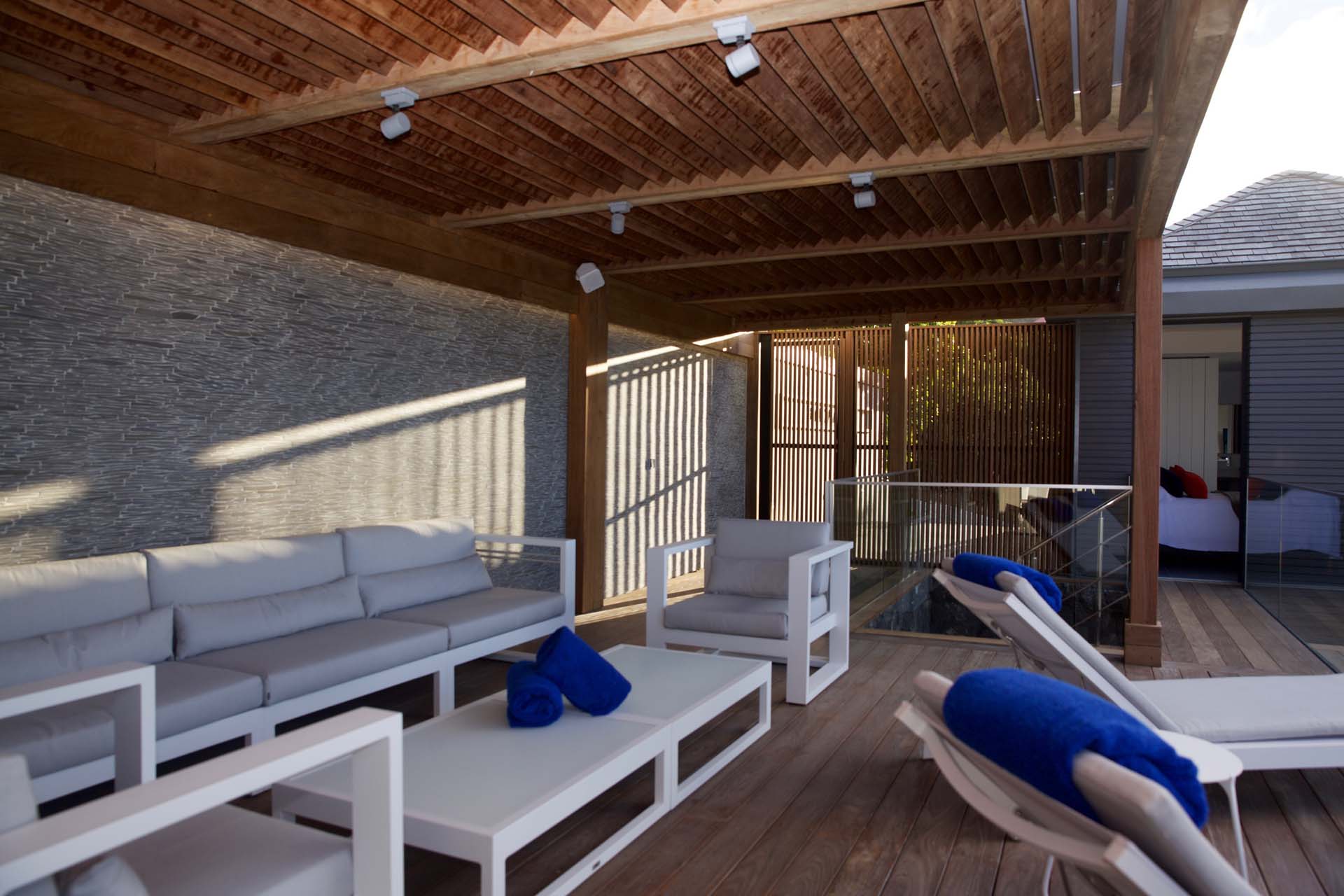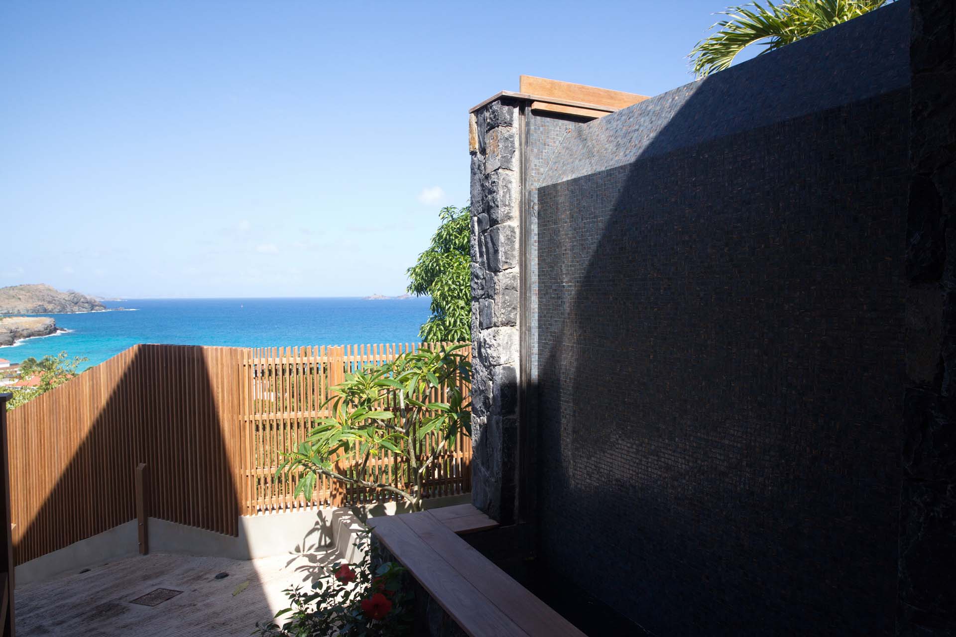 La chambre principale est connectée au salon. Elle offre en plus de sa salle de bain privée, une douche extérieure. La deuxième chambre se trouve à l’extrémité du Deck et de la piscine. Elle a aussi une très belle vue sur l’océan. La troisième chambre se trouve un niveau plus bas.