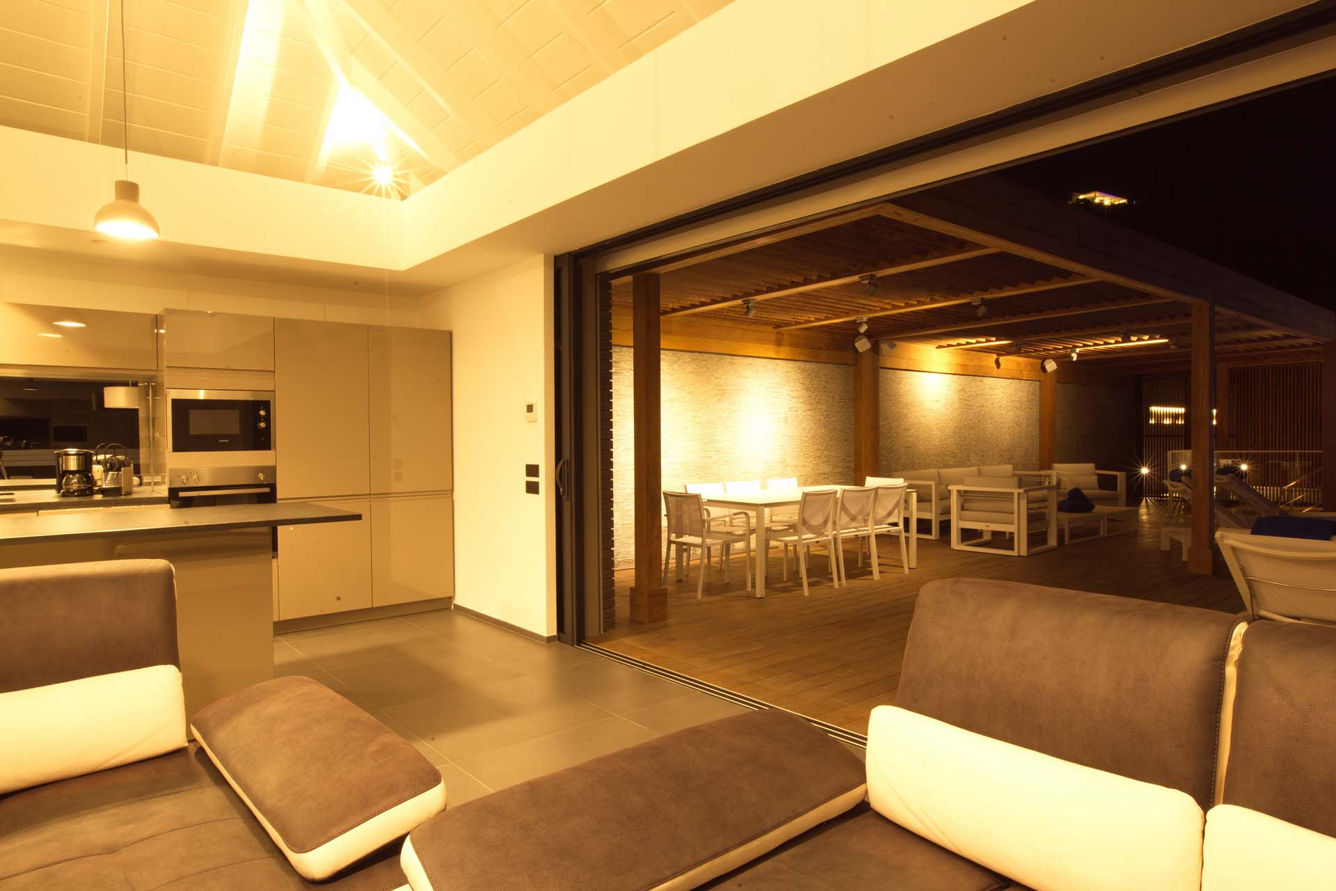 La piscine chauffée, un Deck et une terrasse couverte relient le salon à la deuxième chambre.