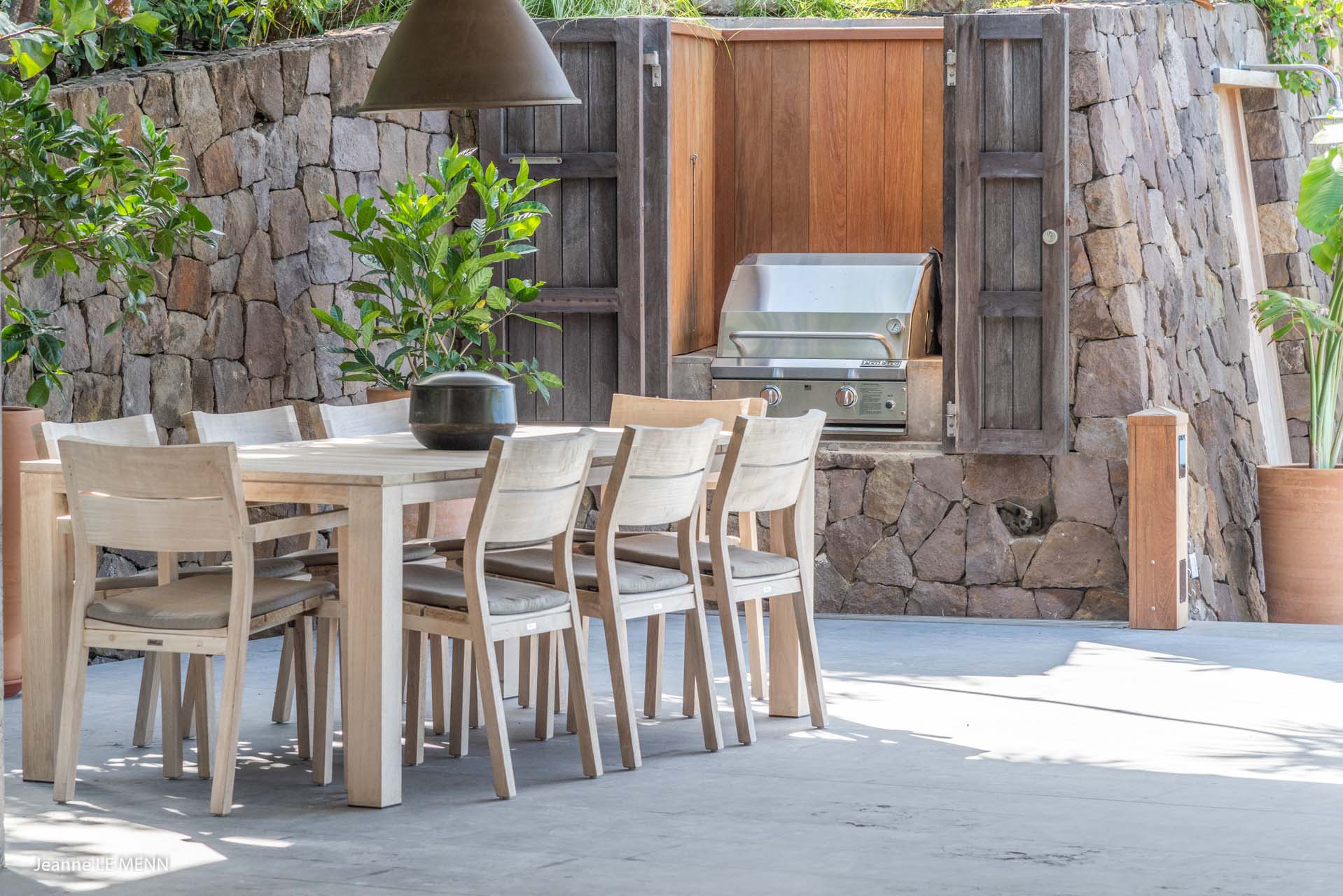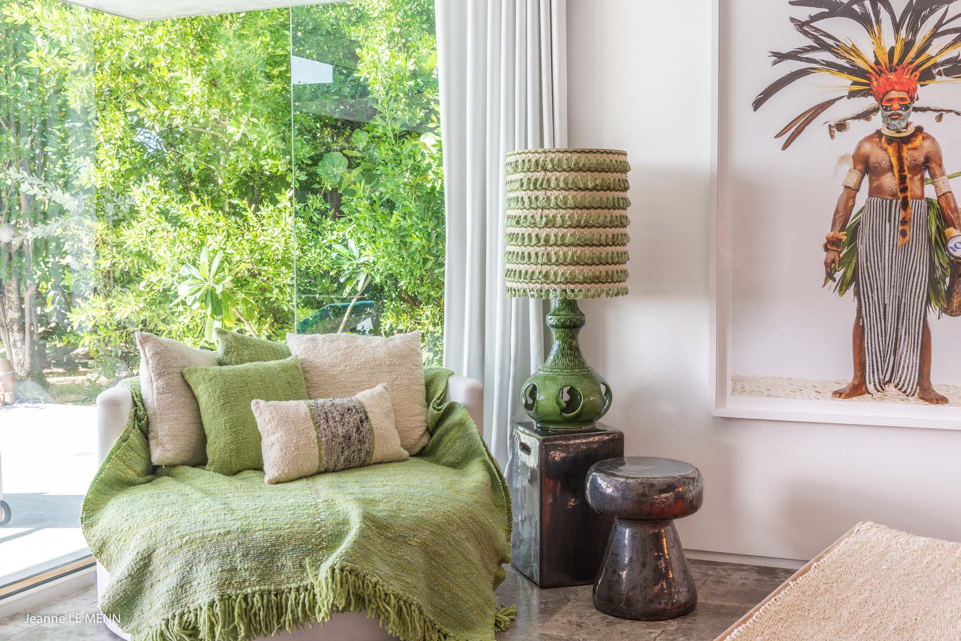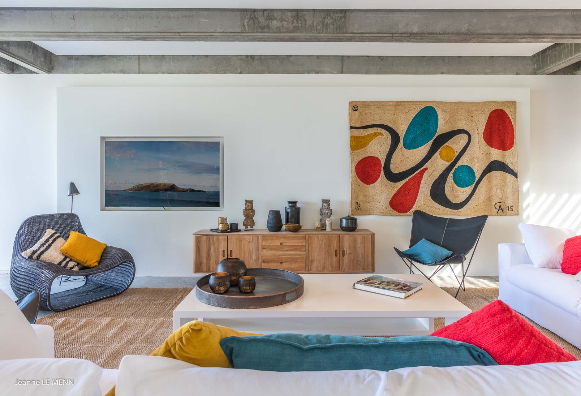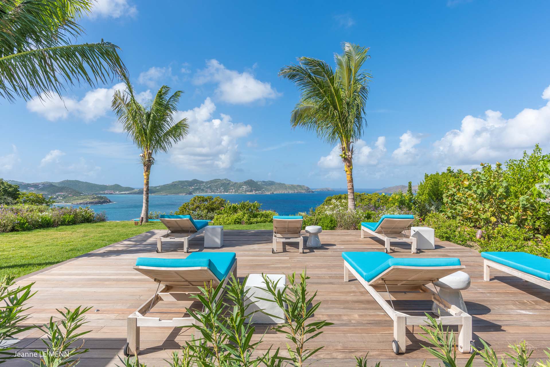 Le grand salon avec cuisine américaine s’ouvre sur l’extérieur, où l’on trouve des espaces lounge spacieux et une magnifique piscine à débordement.