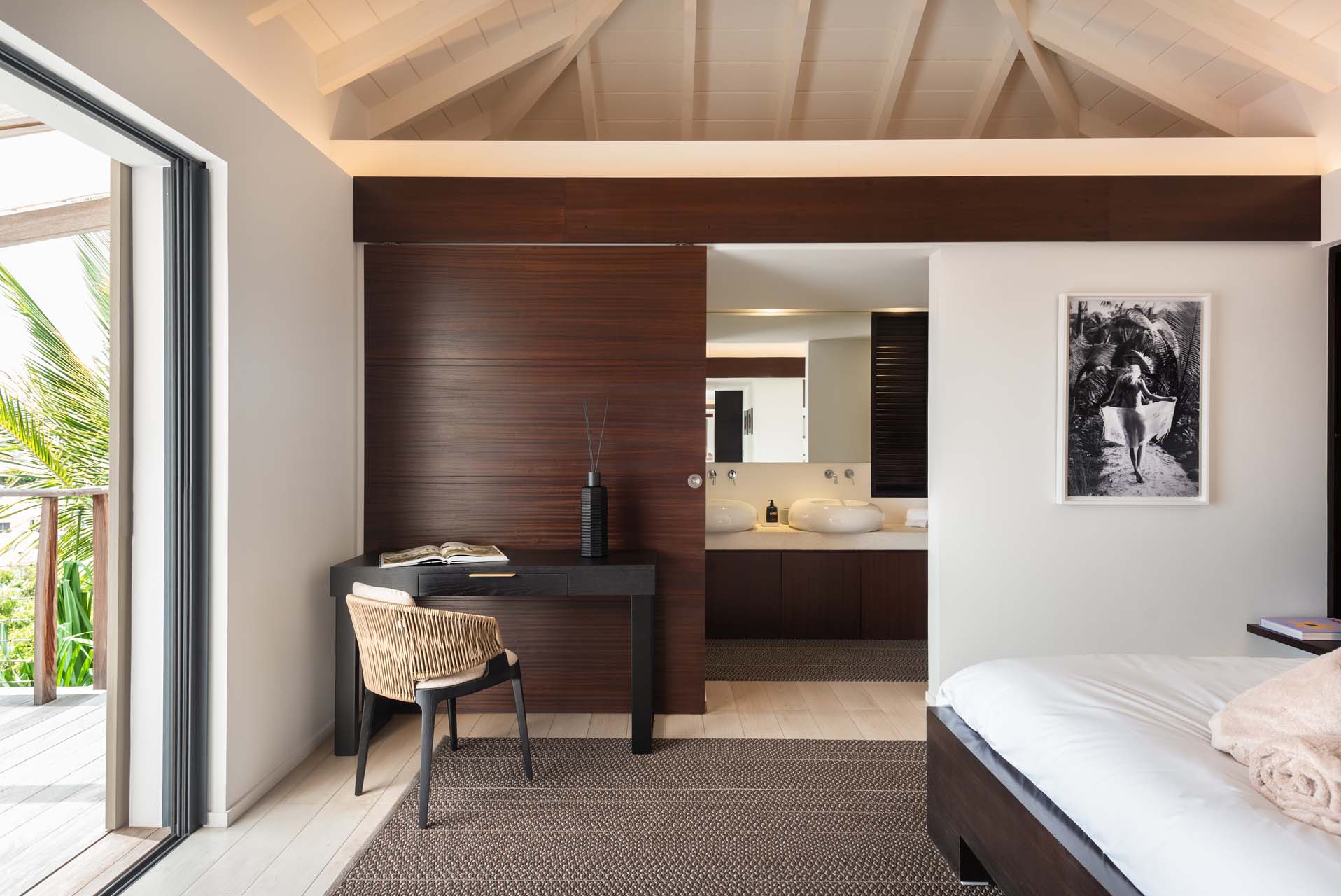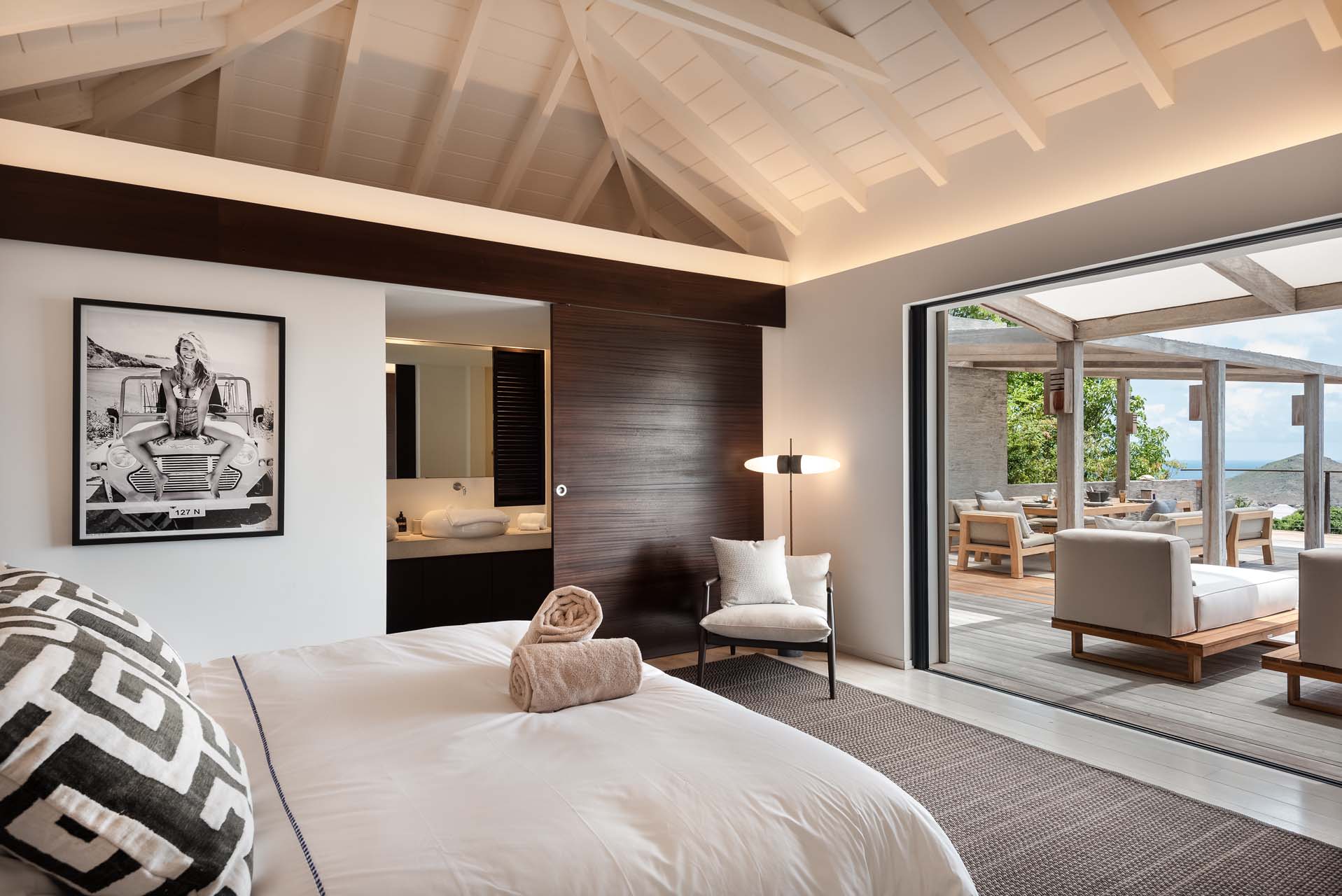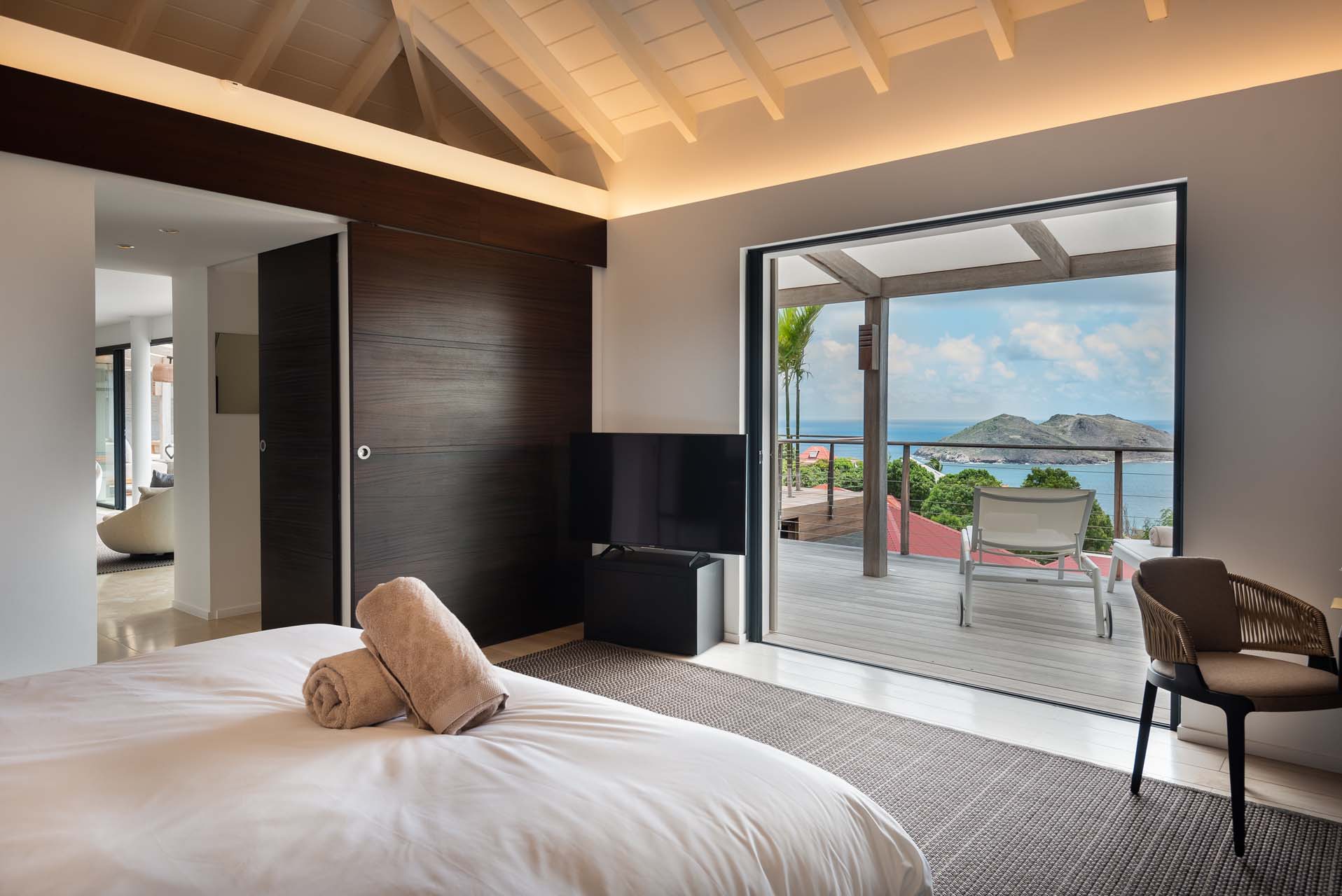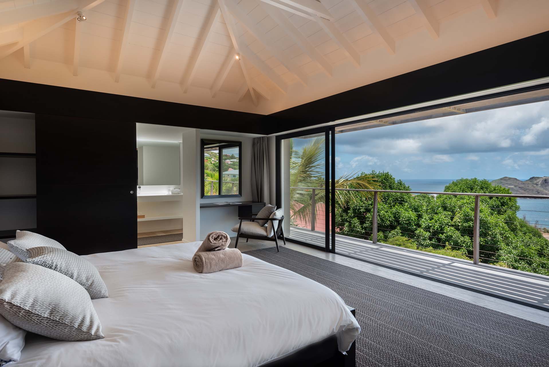Deux chambres se situent de chaque côté du salon, tandis que la chambre principale donne sur la terrasse.