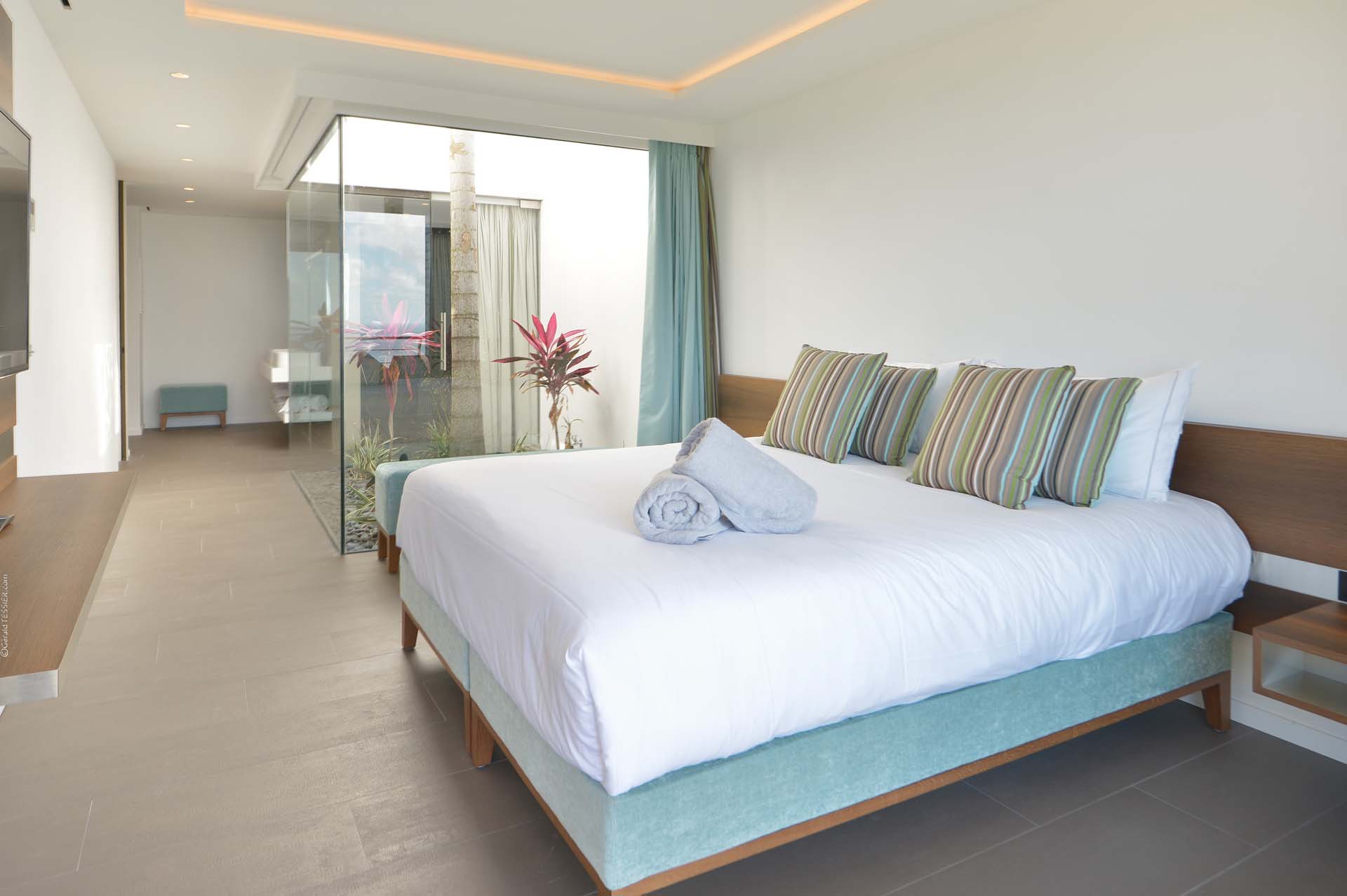 The Source est une villa *récemment construite* qui allie de beaux matériaux naturels comme le bois et la pierre. Cette villa située à *Colombier* est composée de 6 belles chambres offrant une superbe vue sur la baie des Flamands. L’espace extérieur est agréable et privé. La *piscine chauffée* est située sur la terrasse principale et le *grand jacuzzi* sur une terrasse en contrebas de la villa.