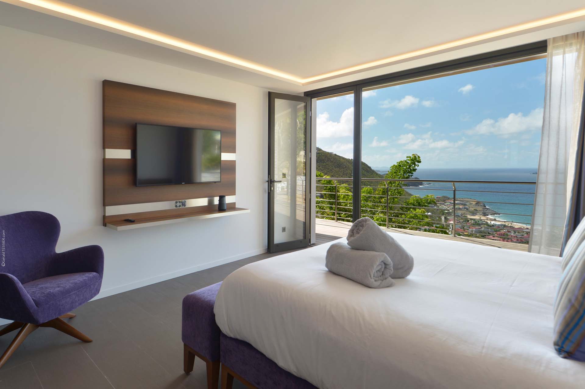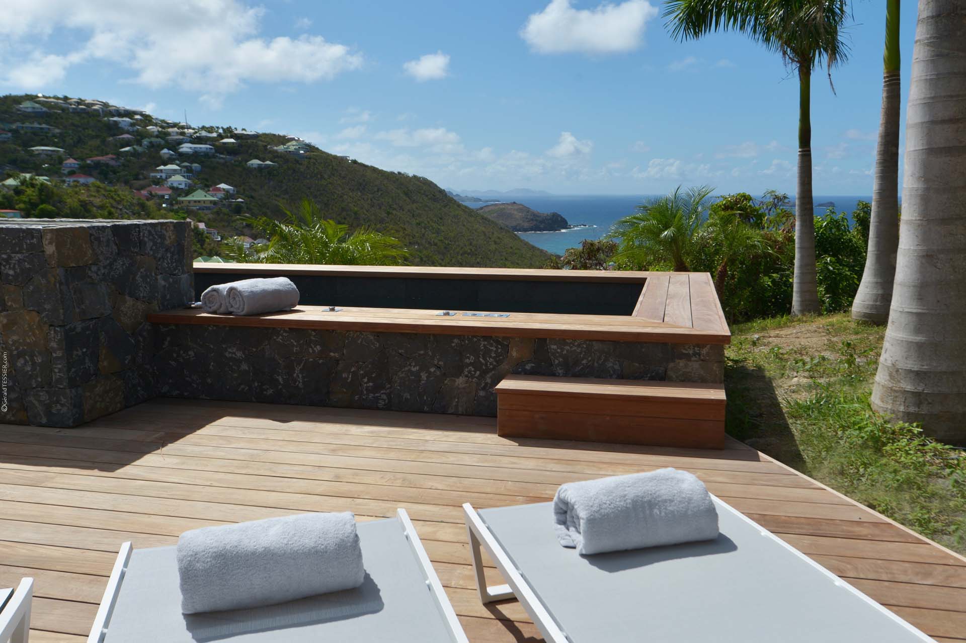The Source est une villa *récemment construite* qui allie de beaux matériaux naturels comme le bois et la pierre. Cette villa située à *Colombier* est composée de 6 belles chambres offrant une superbe vue sur la baie des Flamands. L’espace extérieur est agréable et privé. La *piscine chauffée* est située sur la terrasse principale et le *grand jacuzzi* sur une terrasse en contrebas de la villa.