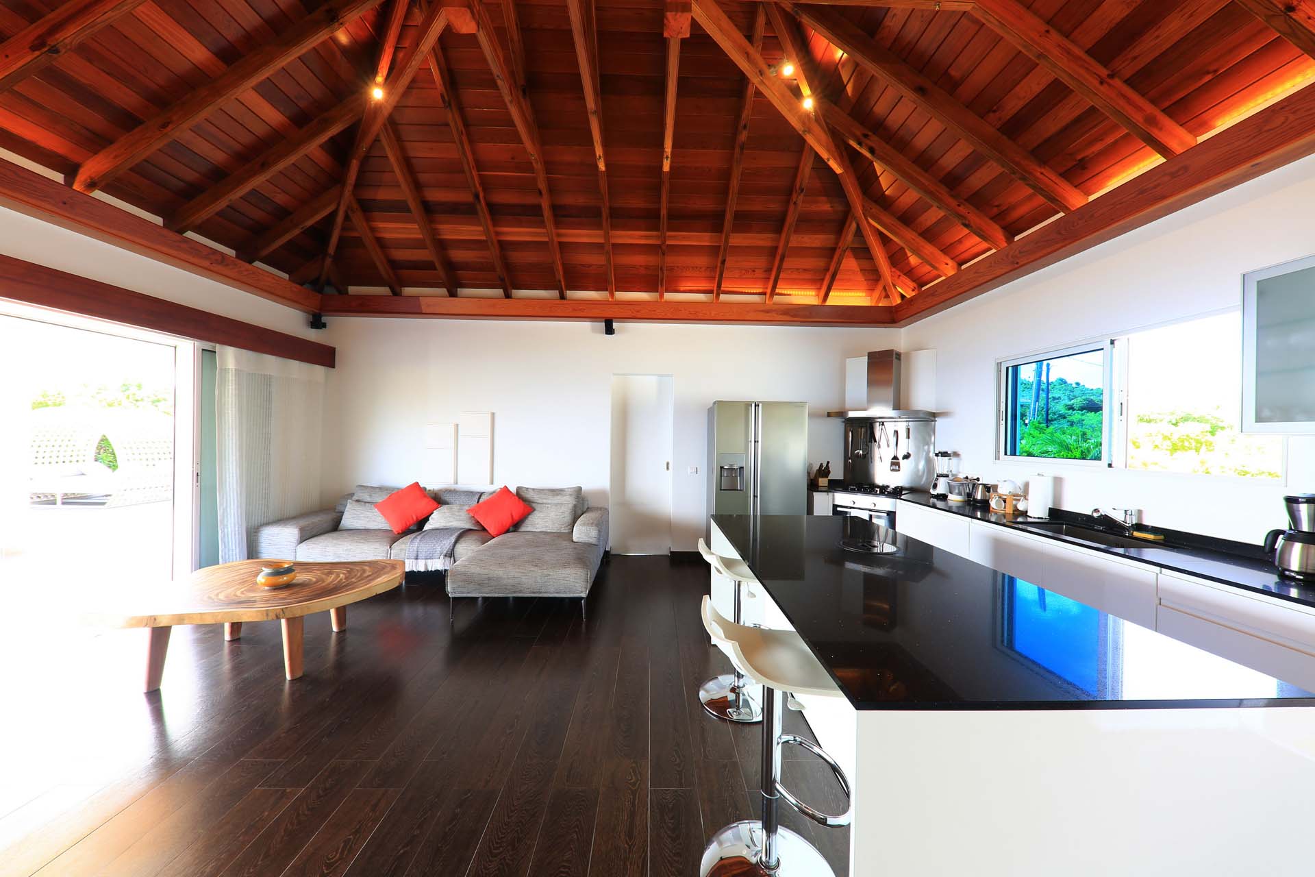 La terrasse et sa piscine permettent pleinement de profiter de la vue et du calme de ce quartier de St Barth.