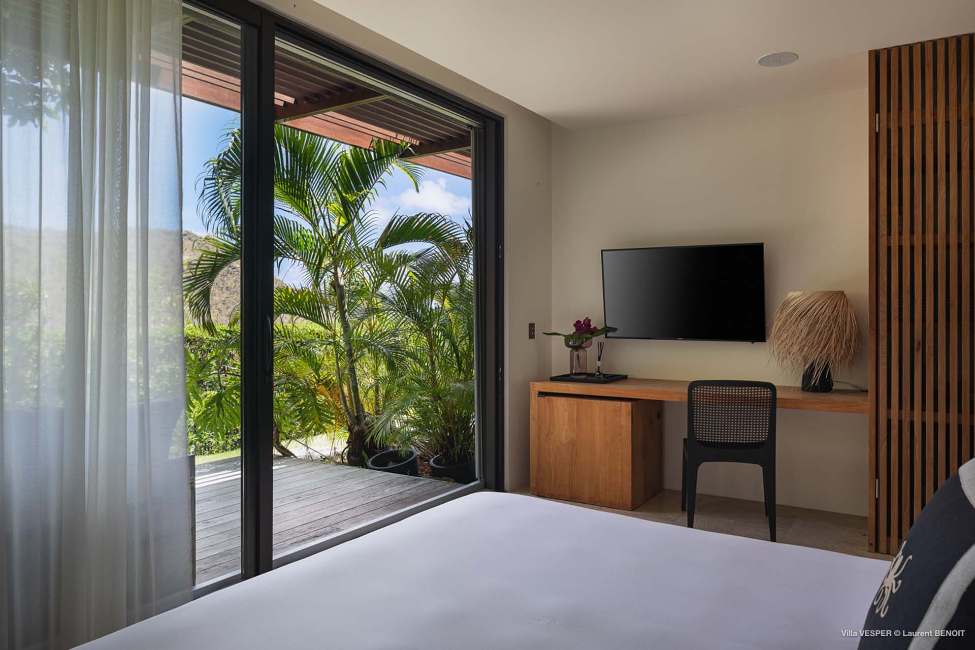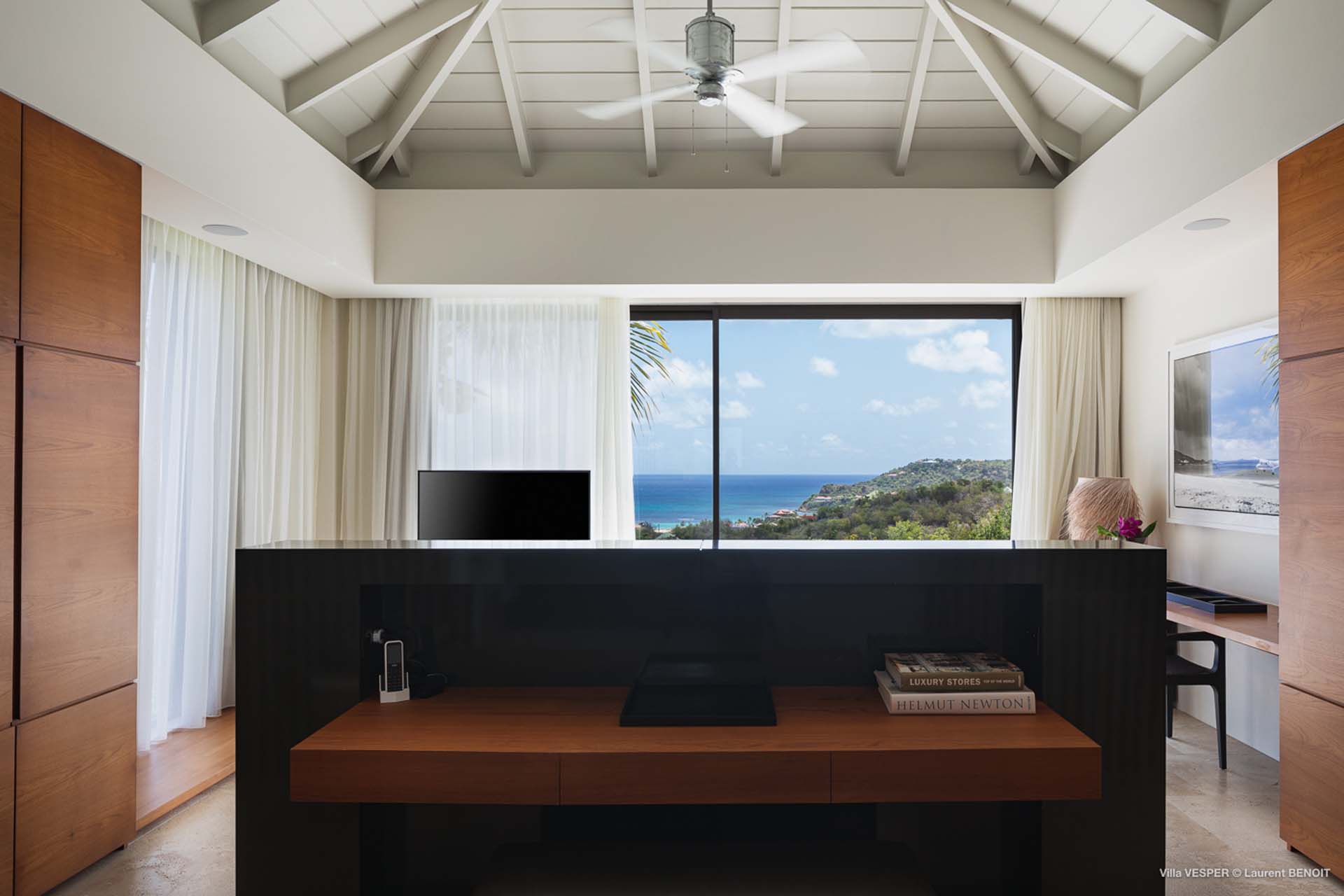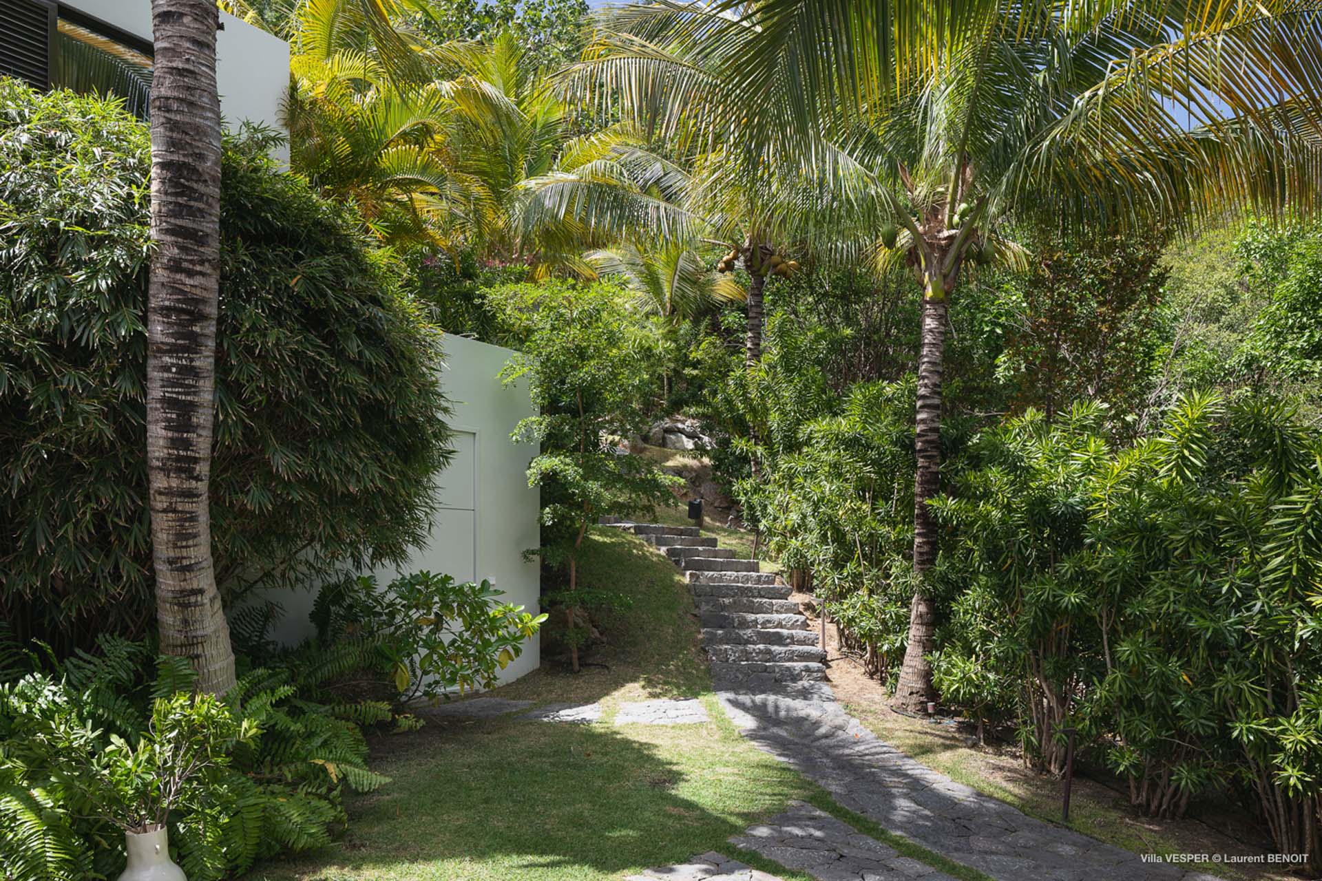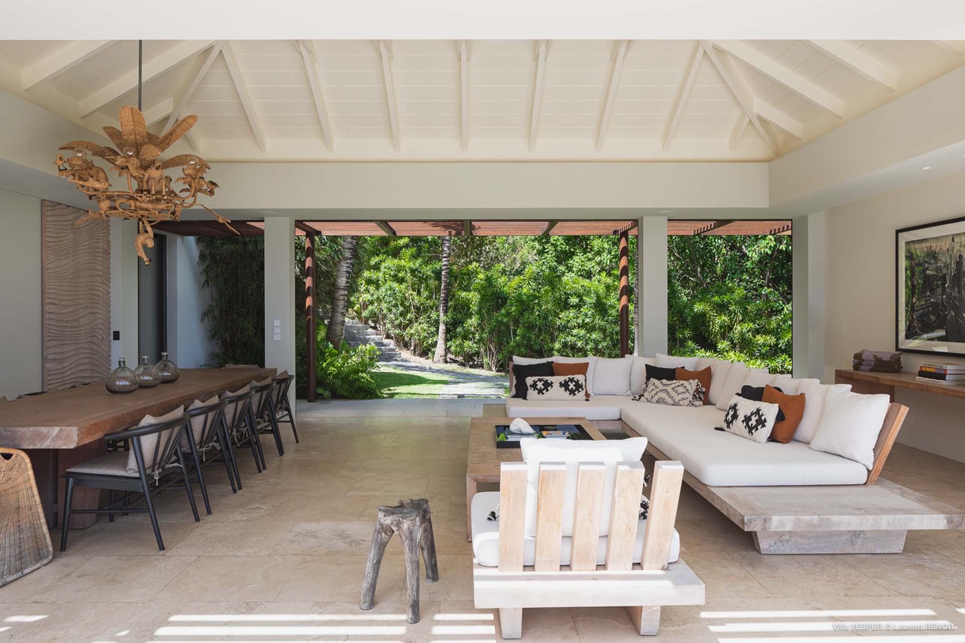 Cette villa très privée offre une vue imprenable sur la baie de Saint Jean et sur l’océan.