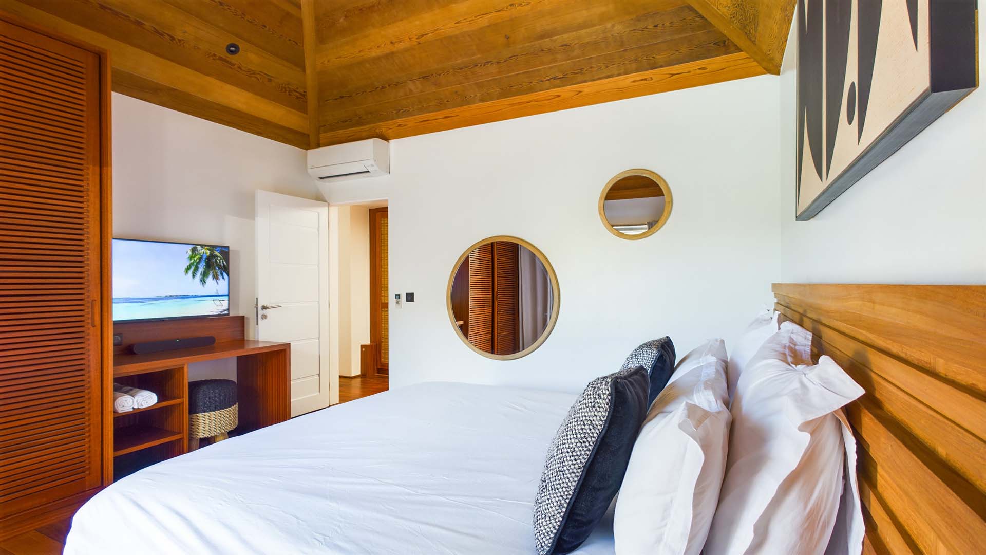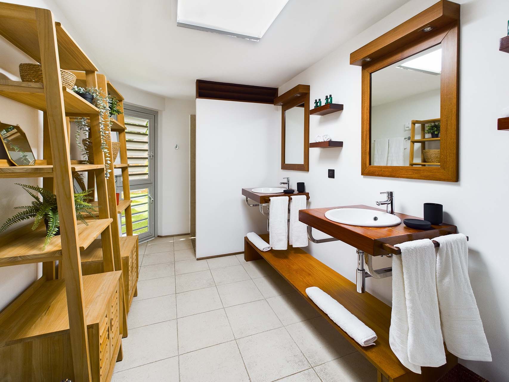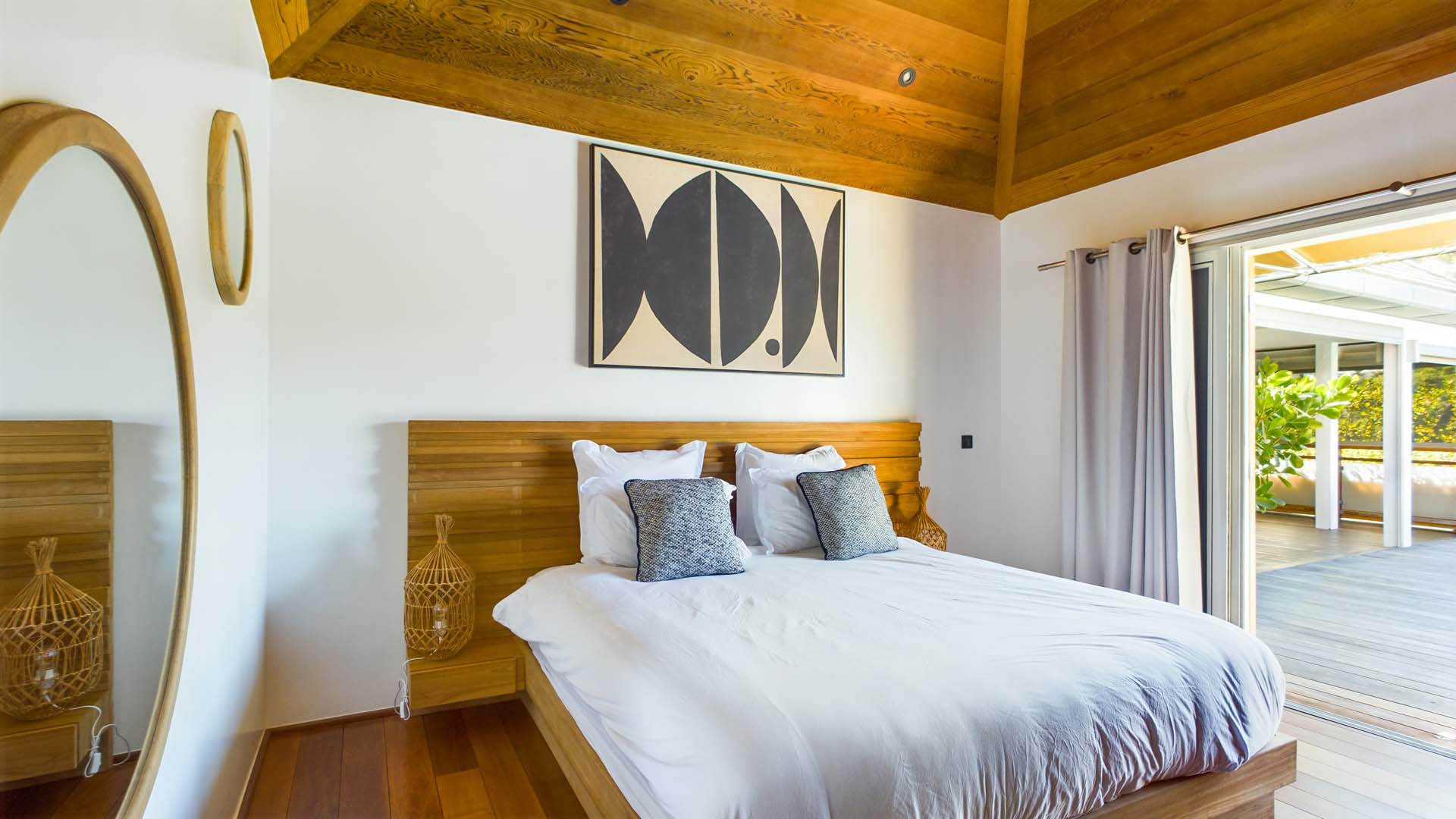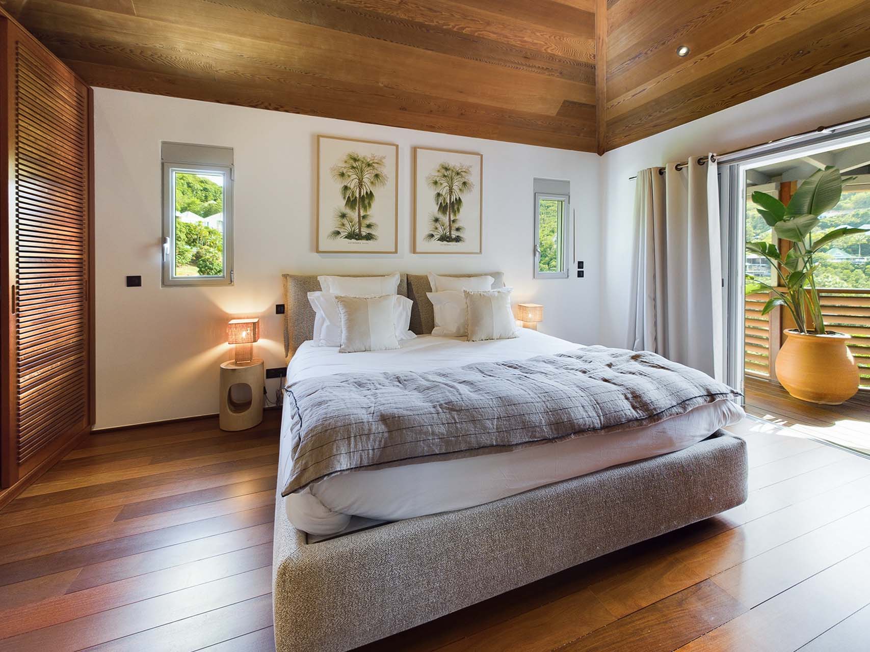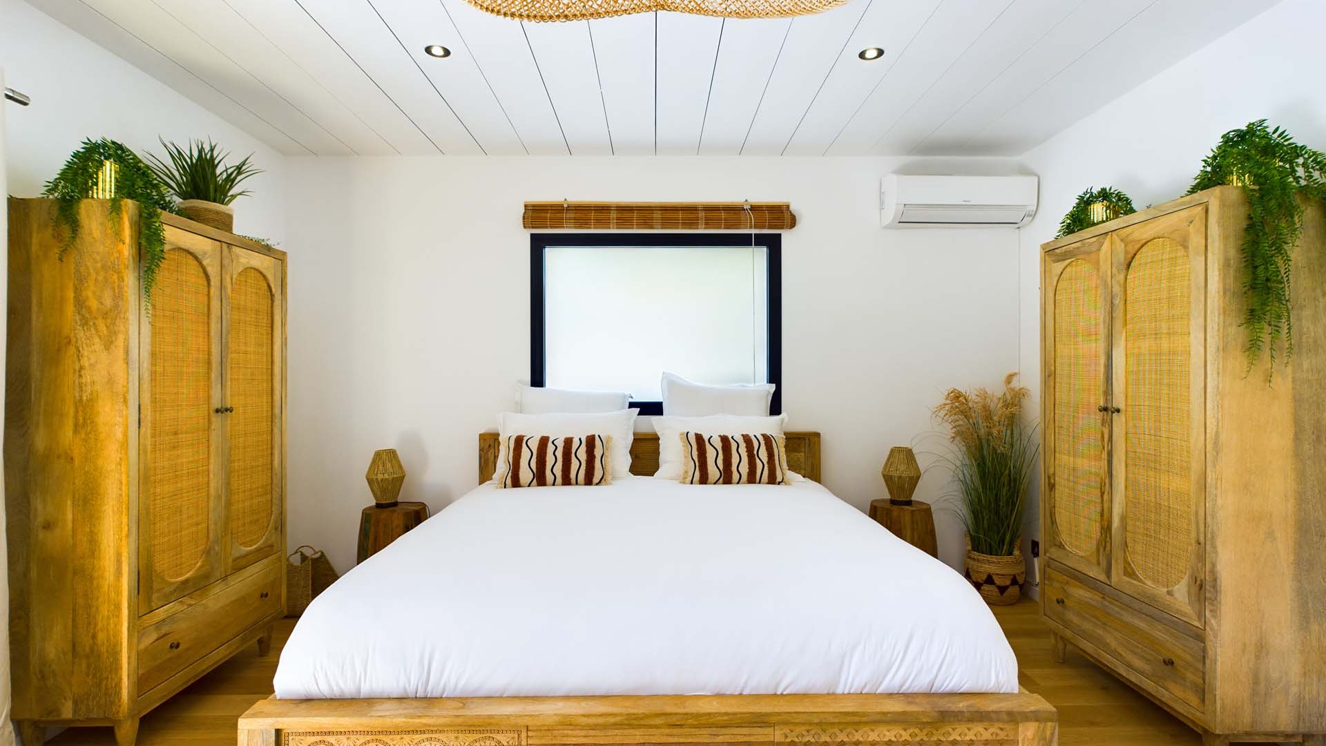 La chambre principale avec sa salle de bain attenante se trouve sur la gauche du salon. Sur le côté droit, deux autres chambres de confort équivalent font face à la piscine , l’une d’elles peut être aménagée en lits jumeaux, idéale pour des enfants ou des adolescents. Ces deux chambres partagent une salle de bain, également accessible depuis la terrasse.