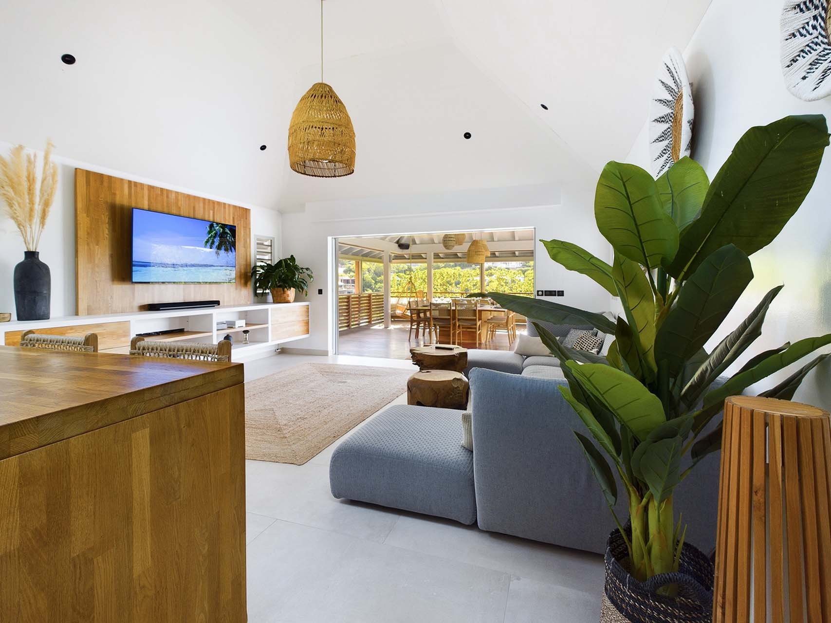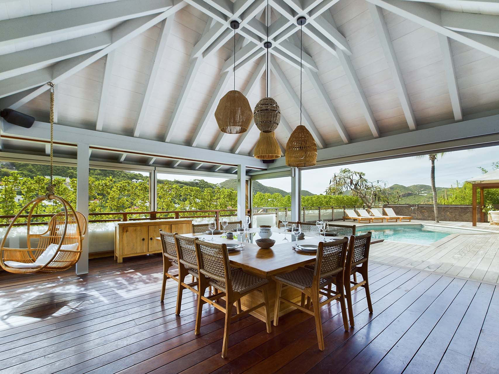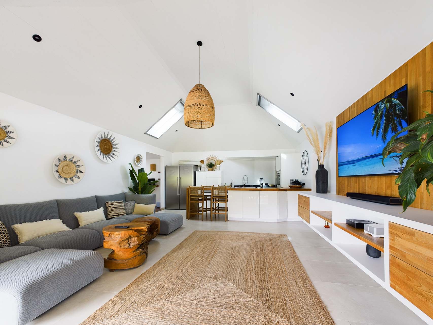 La cuisine américaine entièrement équipée et le salon climatisé s’ouvrent sur la terrasse et la piscine chauffée. À l’extérieur, un espace salon ainsi qu’une table à manger vous invitent à profiter de moments conviviaux en famille ou entre amis.