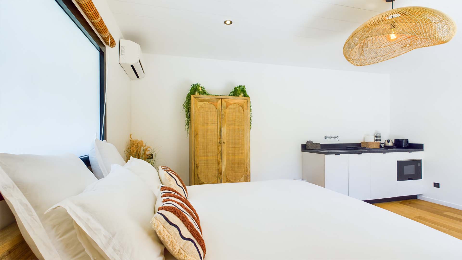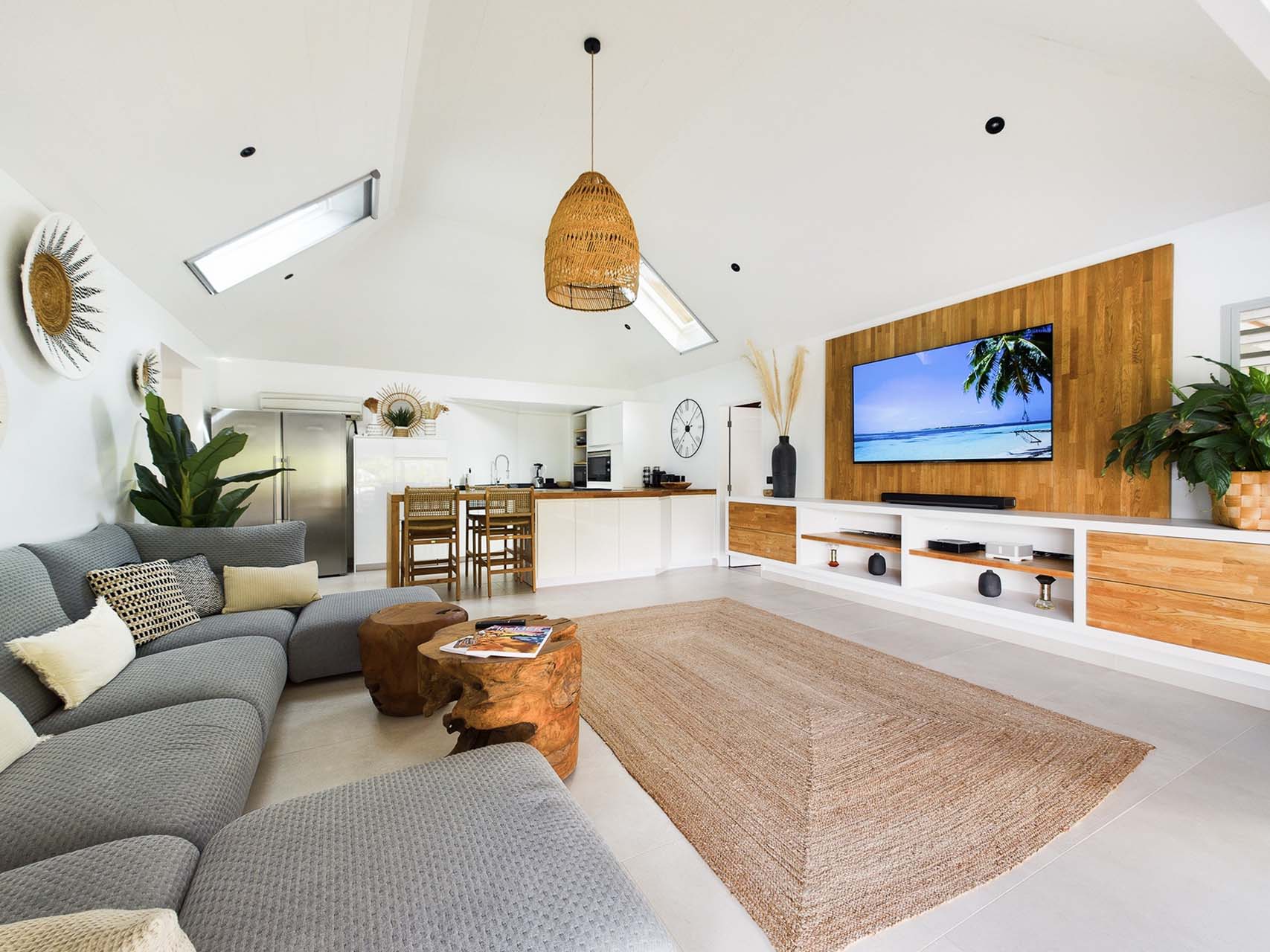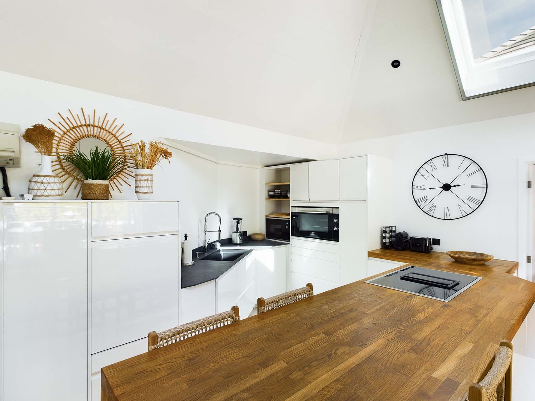 La cuisine américaine entièrement équipée et le salon climatisé s’ouvrent sur la terrasse et la piscine chauffée. À l’extérieur, un espace salon ainsi qu’une table à manger vous invitent à profiter de moments conviviaux en famille ou entre amis.
