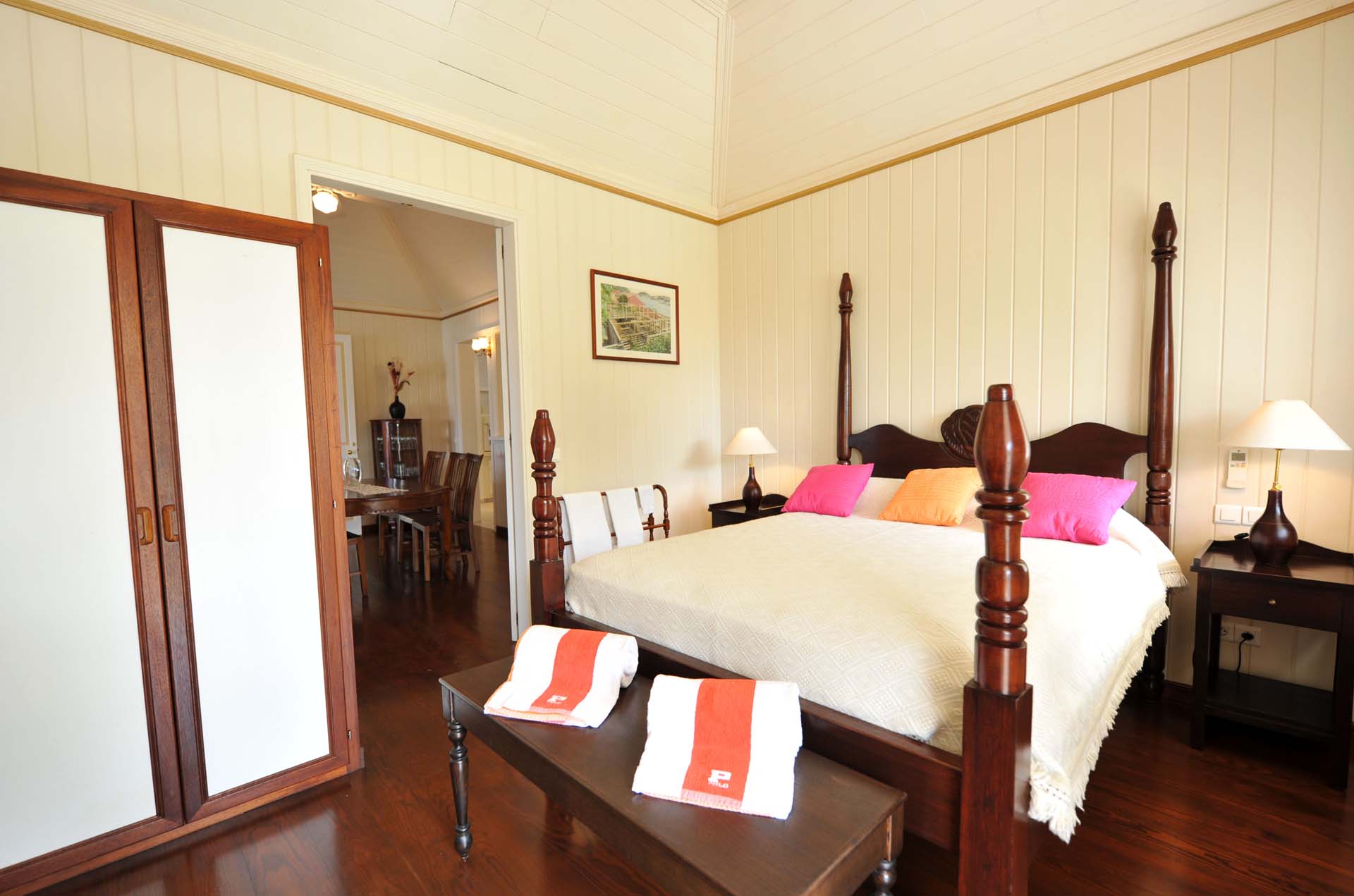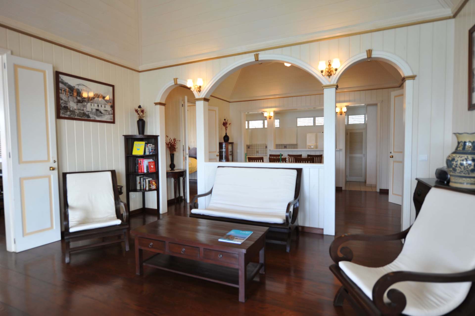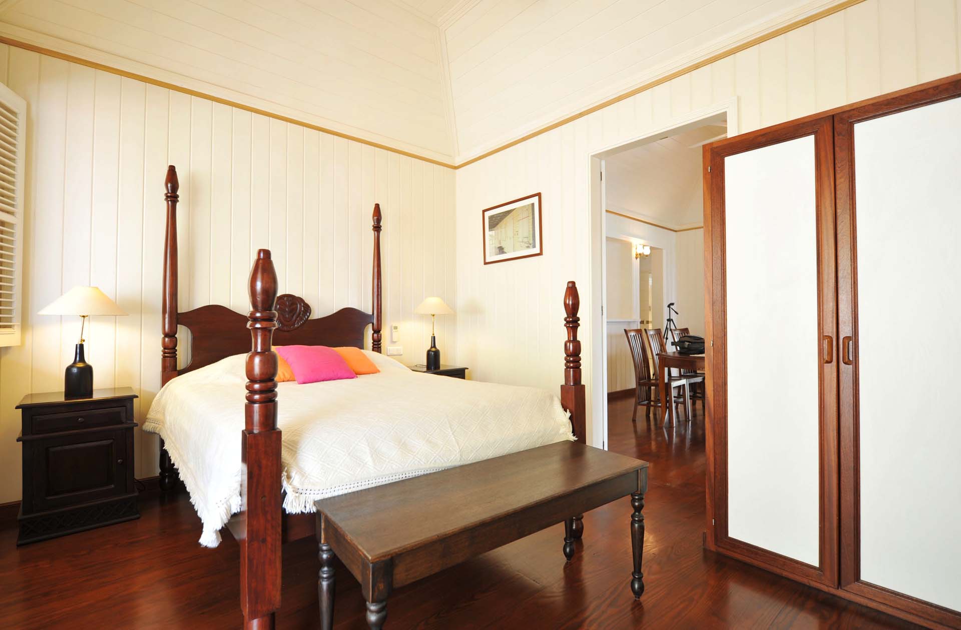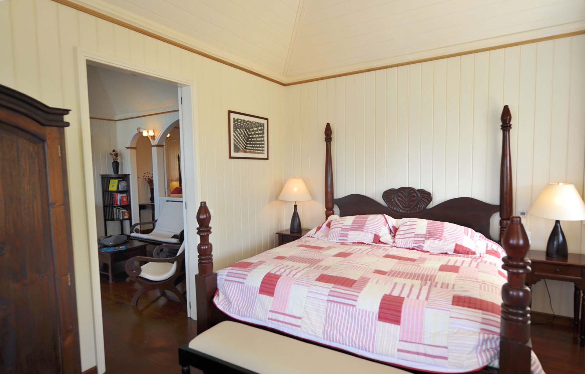 La villa a été rénovée récemment en gardant son style colonial avec des parquets en bois exotiques, et des plafonds en caissons, et des lits à colonnes.