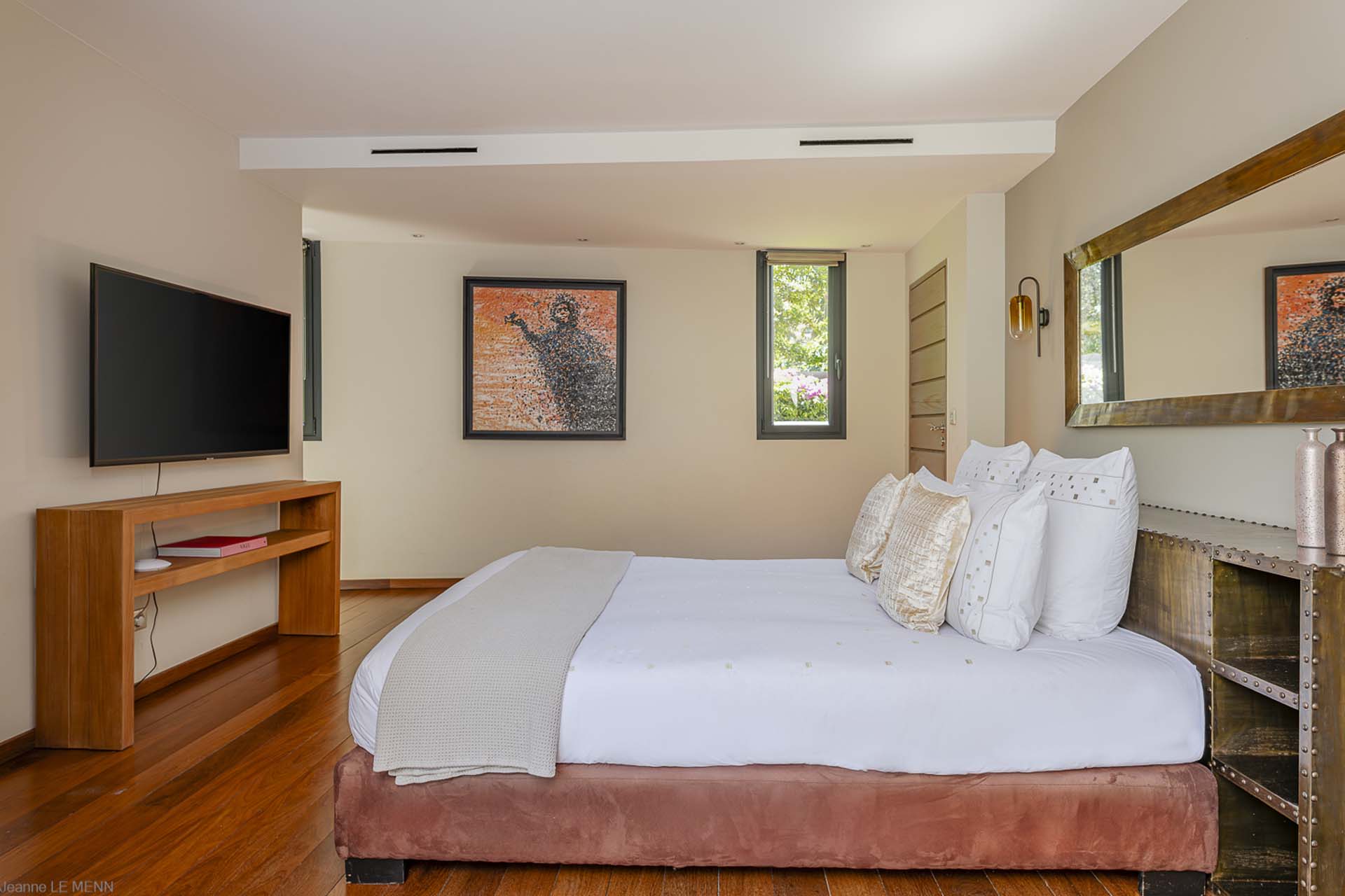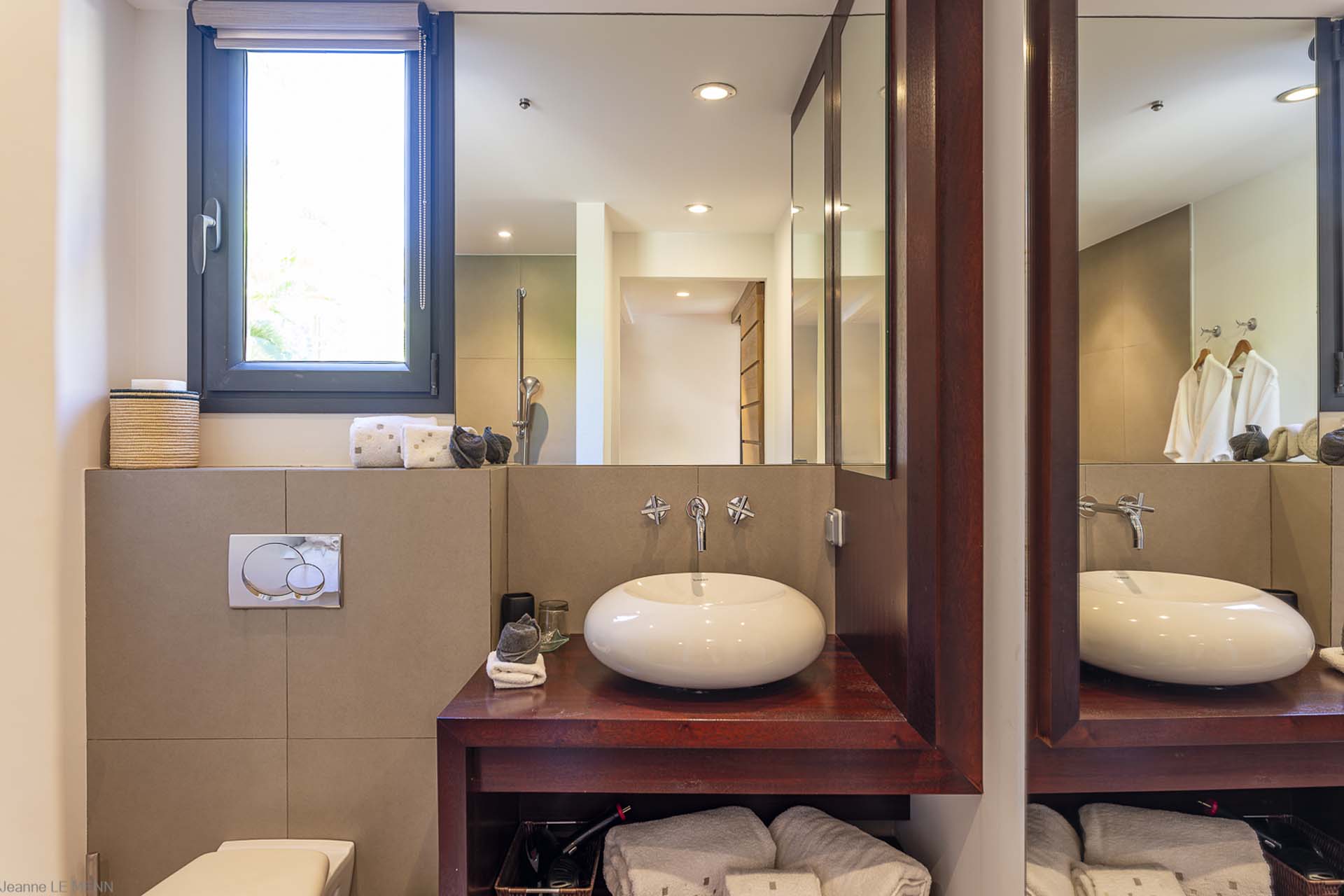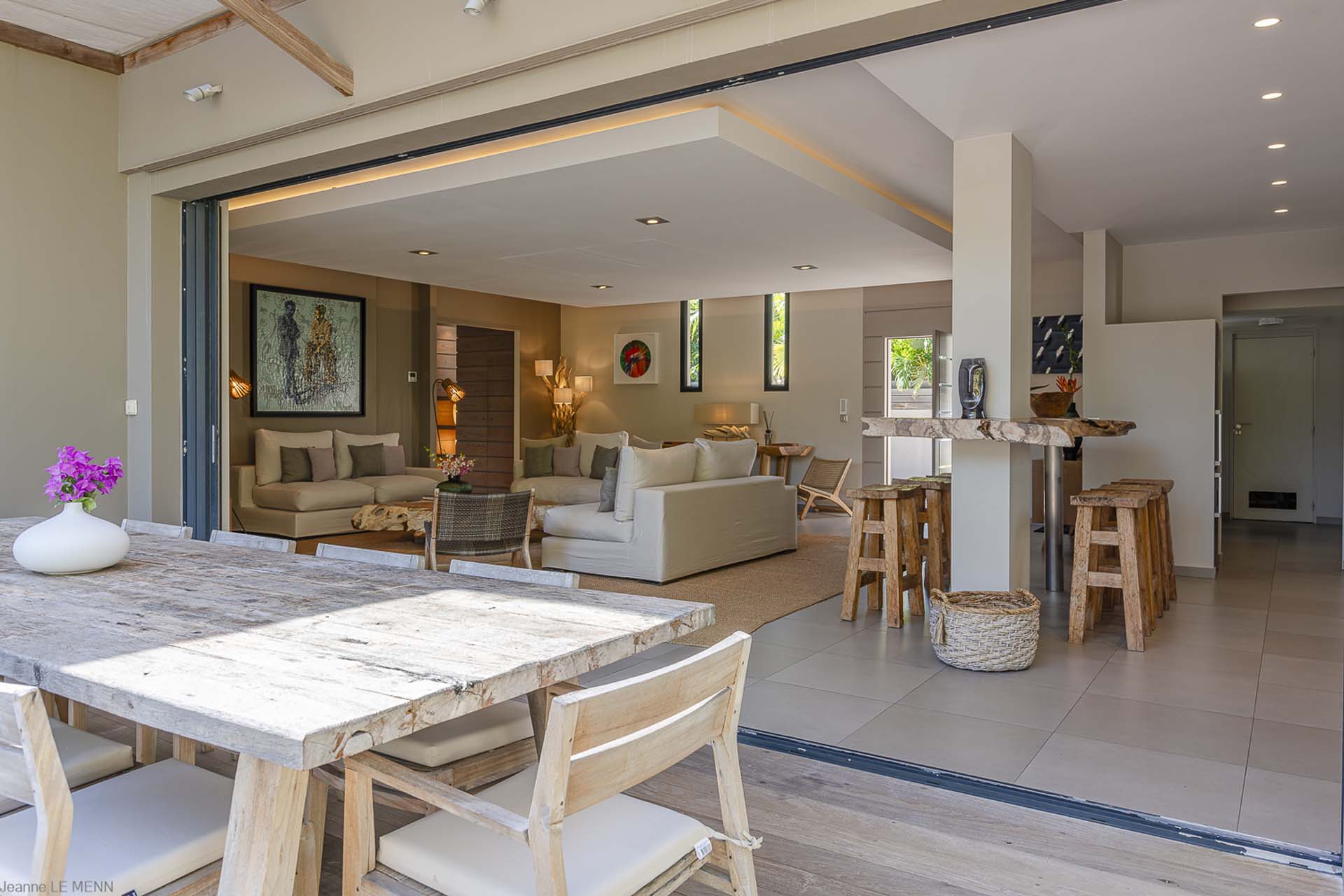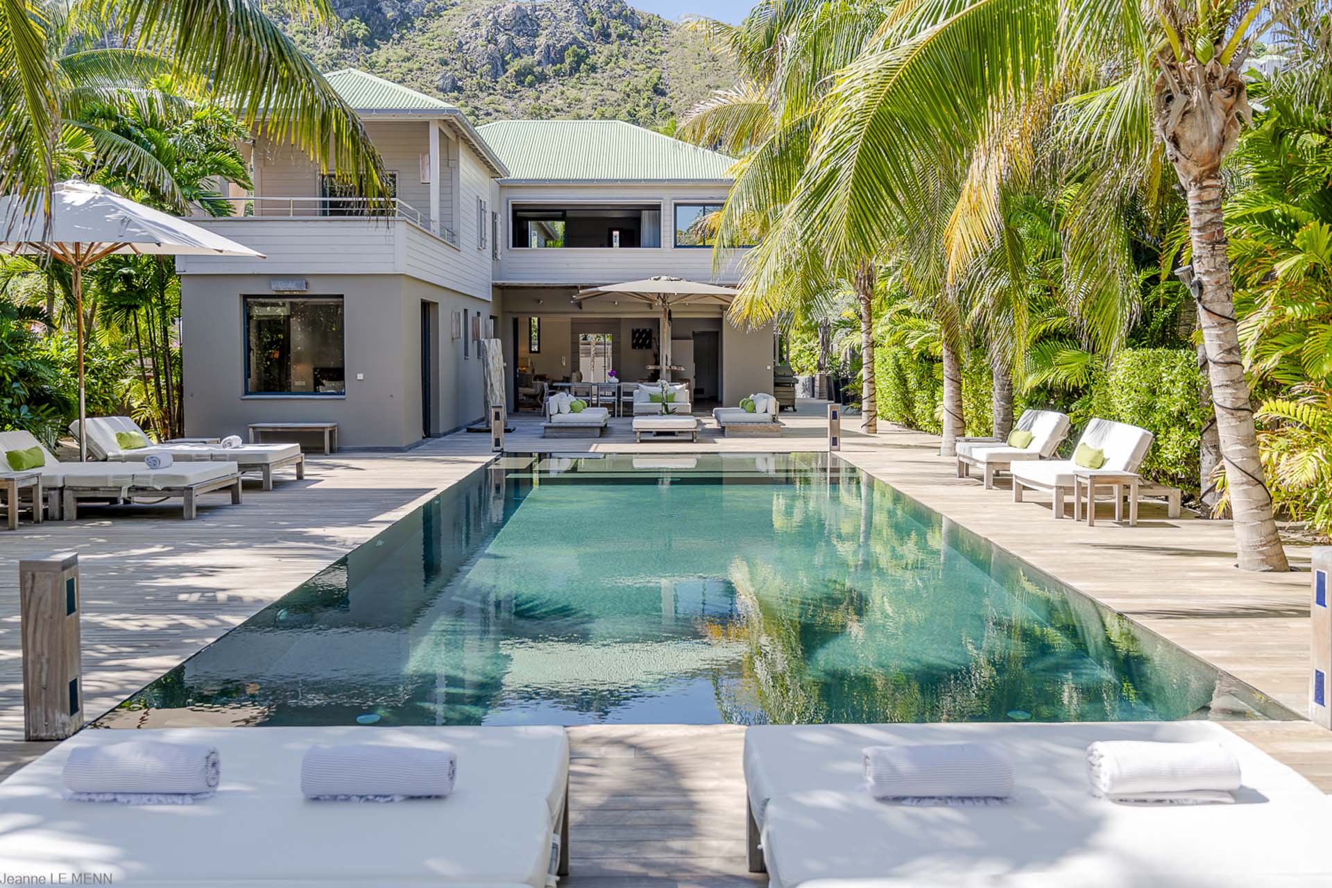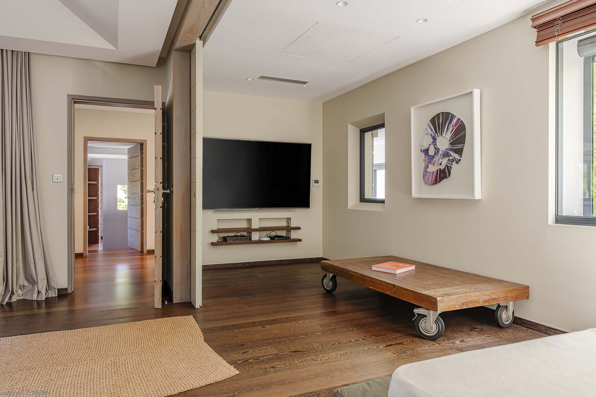 Son heureux propriétaire s’est donc fait plaisir et a concentré dans cette villa moderne toute neuve, tous ses désirs. De grands decks en bois exotiques finissent au pied d’un sentier en sable conduisant au bord de la mer. Une grande piscine chauffée entourée de palmiers, est orientée dans l’axe de la vue. Les grandes baies vitrées du salon climatisé, s’ouvrent sur un immense deck aménagé avec des transats… La chambre principale comprend un hammam, une salle de bain avec une baignoire surplombant le deck et la piscine, et un salon privé avec un écran plat. Enfin, toutes les chambres ont soit une vue sur la mer, soit une vue sur la piscine et le deck.